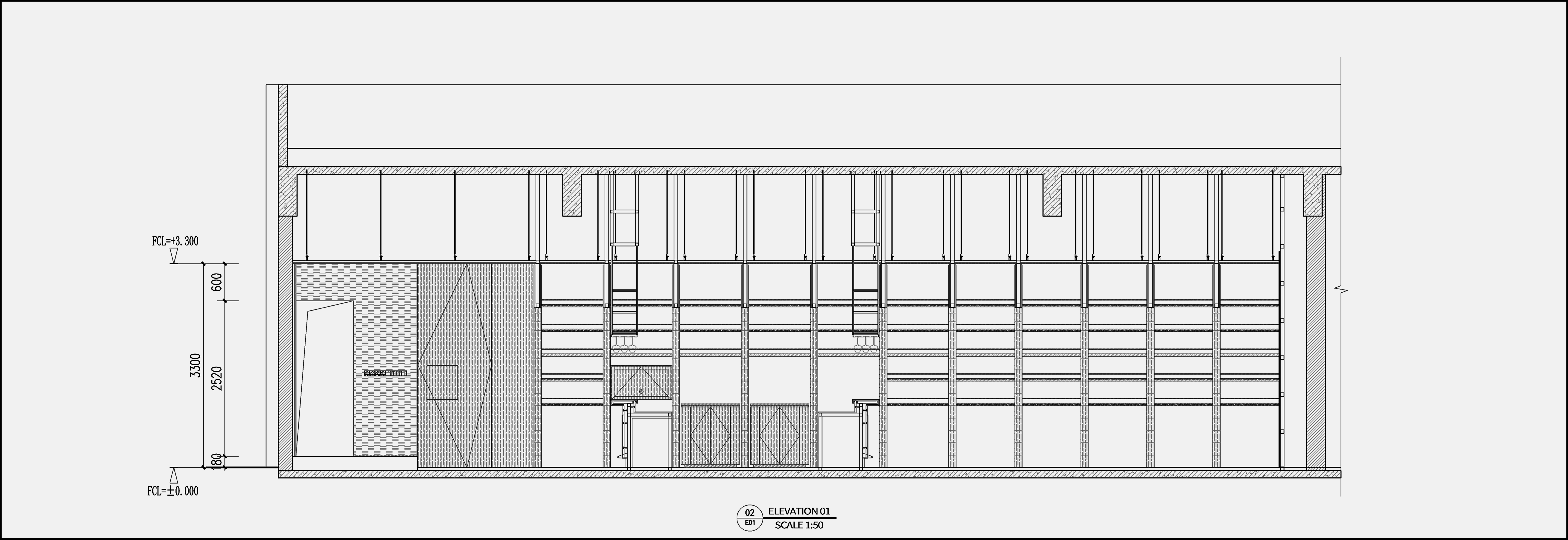 设计充分利用室内外之间的灰空间,采用可自由开合的折叠立面形式代替原有的固定玻璃,日常运营状态时将折叠立面全部打开,阳光、空气、人自由地流动在内外之间,人与空间、自然三者浑然一体。剥离掉原有空间中复杂冗余的布局,空间自身的特性展开叙事,形成视觉无限延伸的空间效果。室内外之间的透明玻璃面向社区的中央绿丘,光的明暗界限自然地形成视觉上的对比,空间中阳光漫散,氛围轻松且精致,置身其中如同在一个巨大的取景框里。在设计中,我们试图挖掘空间自身的潜力,用比例、材质、光影塑造使用者对于一个空间的记忆。 此时空间不仅仅是分割的墙体、天花、地面,而是一个有机的整体,是场景的发生器。