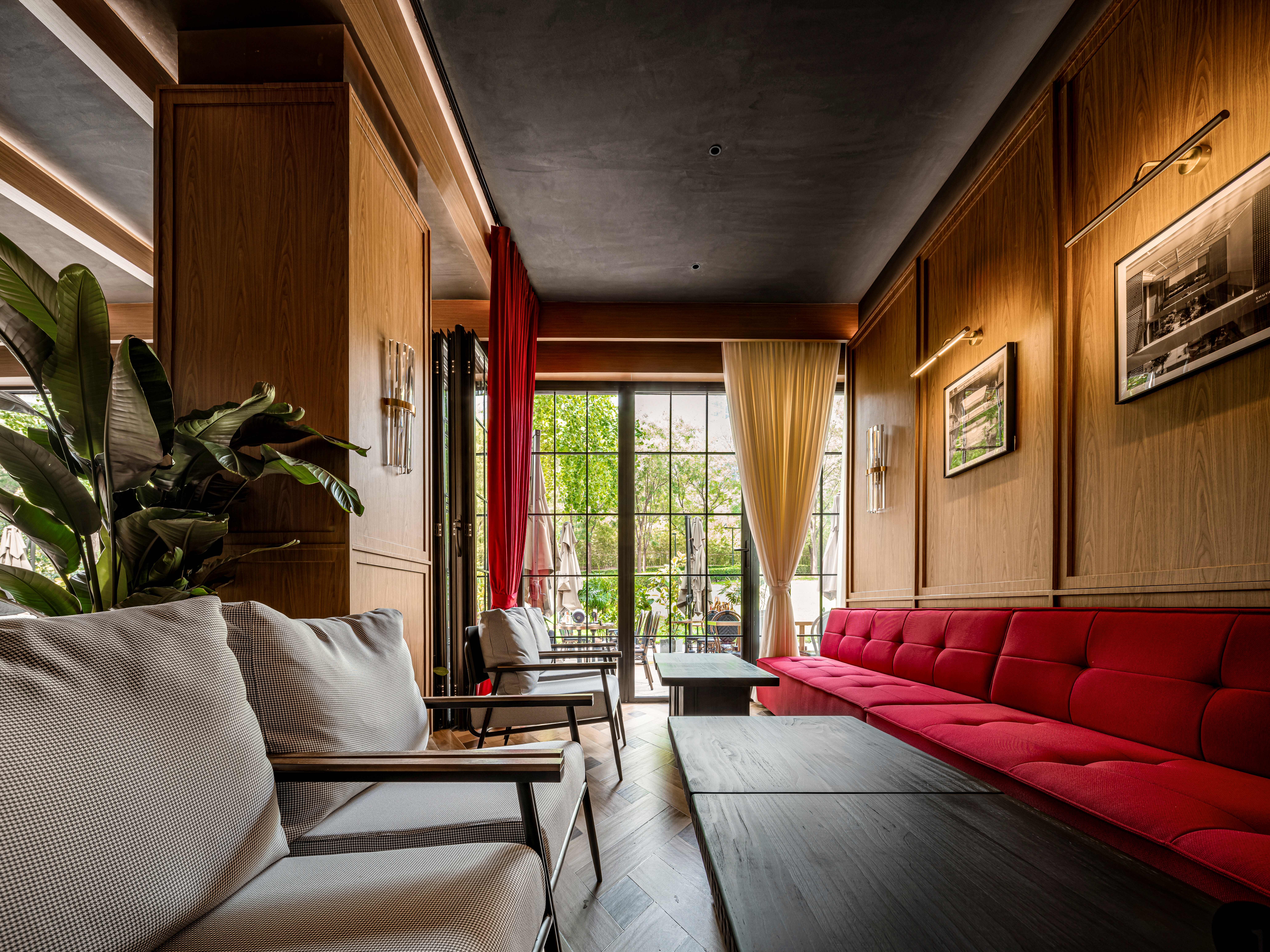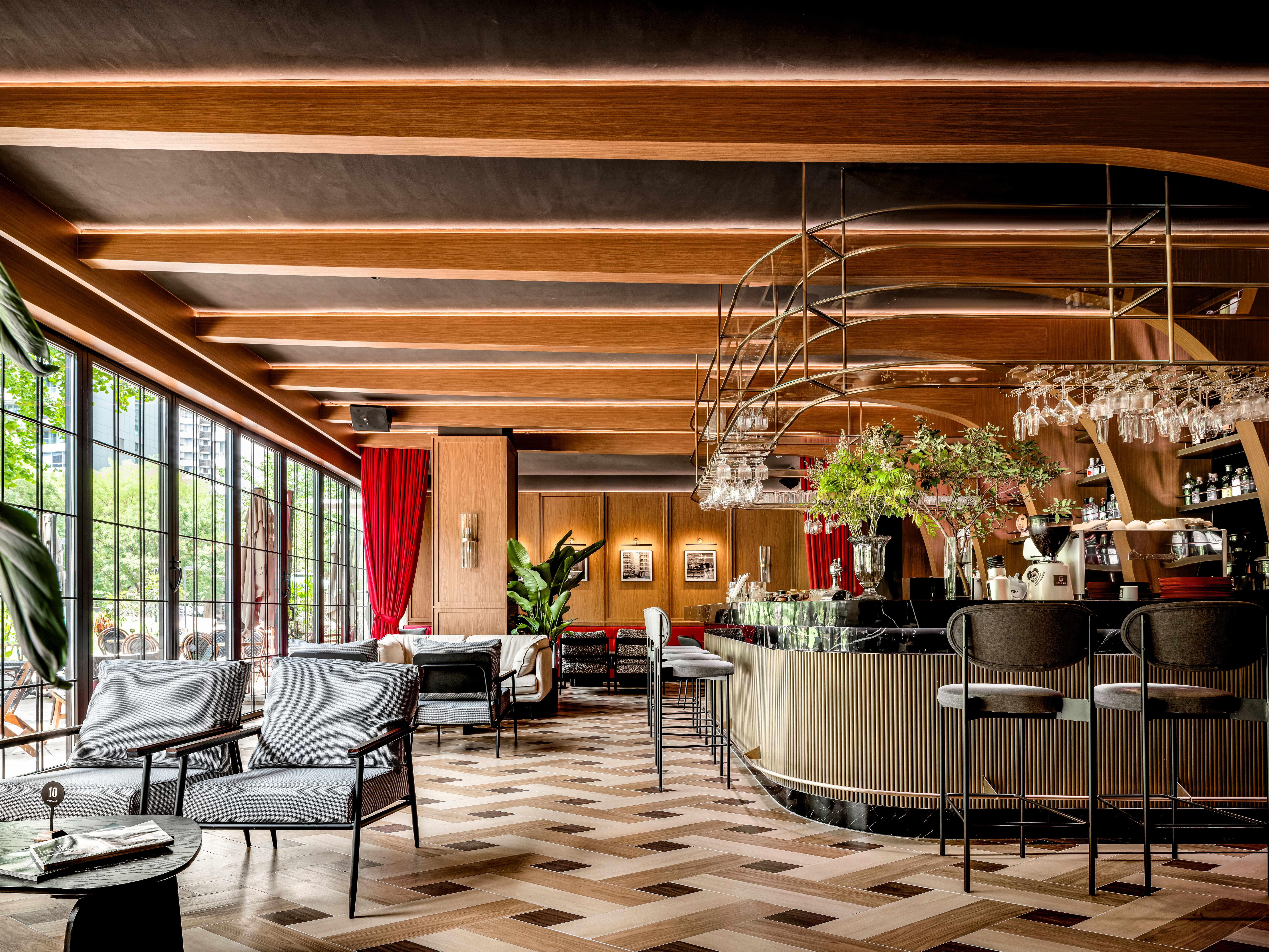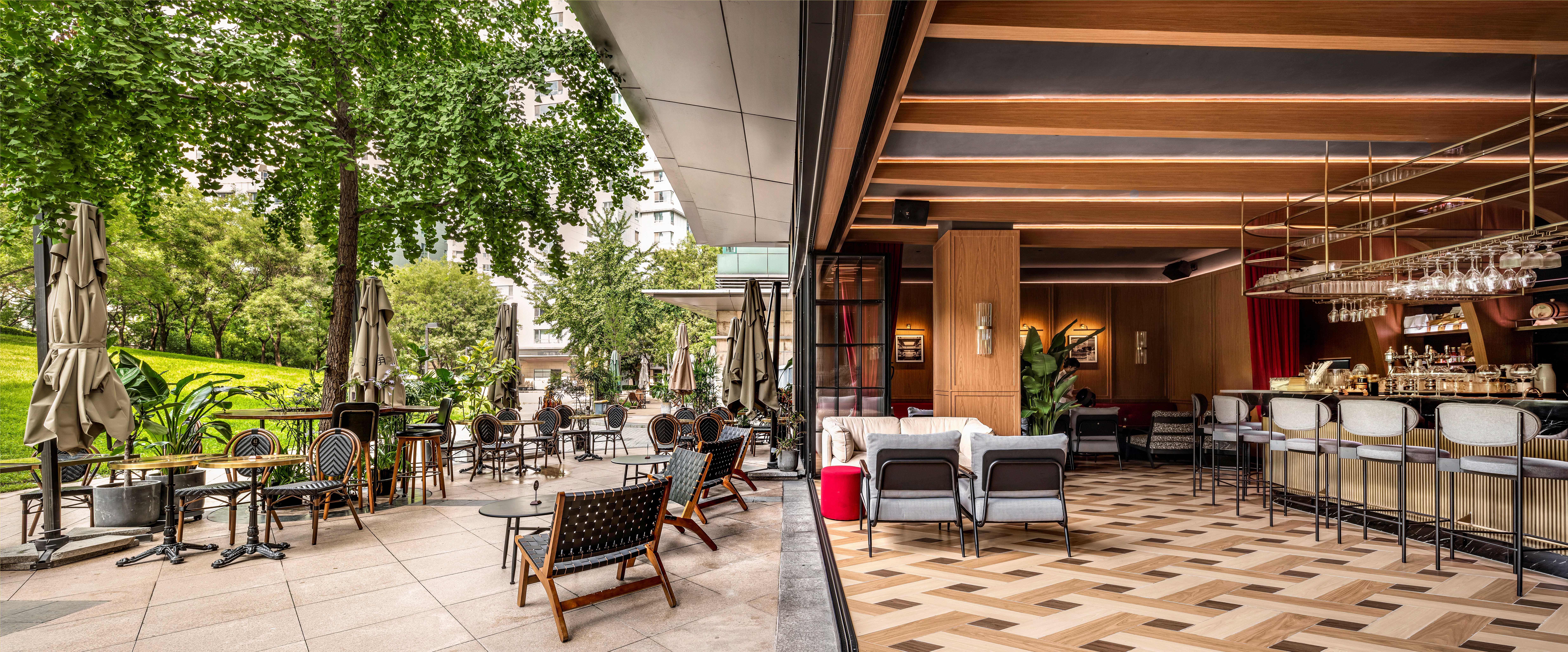 用户体验:我们打造的是一个自由的社群,打破壁垒,让交流自然地发生。在这里,人们可以坐在树下的环形高桌旁看书、办公、会话,可以享受与宠物互动的欢乐时光,可以在红色丝绒幕帘形成的开放空间洽谈商务,也可以在米色松软的沙发上发呆,可以小酌来取悦自己,也可以与好友开怀畅饮。在这里,每个人都可以享受属于自己的惬意时刻。