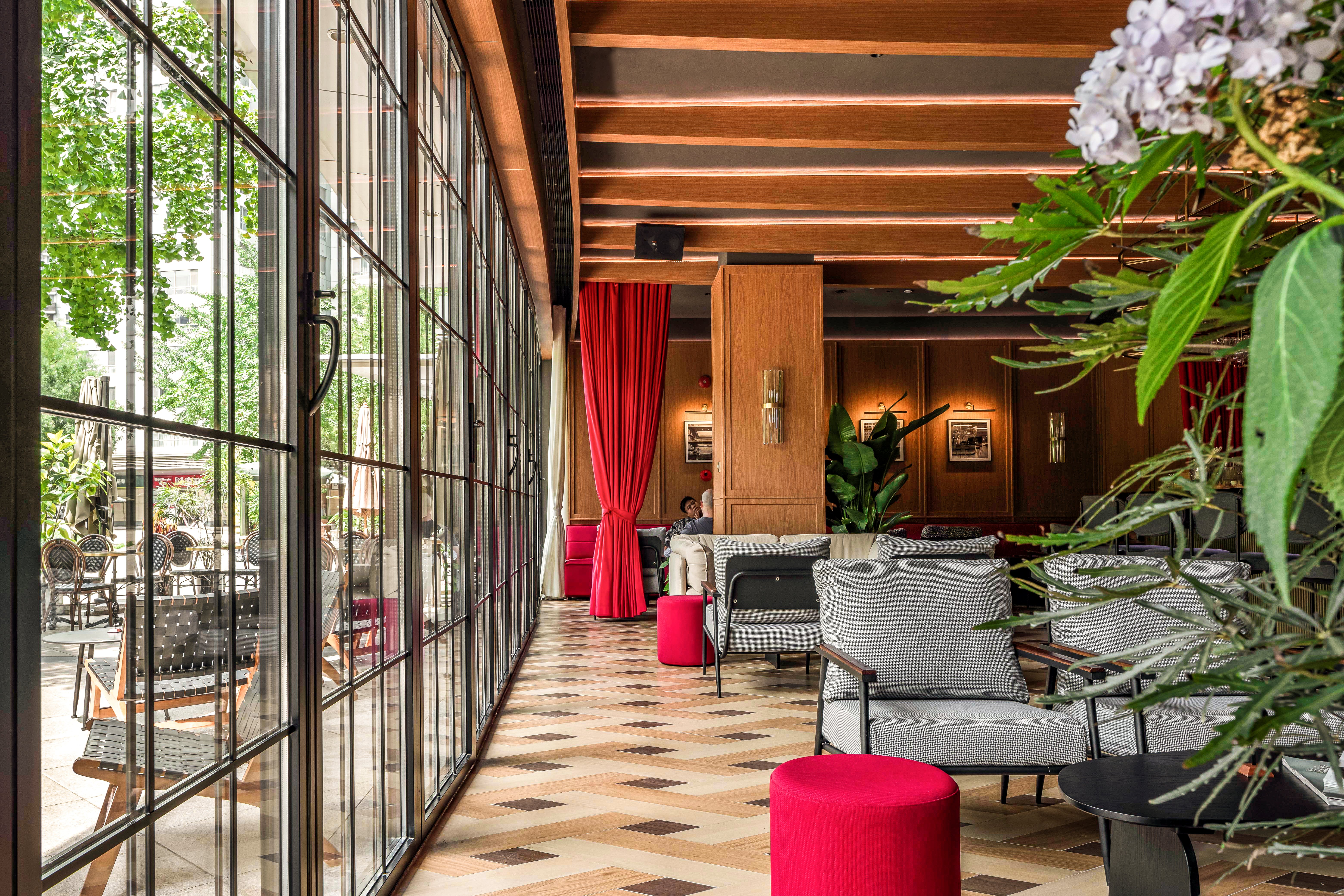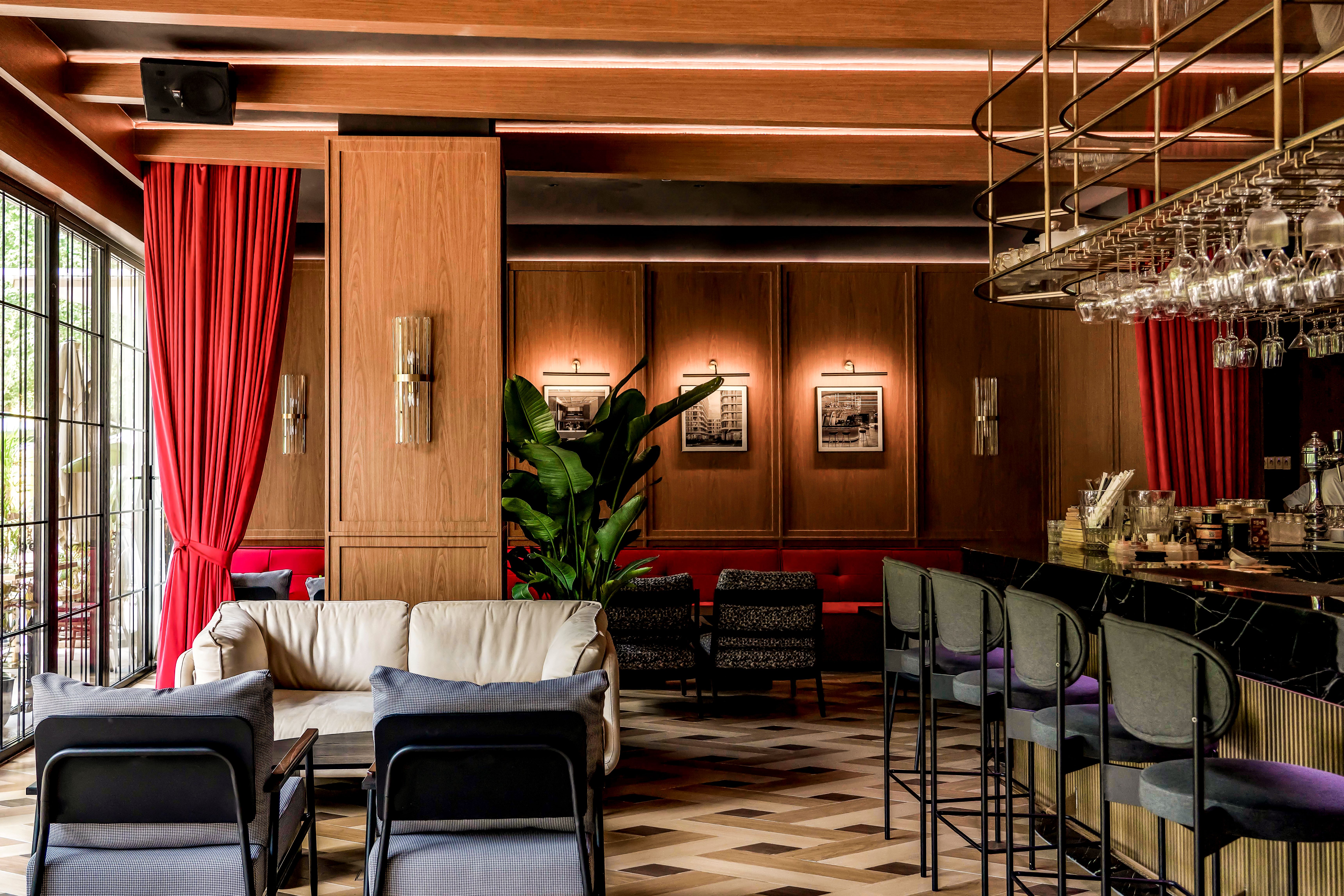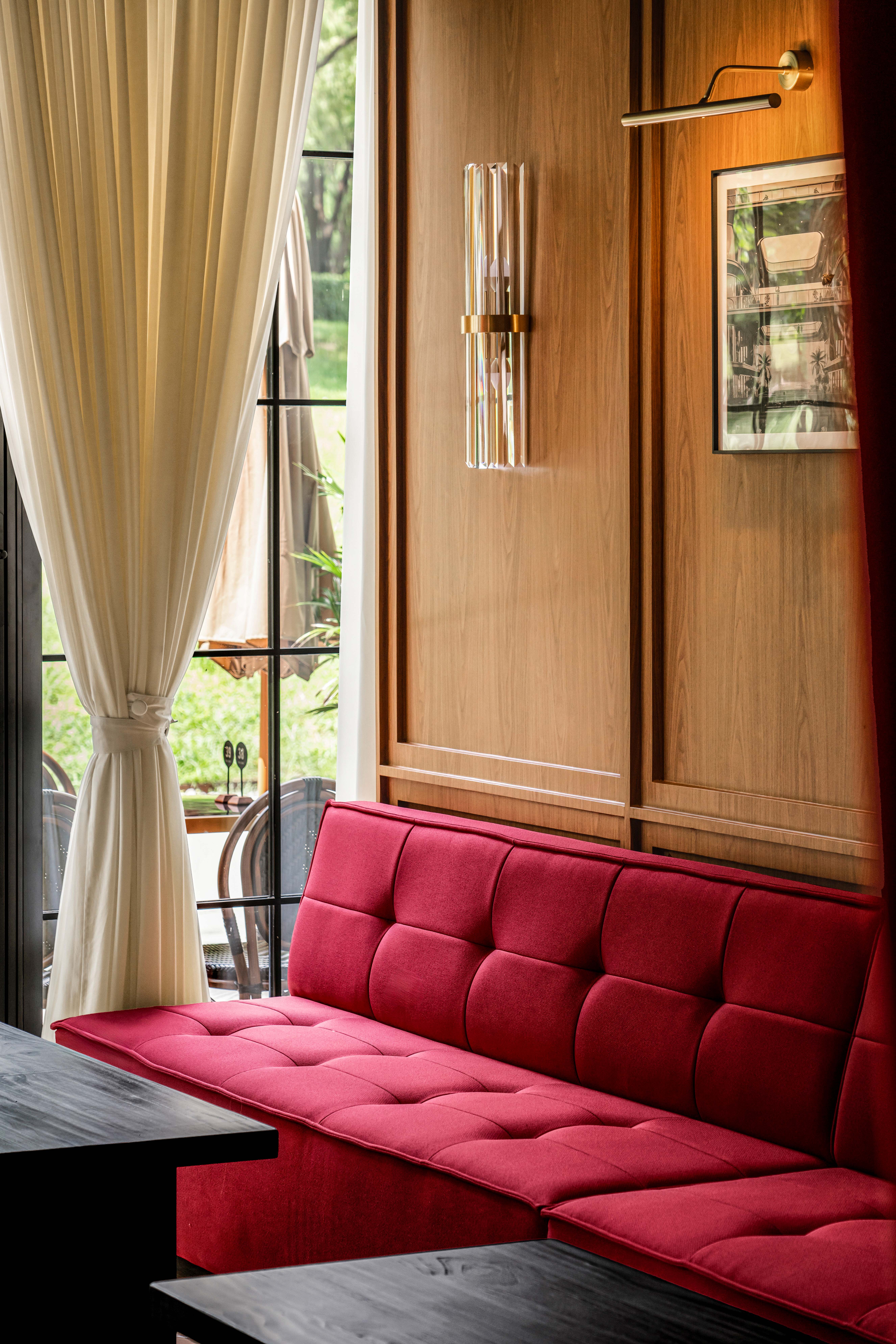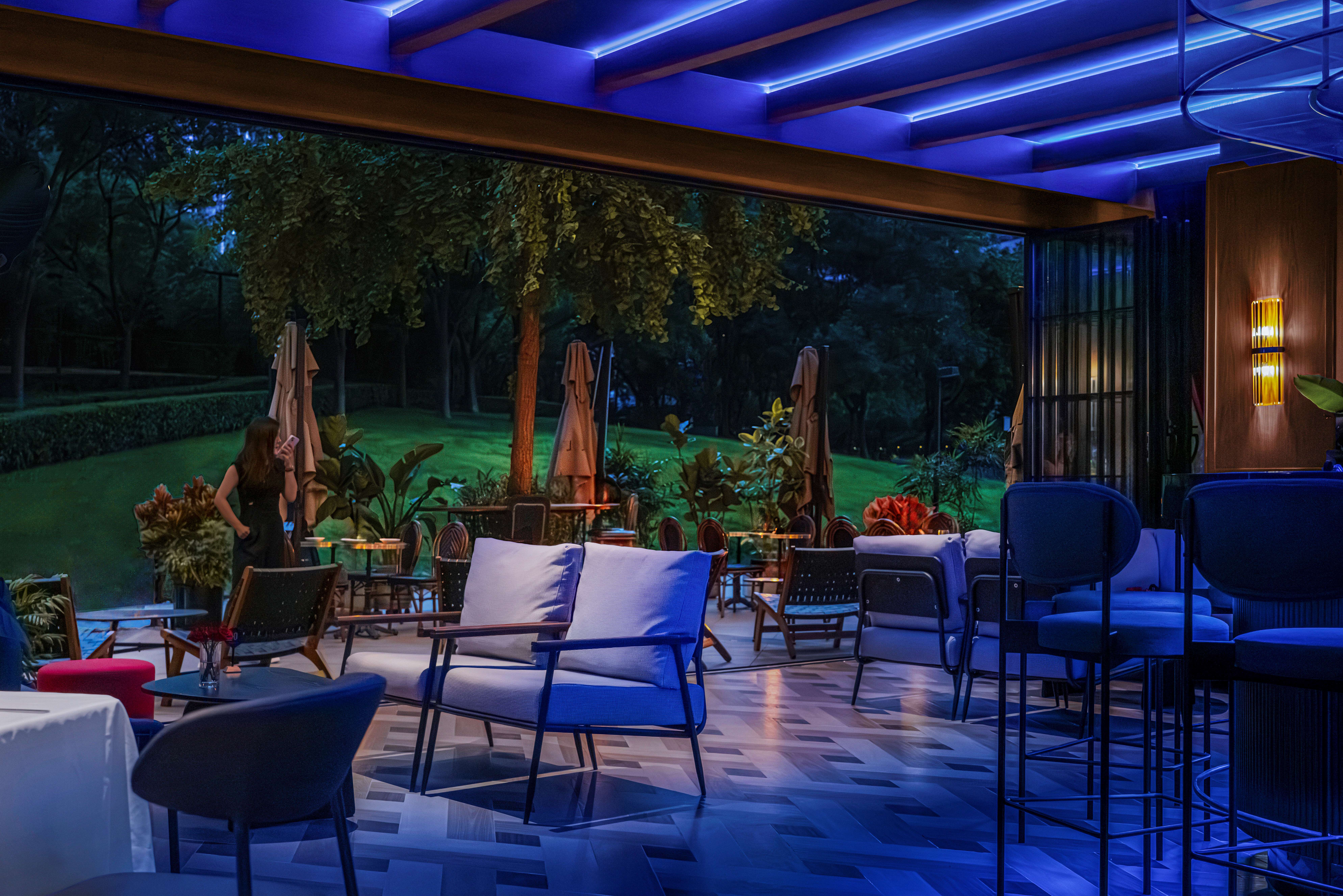 用户体验:我们打造的是一个自由的社群,打破壁垒,让交流自然地发生。在这里,人们可以坐在树下的环形高桌旁看书、办公、会话,可以享受与宠物互动的欢乐时光,可以在红色丝绒幕帘形成的开放空间洽谈商务,也可以在米色松软的沙发上发呆,可以小酌来取悦自己,也可以与好友开怀畅饮。在这里,每个人都可以享受属于自己的惬意时刻。