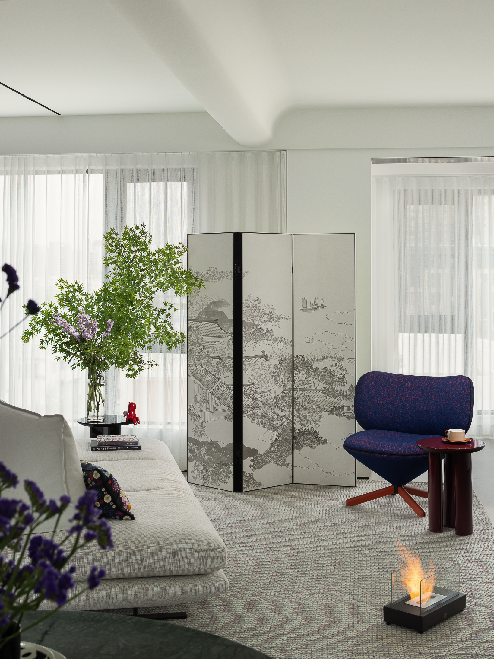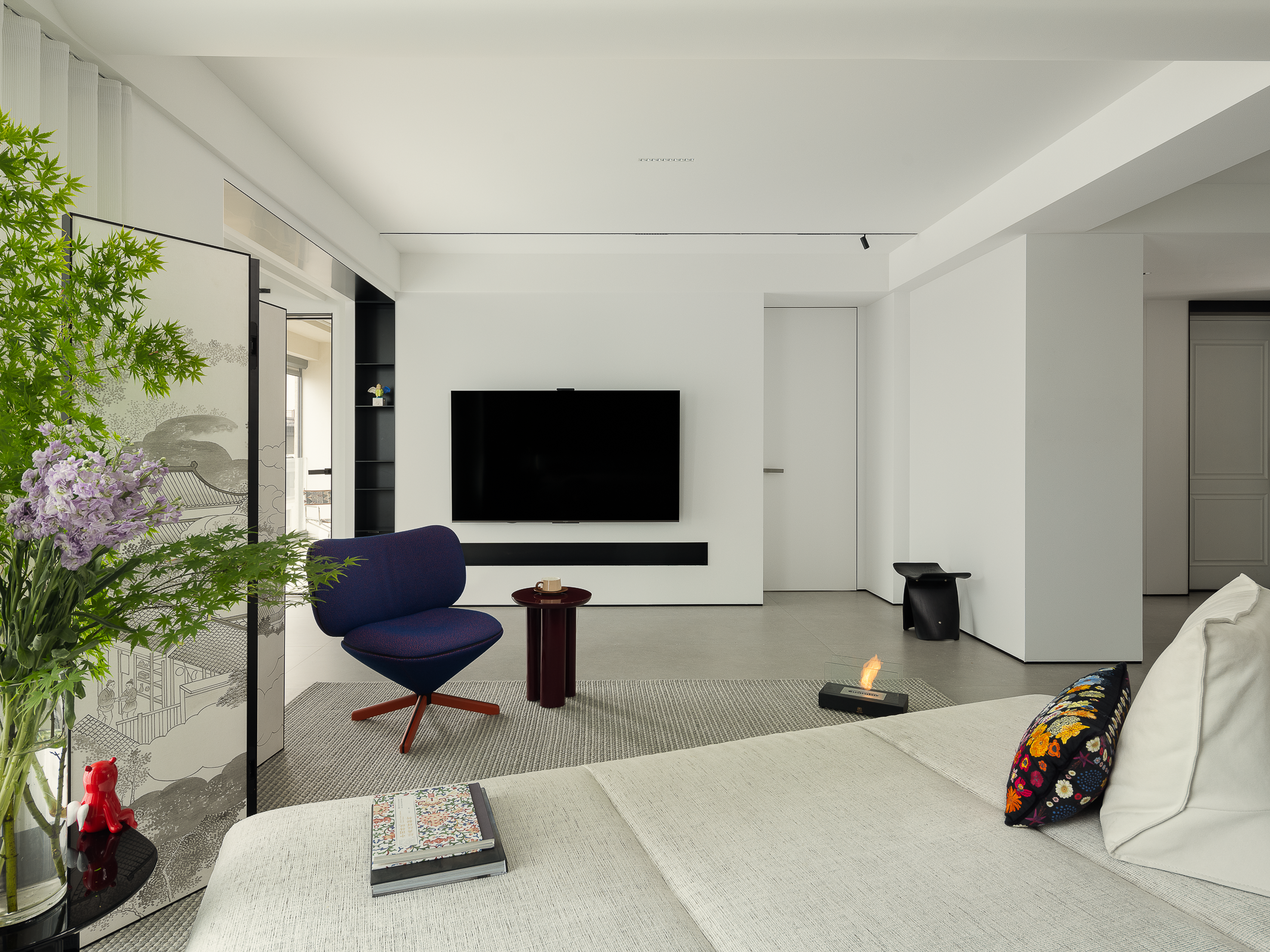 全屋除了必要的收纳之外,做了足够的留白空间,尽量以软装的搭配为点缀