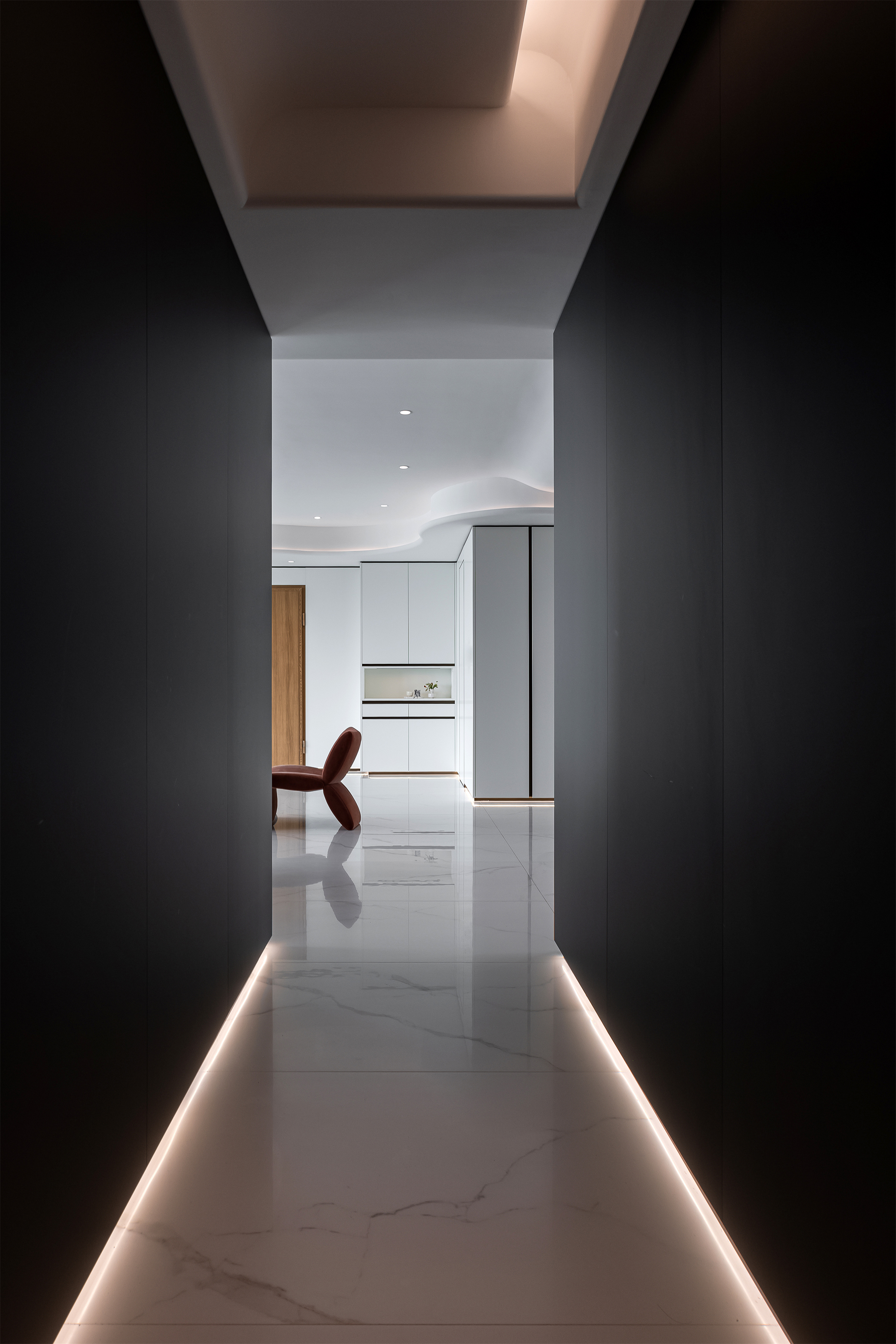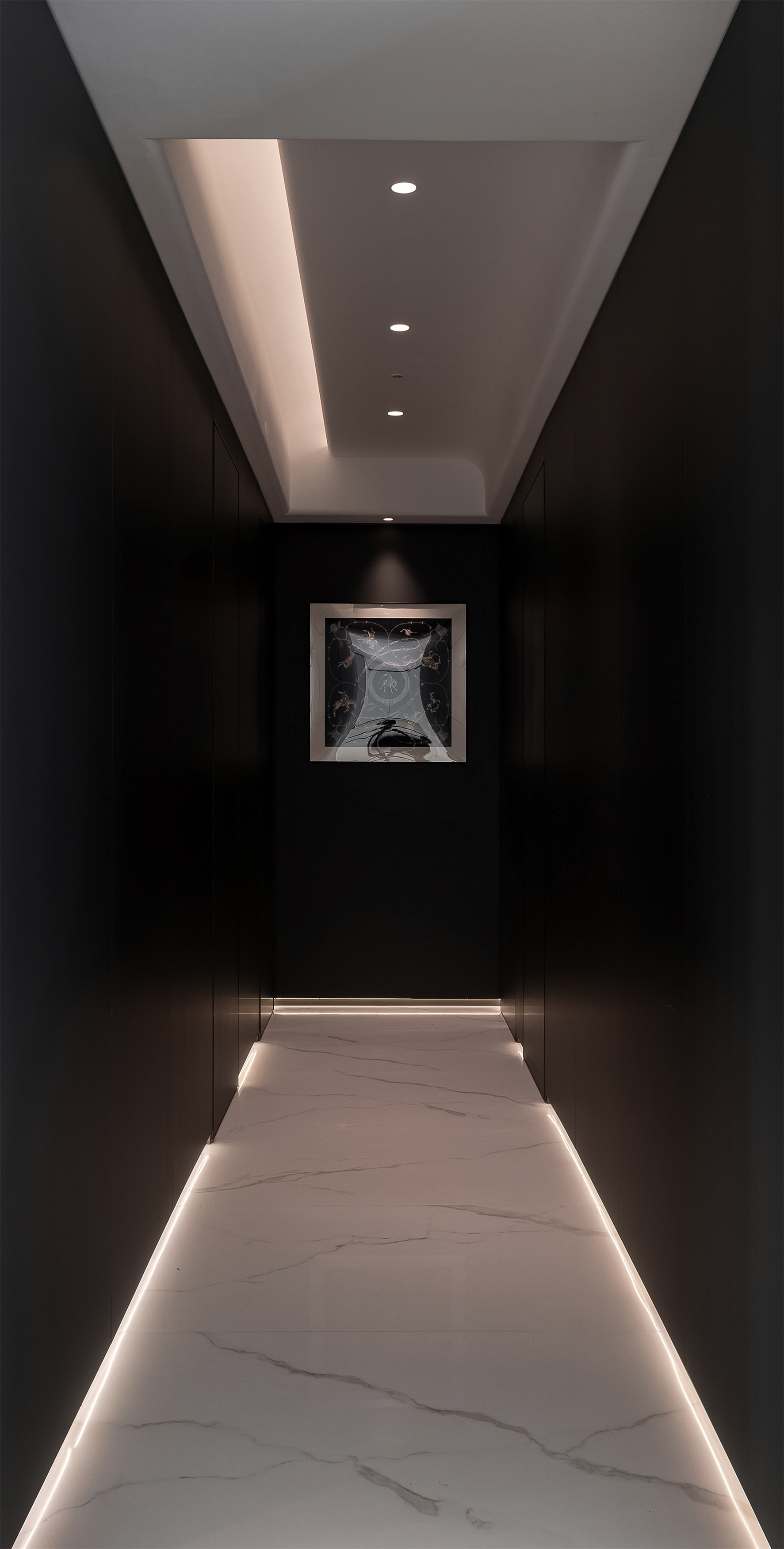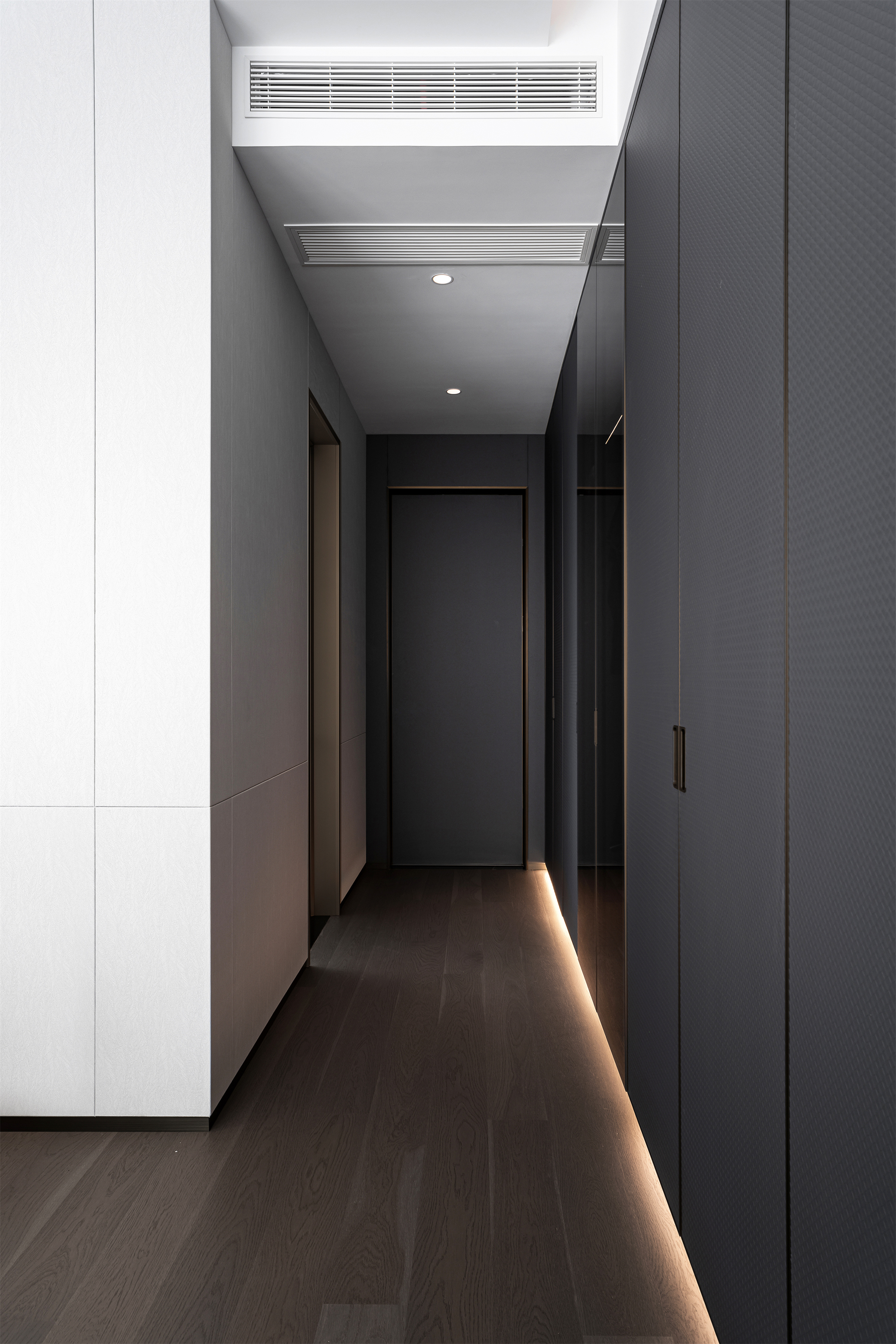 初到项目地,我们就被一览无余的内湾都市海景所震撼。大面积的落地窗与宽敞的开间尺度无不彰显其世界级滨水住宅的气质。于是,在室内空间的营造中,我们摒弃了复杂炫技的设计手法,力求用克制与内敛的笔触,让空间更加纯粹。在设计之初,我们便与户主在这点上有着高度的共识与默契。 -