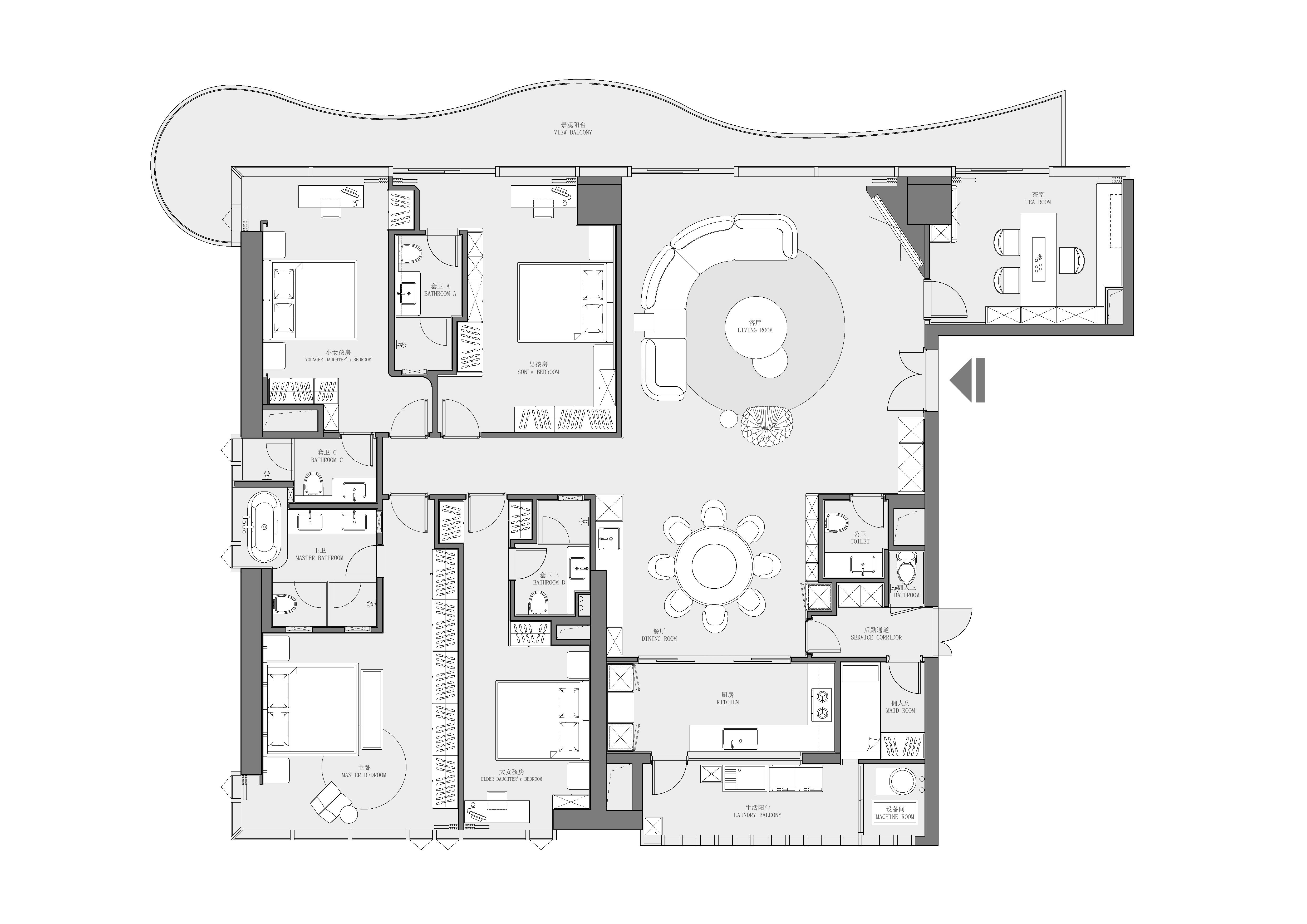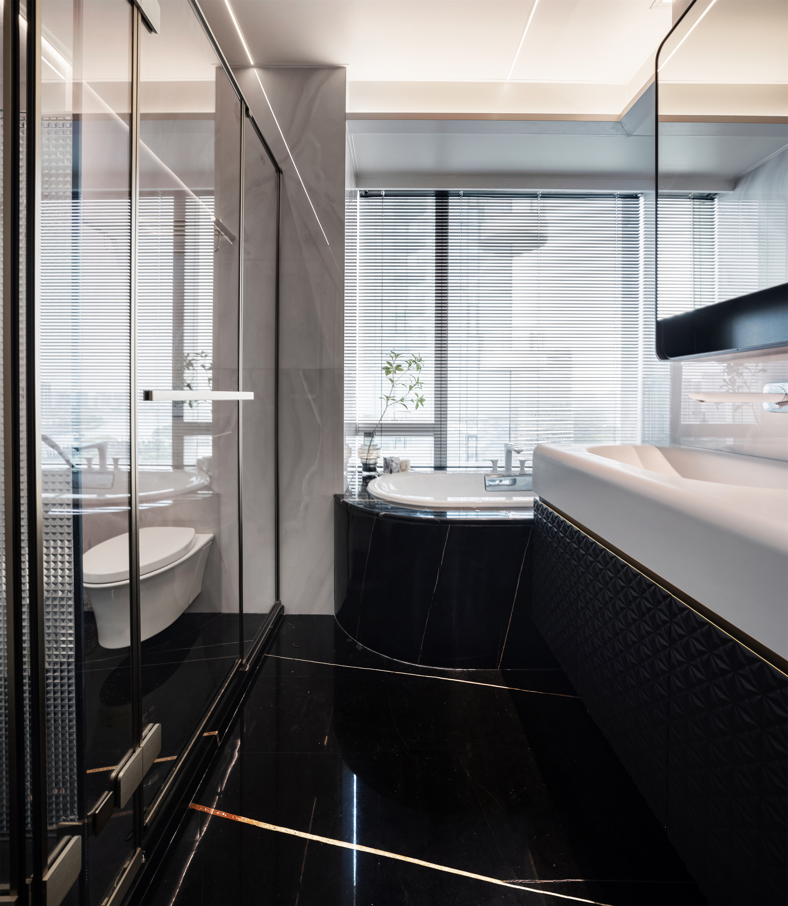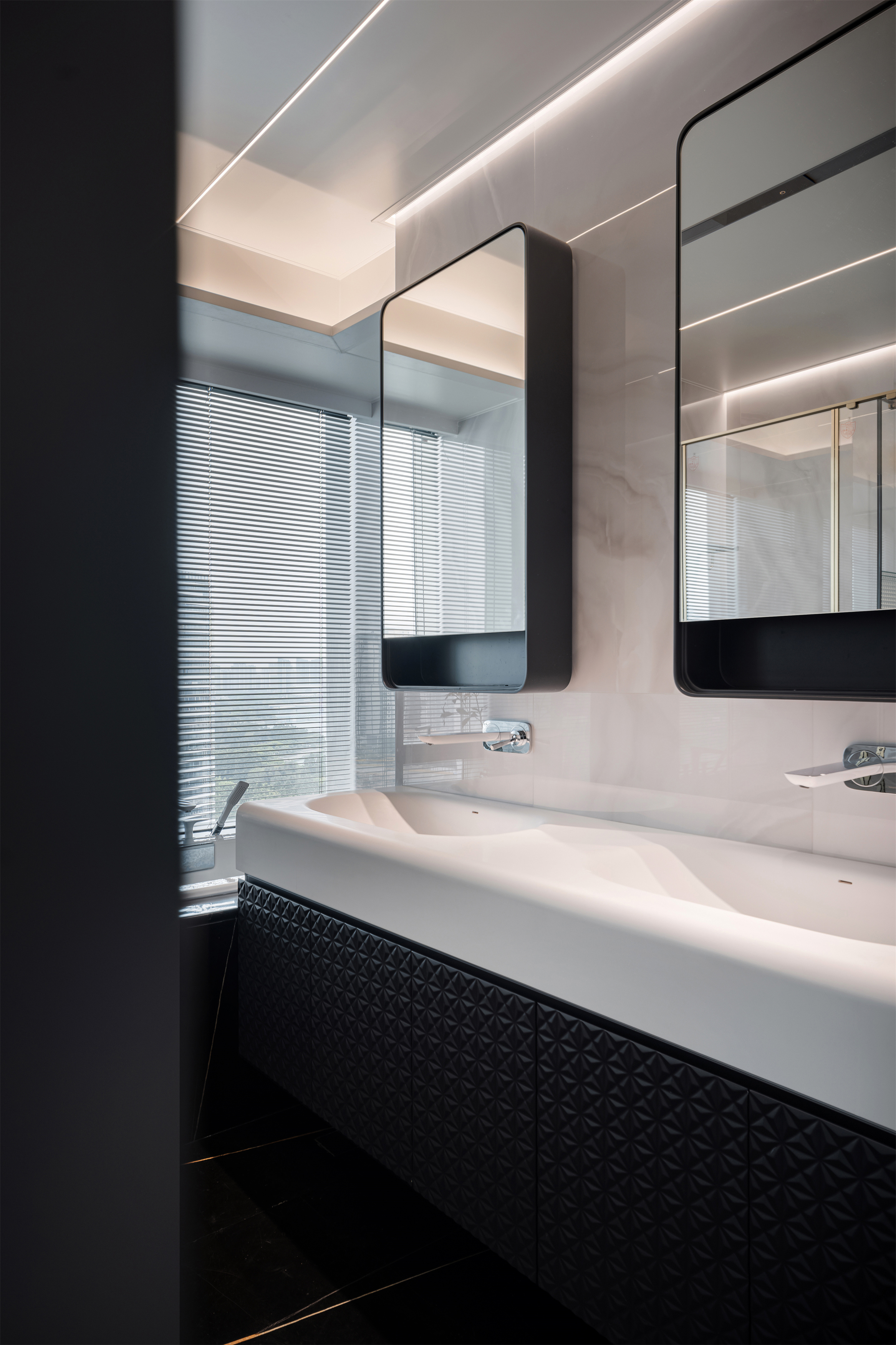 初到项目地,我们就被一览无余的内湾都市海景所震撼。大面积的落地窗与宽敞的开间尺度无不彰显其世界级滨水住宅的气质。于是,在室内空间的营造中,我们摒弃了复杂炫技的设计手法,力求用克制与内敛的笔触,让空间更加纯粹。在设计之初,我们便与户主在这点上有着高度的共识与默契。 -