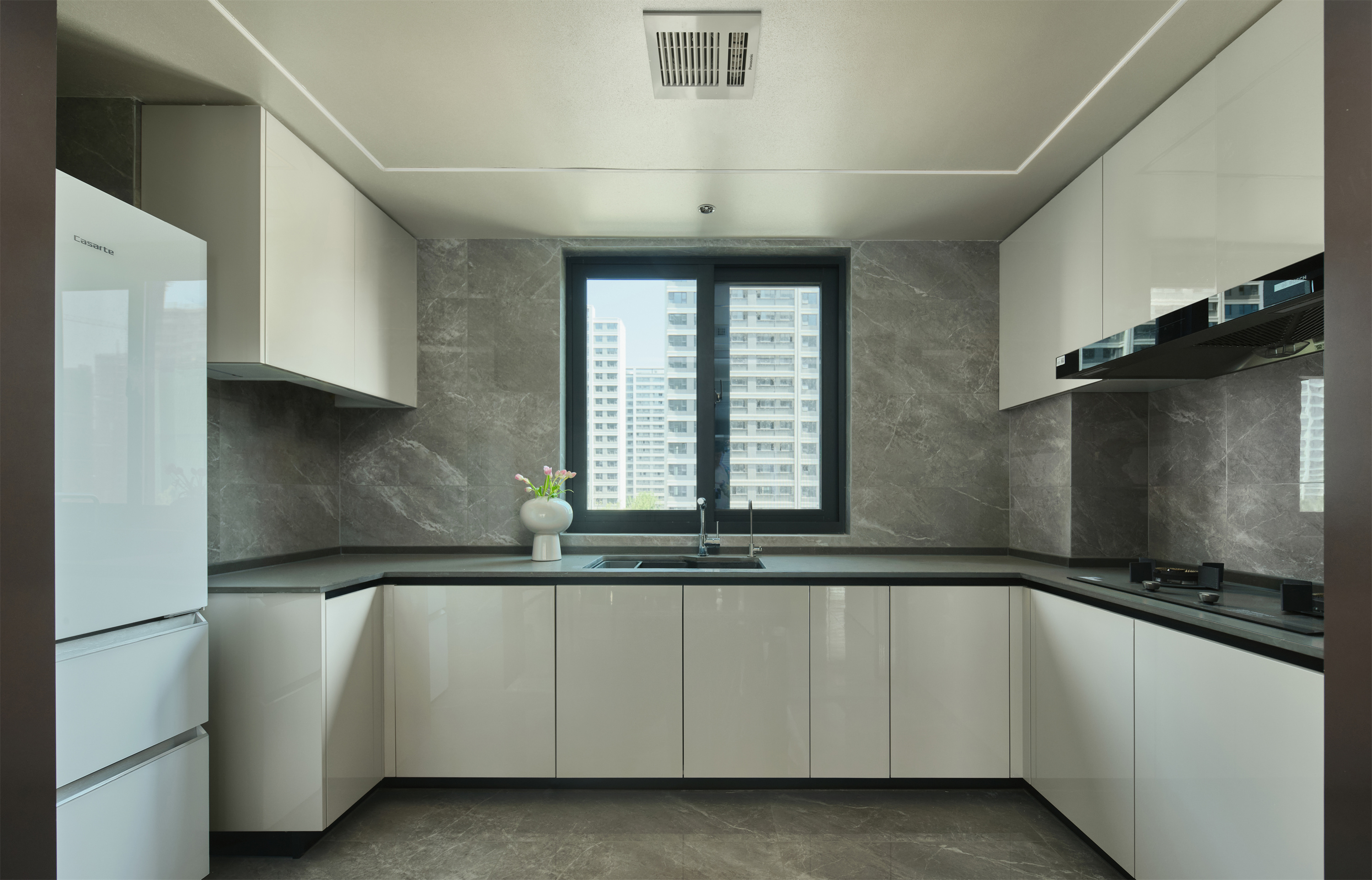 保留了原厨房的橱柜设计和配置,根据空间留有的尺寸采买最大容量的冰箱,最大化的满足使用;