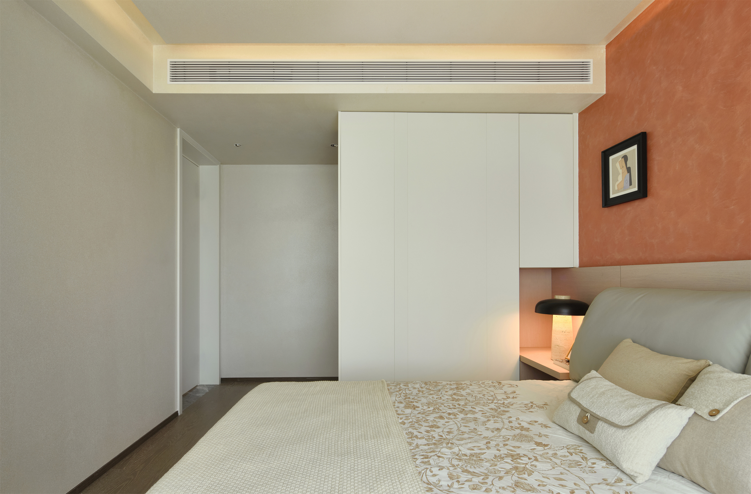 与客厅打通的南边卧室,空调风口和客厅重新定制统一加长,大气且高级;