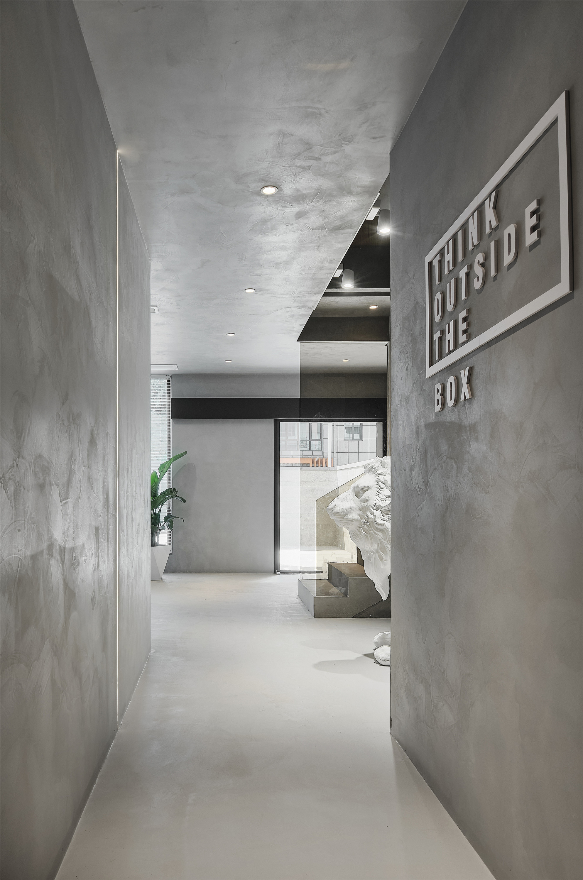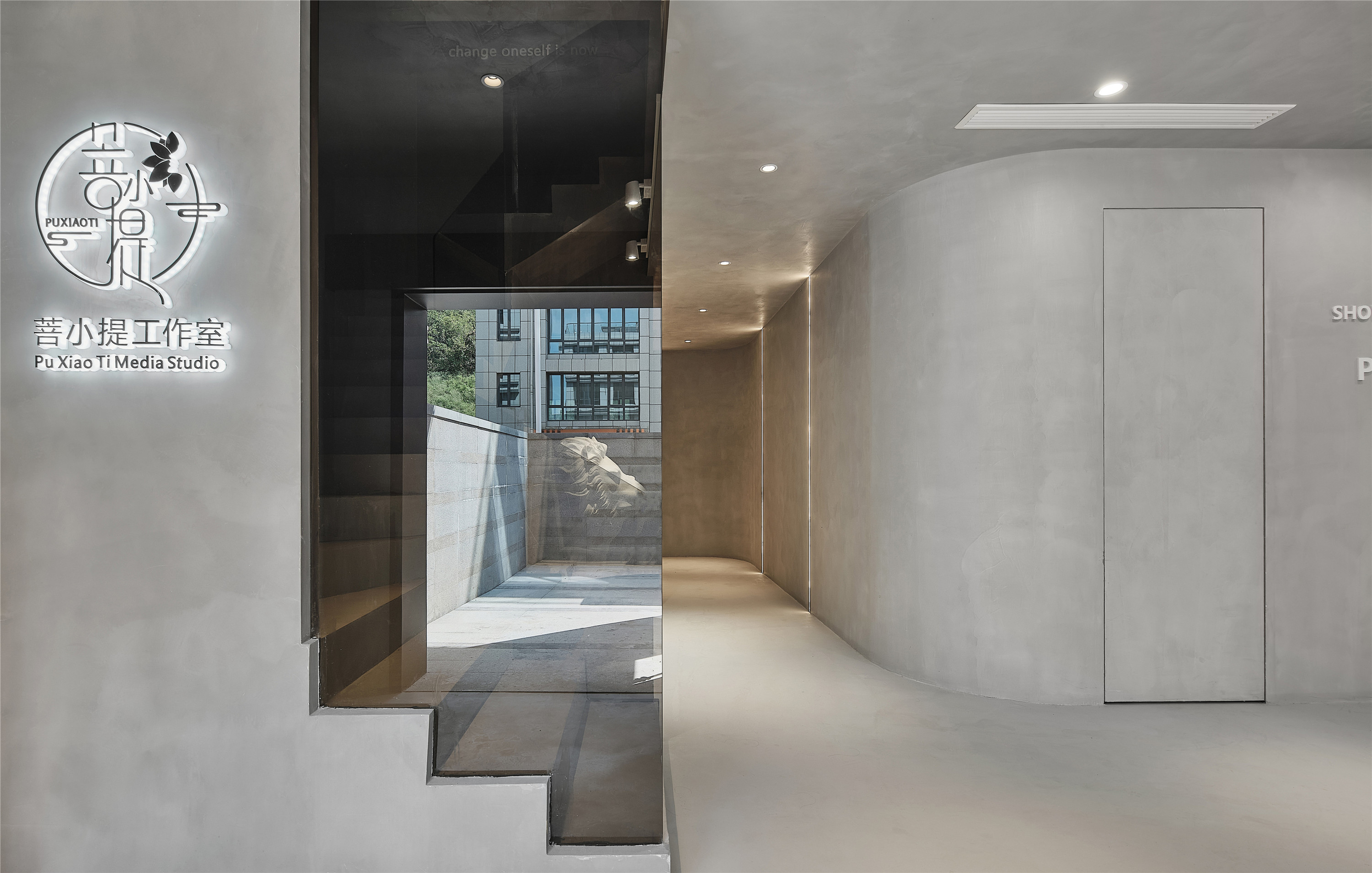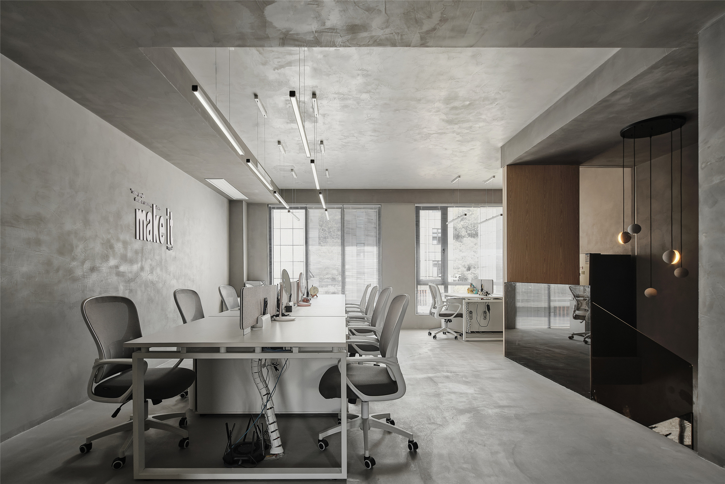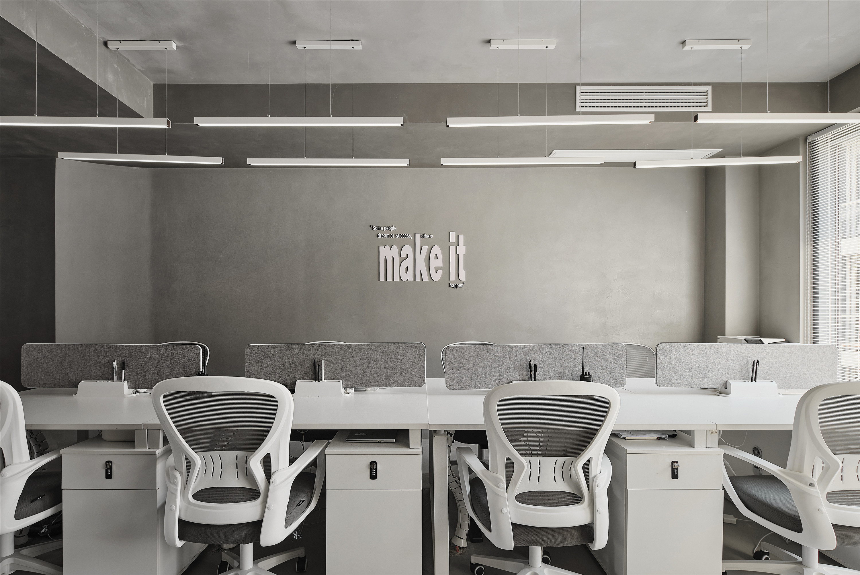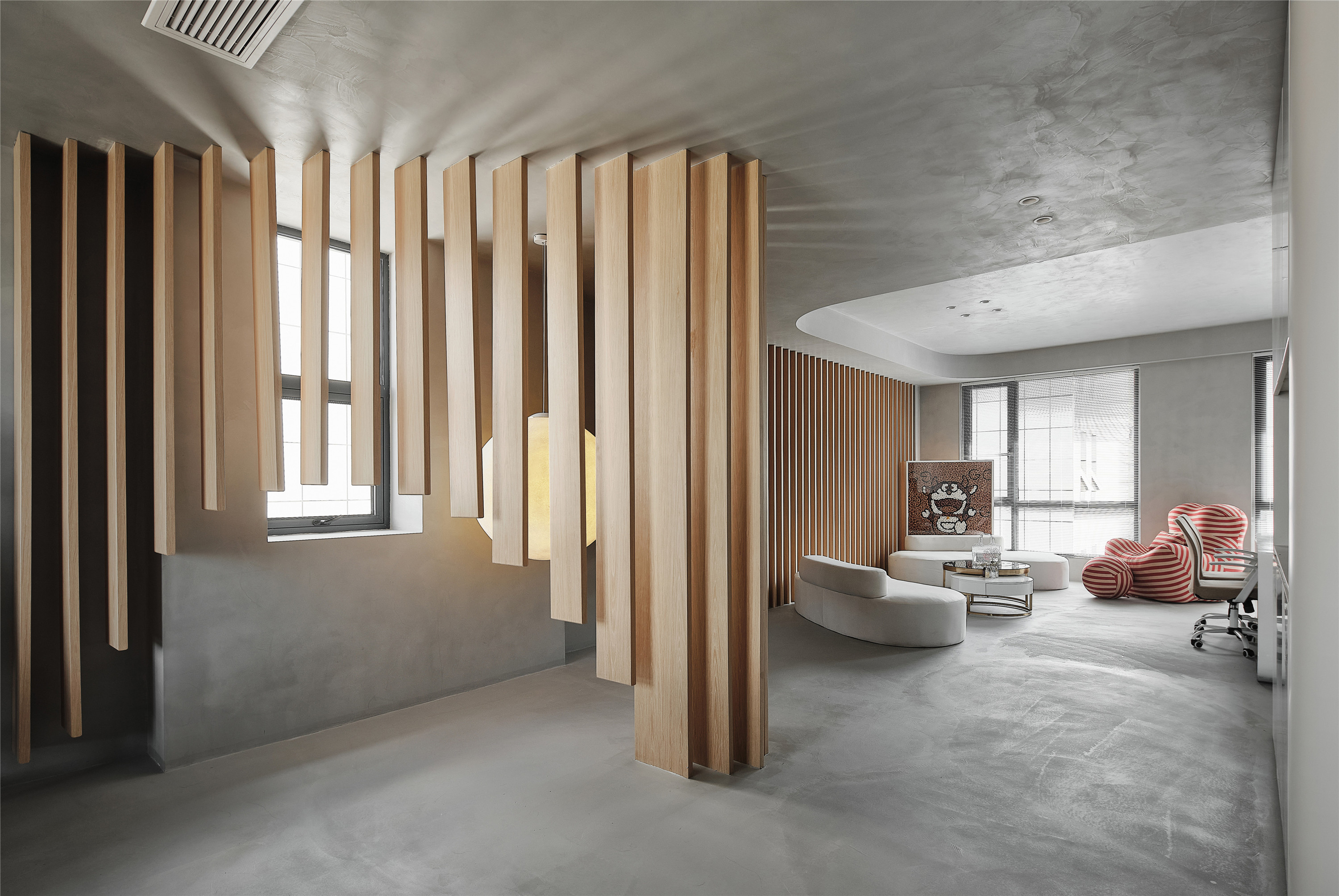 采用灰色调为主,弧形曲面和结构的造型打造艺术气息,打造符合年轻团队的创意空间。
