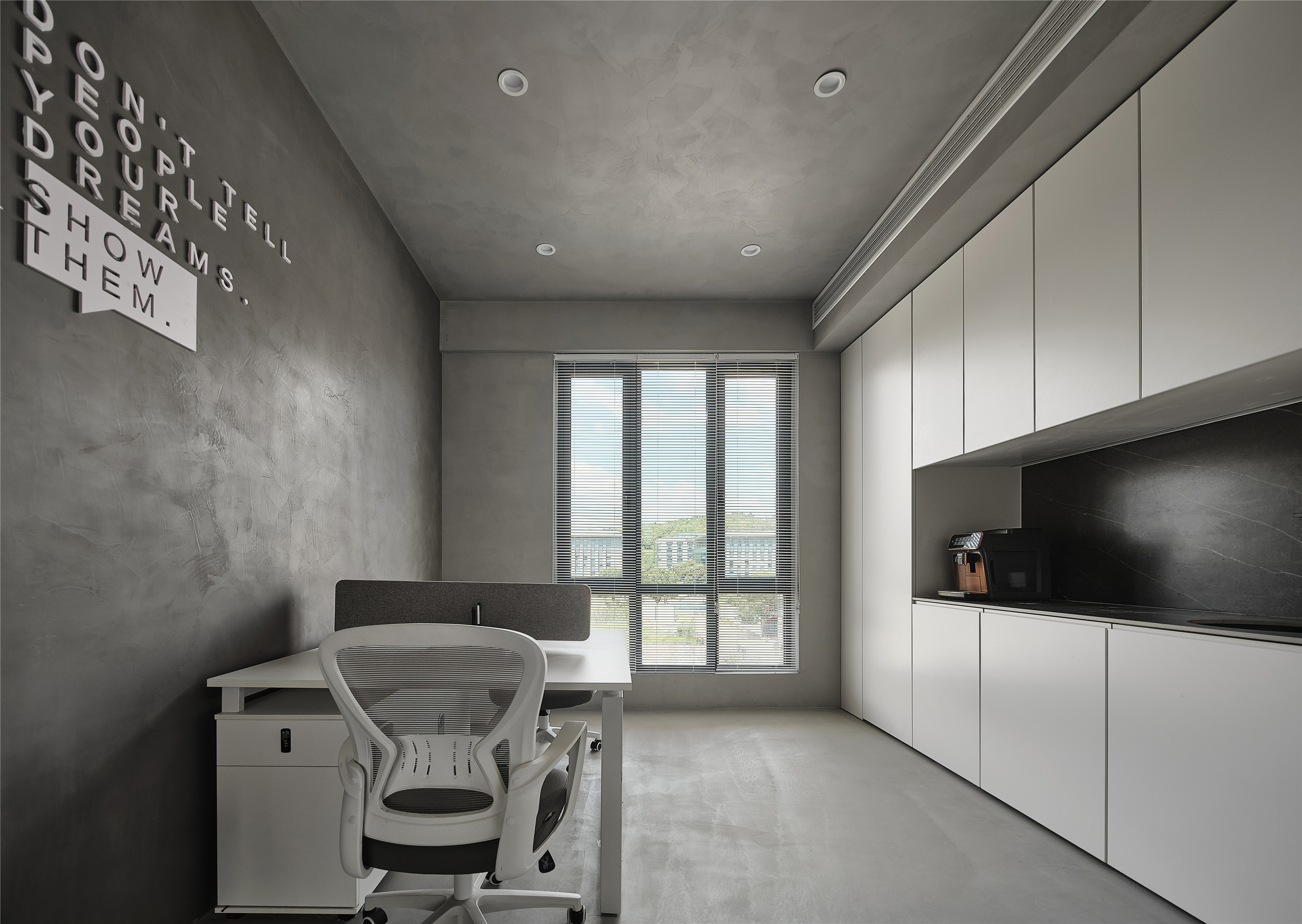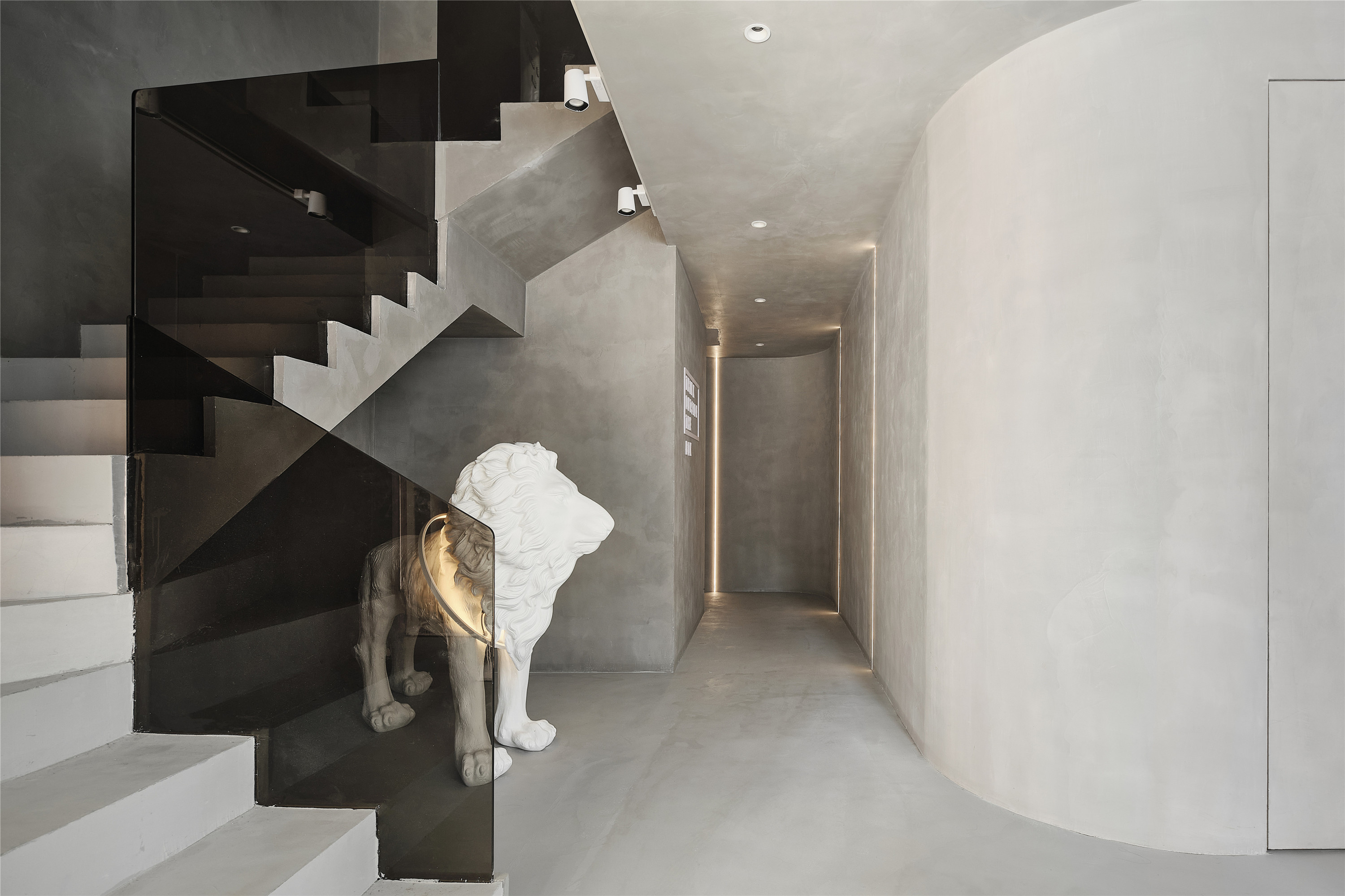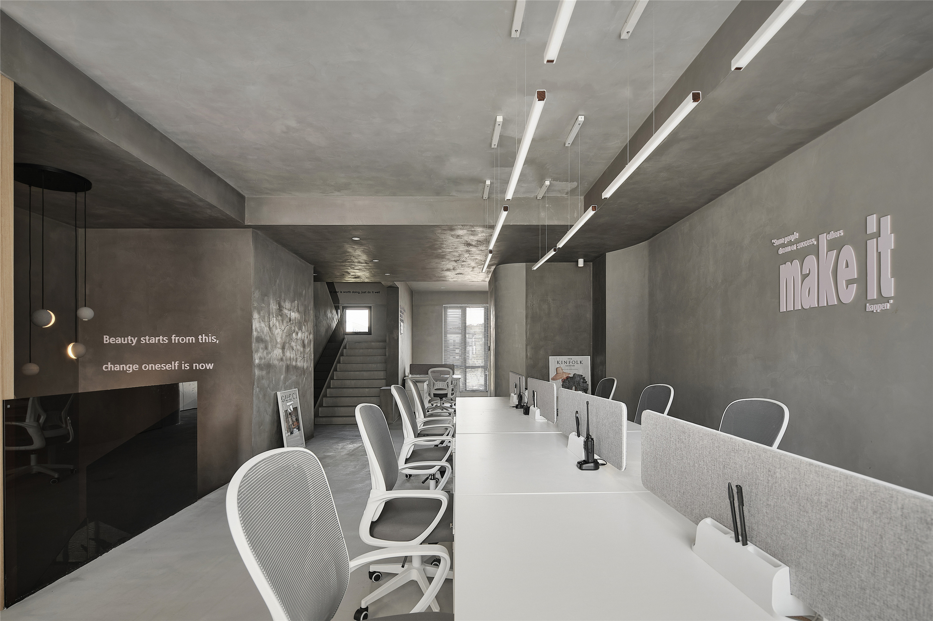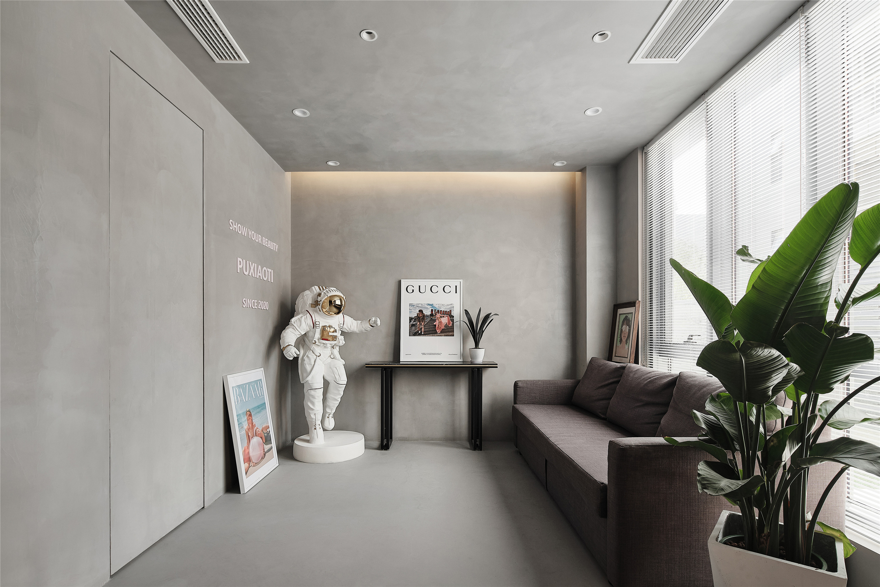 采用灰色调为主,弧形曲面和结构的造型打造艺术气息,打造符合年轻团队的创意空间。