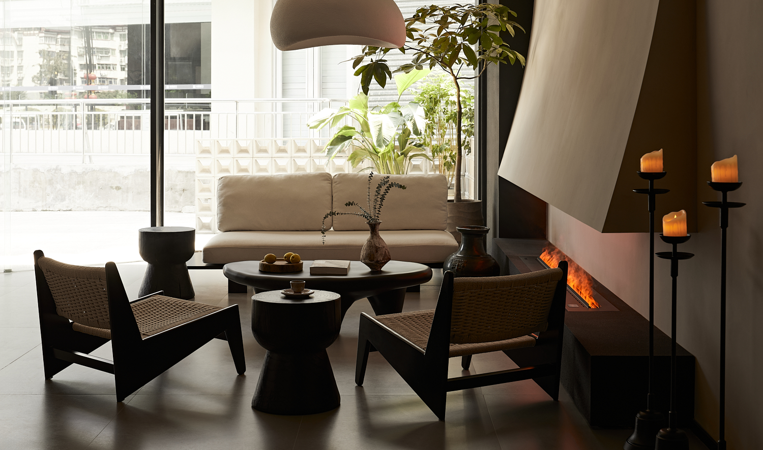 空间意境:室内设计风格遵循简约自然的美学,透过温暖的灯光和柔和的阴影营造出平和舒适的氛围,融合了自然与建筑元素,力求实现空间与环境的共生。大面积的玻璃窗不仅提供了充足的自然采光,还让阳光恣意洒入室内,柔和的光影变化增添了空间的宁静感。整体色调采用中性色,以植物作为点缀,注入了空间的生机感,同时保持极简的美学调性。这样的设计旨在让建筑与洛阳古城的历史风貌相呼应,使客人能够感受到区域的独特文化韵味和历史厚重感。