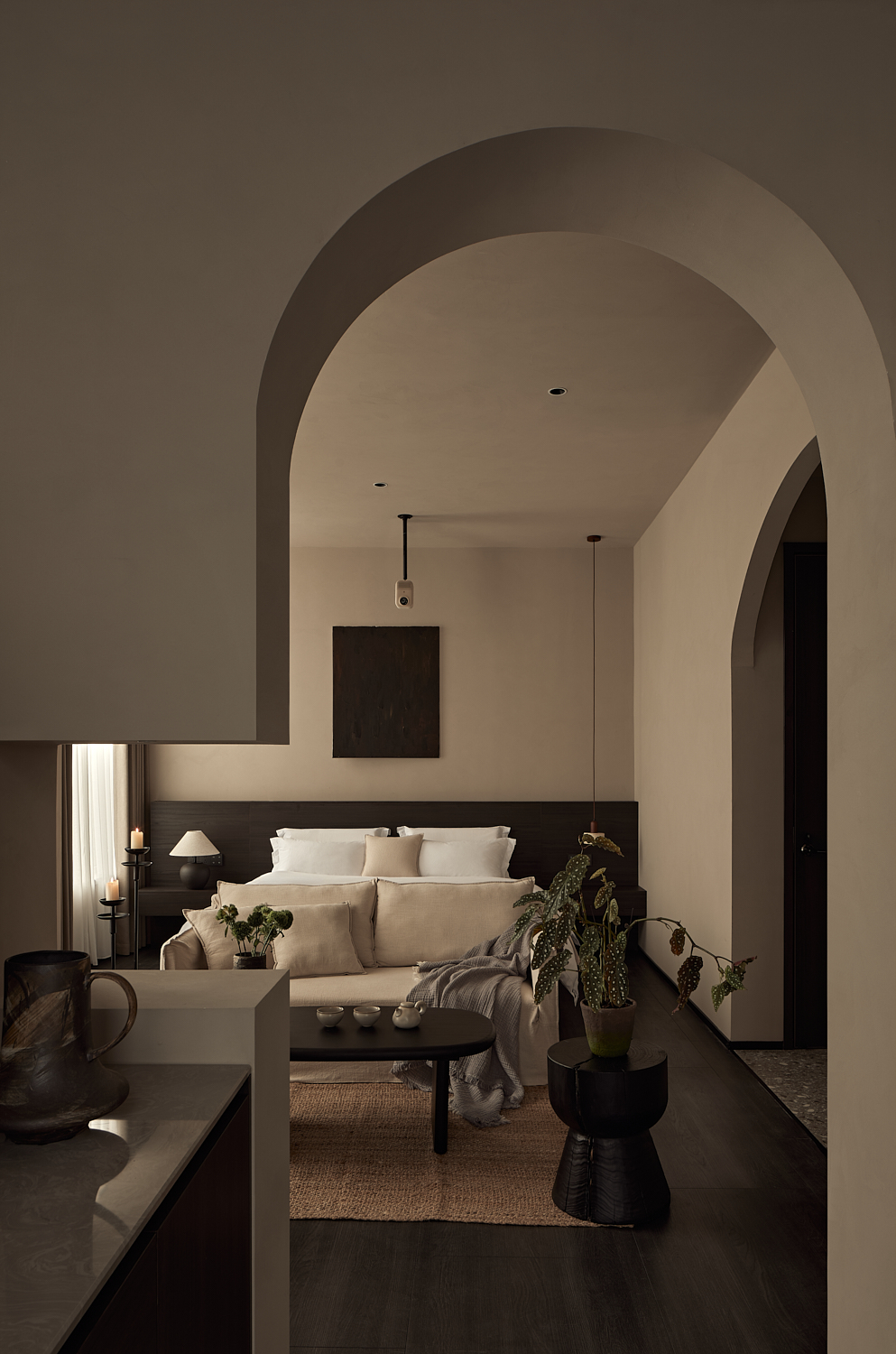 用户体验:为了在空间设计上更充分地体现与自然以及文化的紧密联系,项目在场地内还精心布置了一系列艺术品和植物。这些元素被策略性地安放在各个角落,使整个建筑与环境形成了紧密的联系,模糊了室内外的边界,使客人能够在入住期间与自然建立亲密的关系。在这种设计理念的引导下,建筑不仅是一座城市中的酒店,更是与周围自然环境和人文景观融为一体的存在,为宾客提供宁静且富有文化气息的独特体验。
