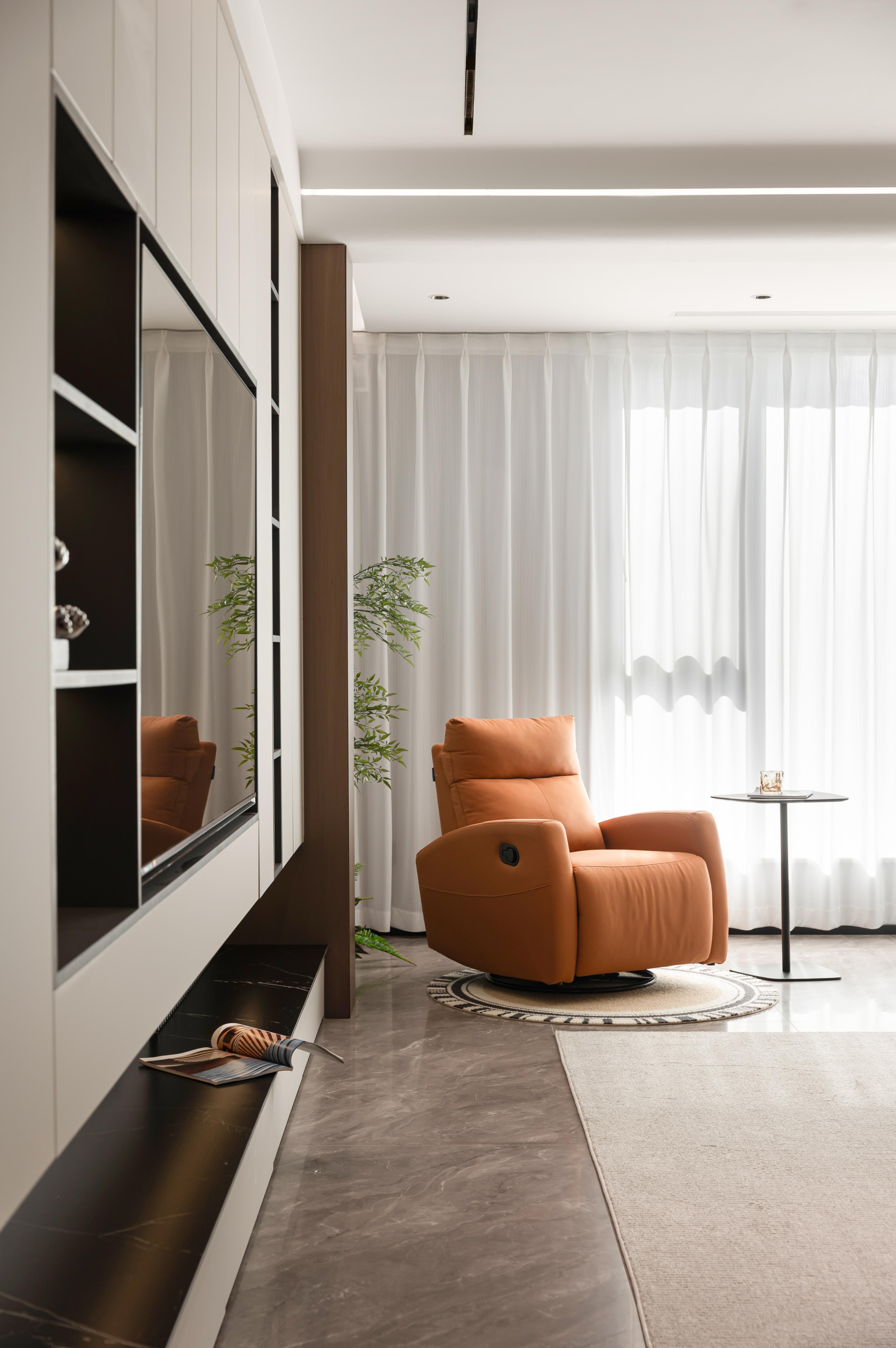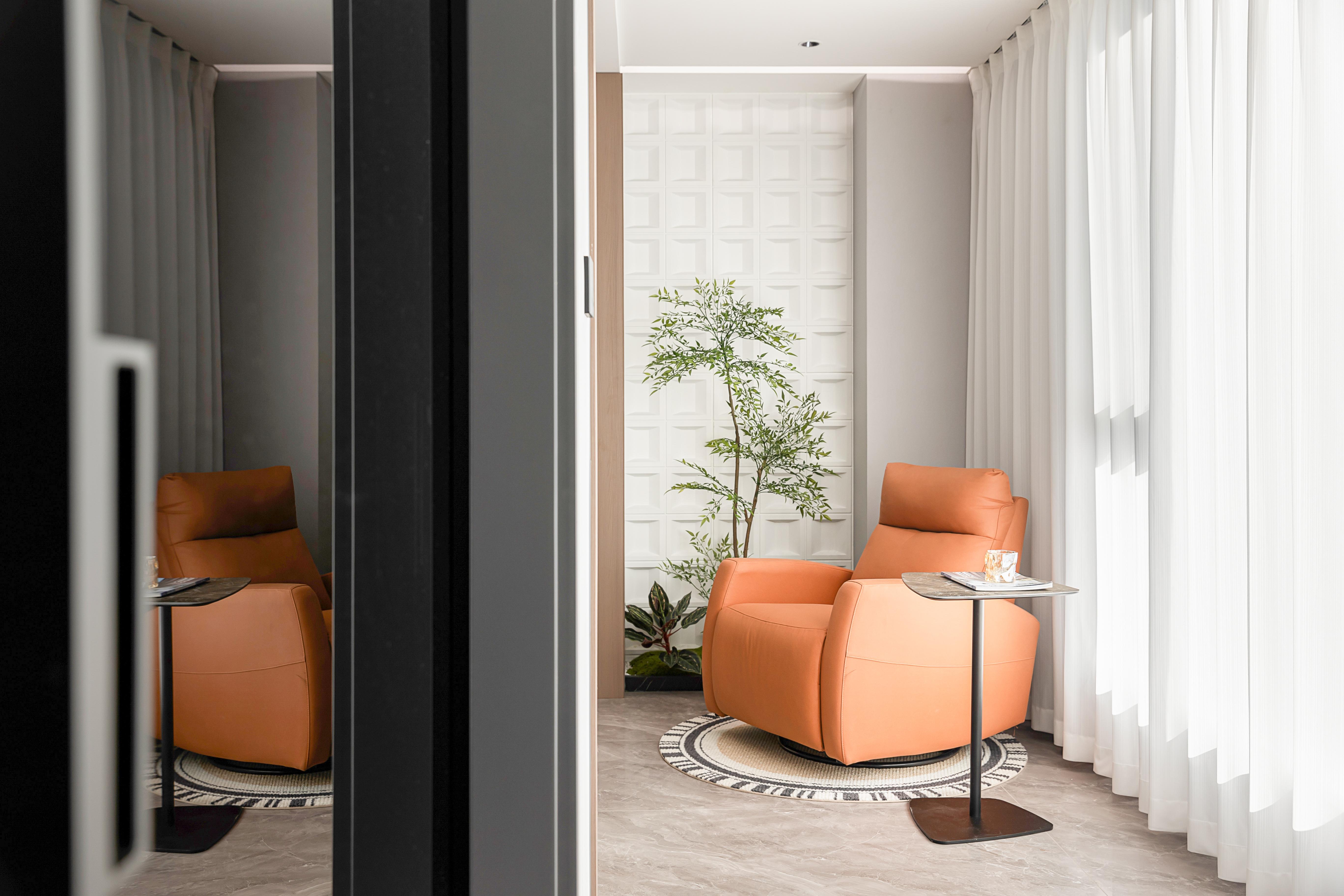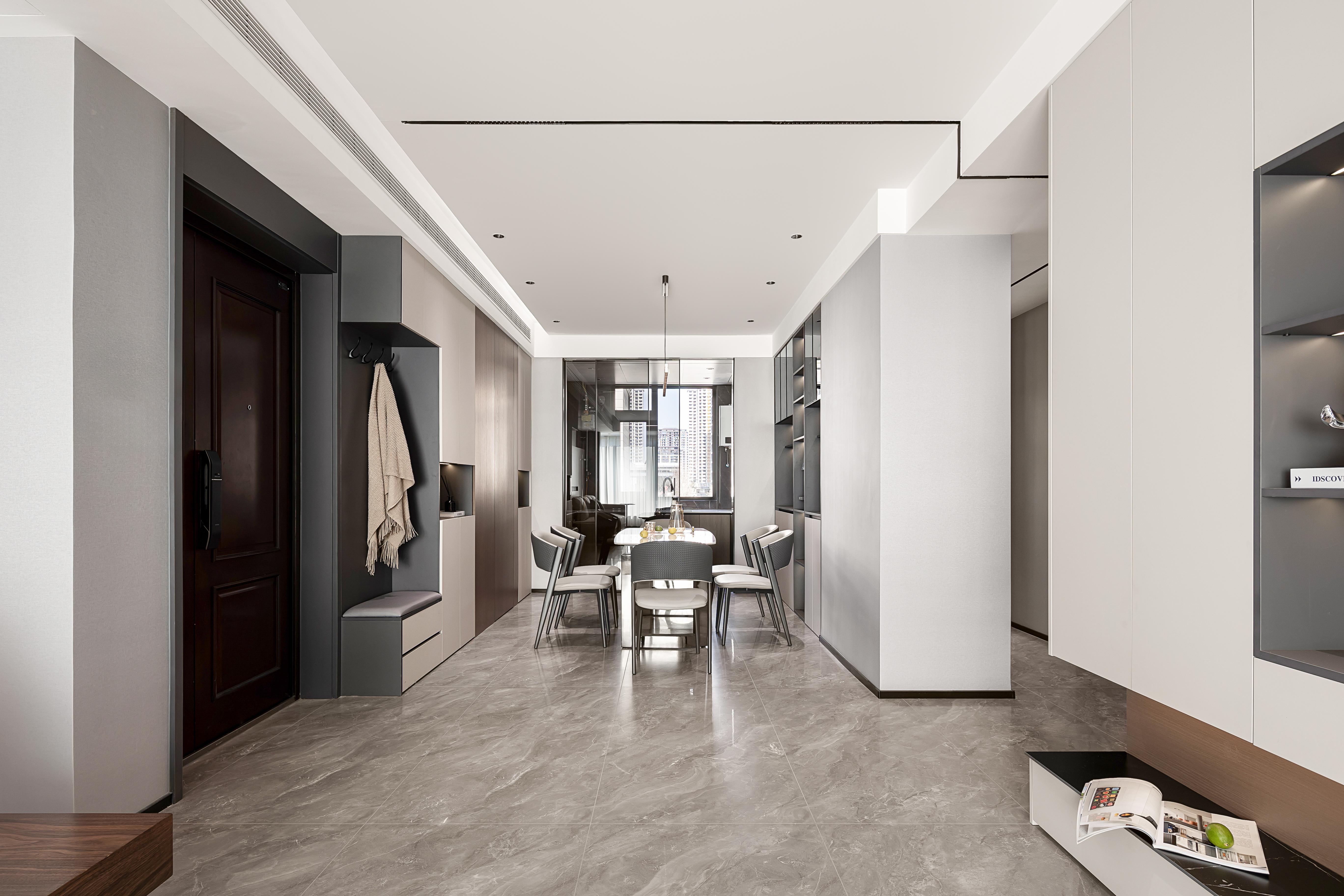 设计选材:色彩上以黑白灰色系为主调,时尚、精致、专注细节的现代人文气质油然而生,局部点缀明亮的色调为空间增加流动的色彩与生机感。