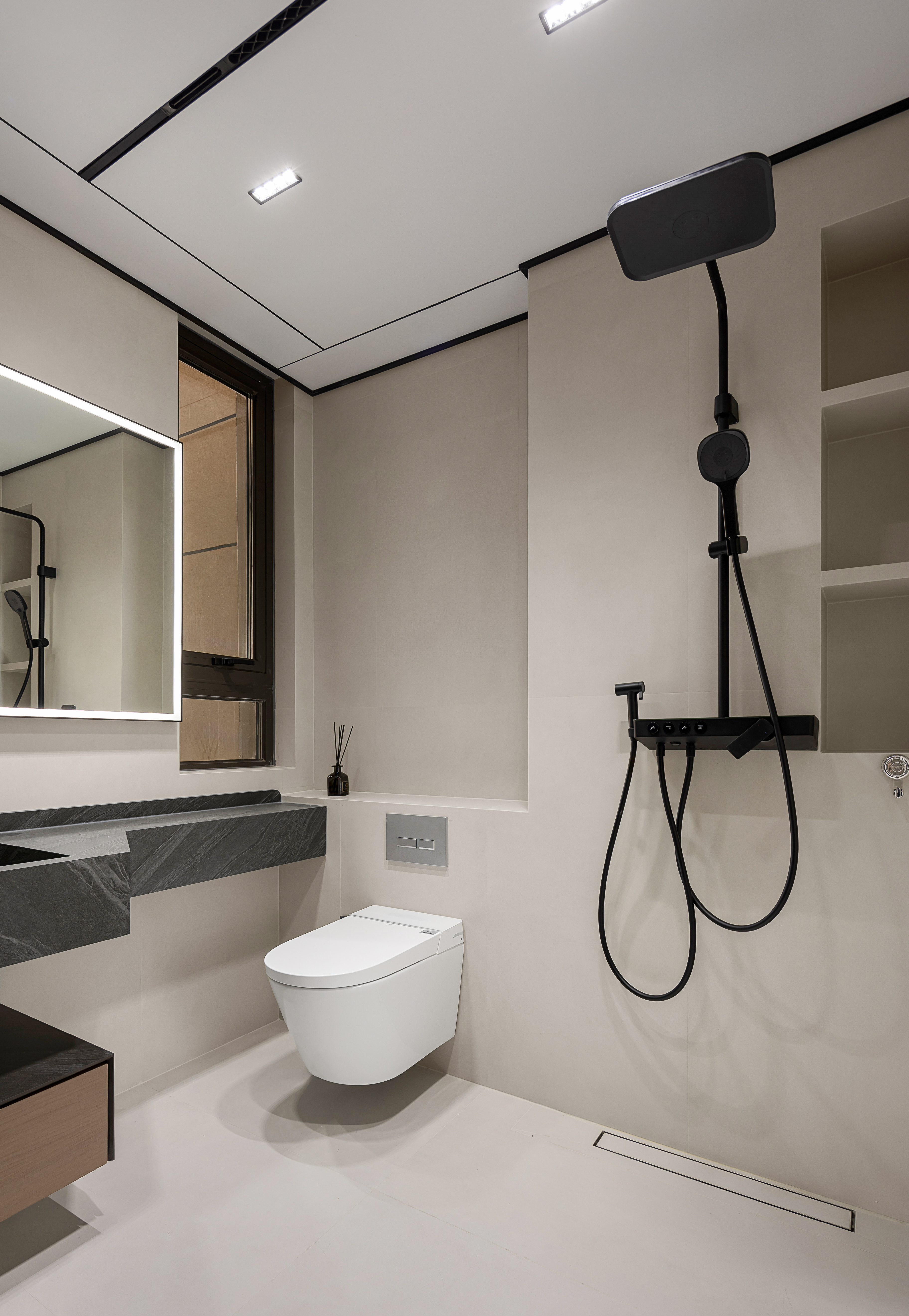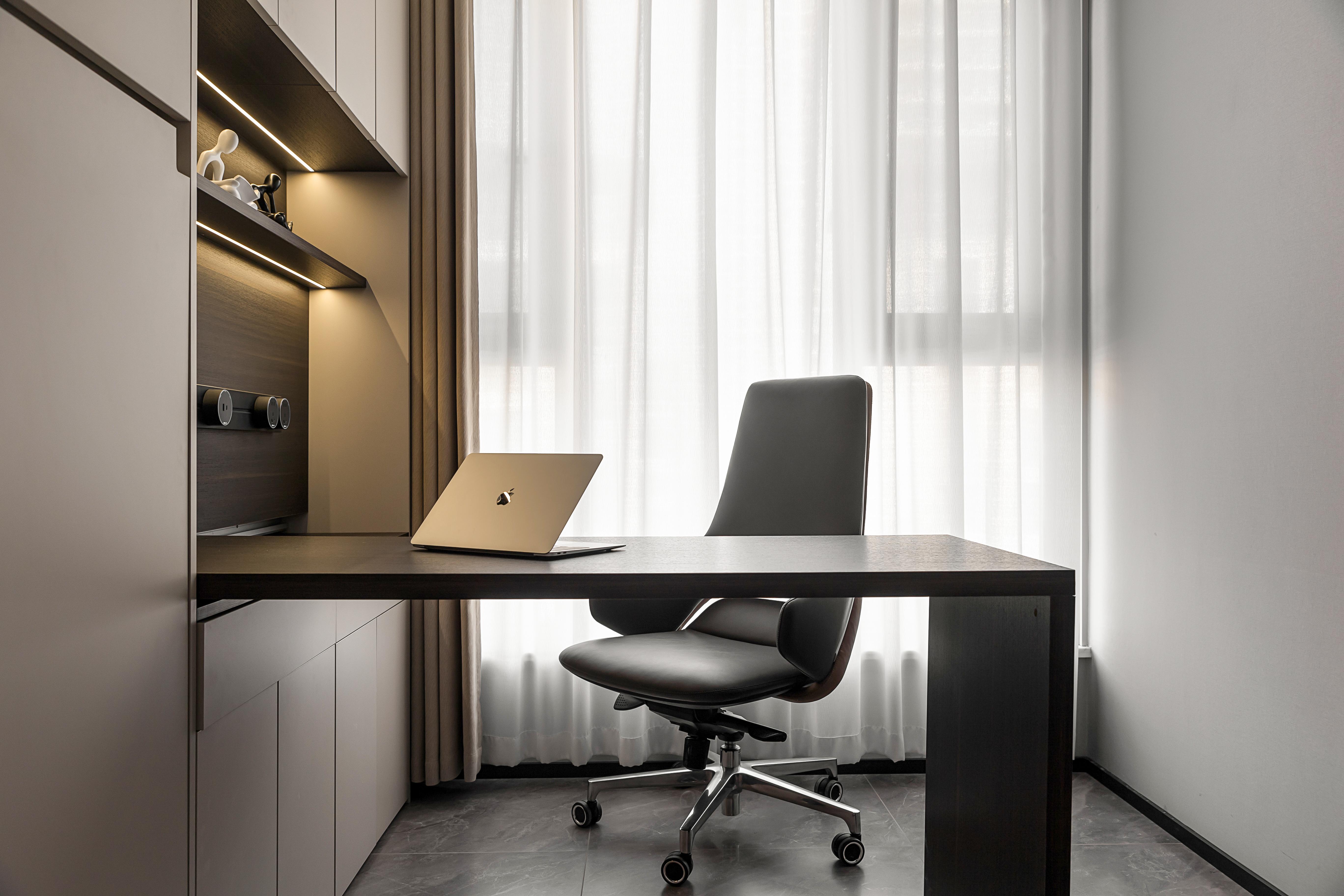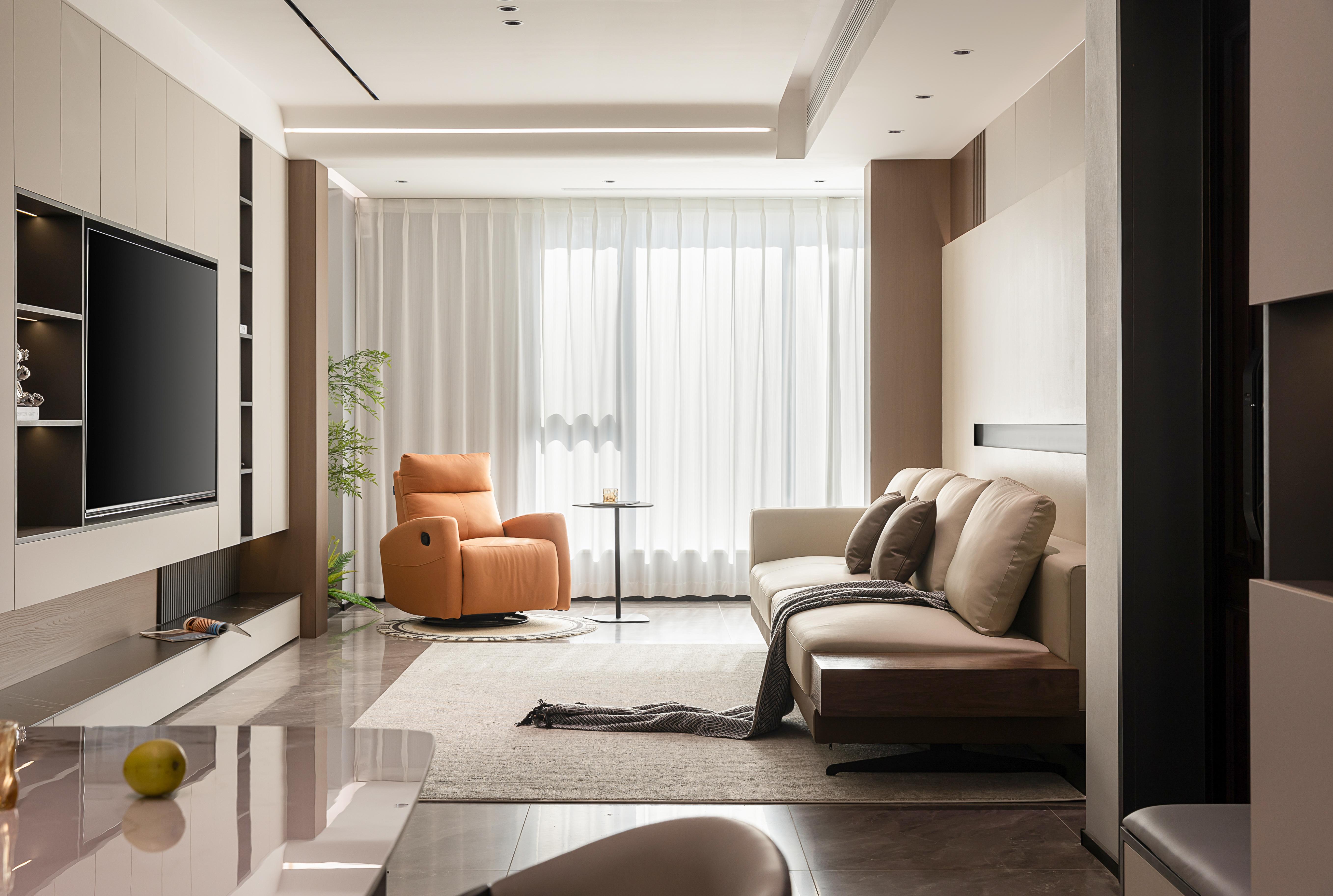 设计选材:色彩上以黑白灰色系为主调,时尚、精致、专注细节的现代人文气质油然而生,局部点缀明亮的色调为空间增加流动的色彩与生机感。