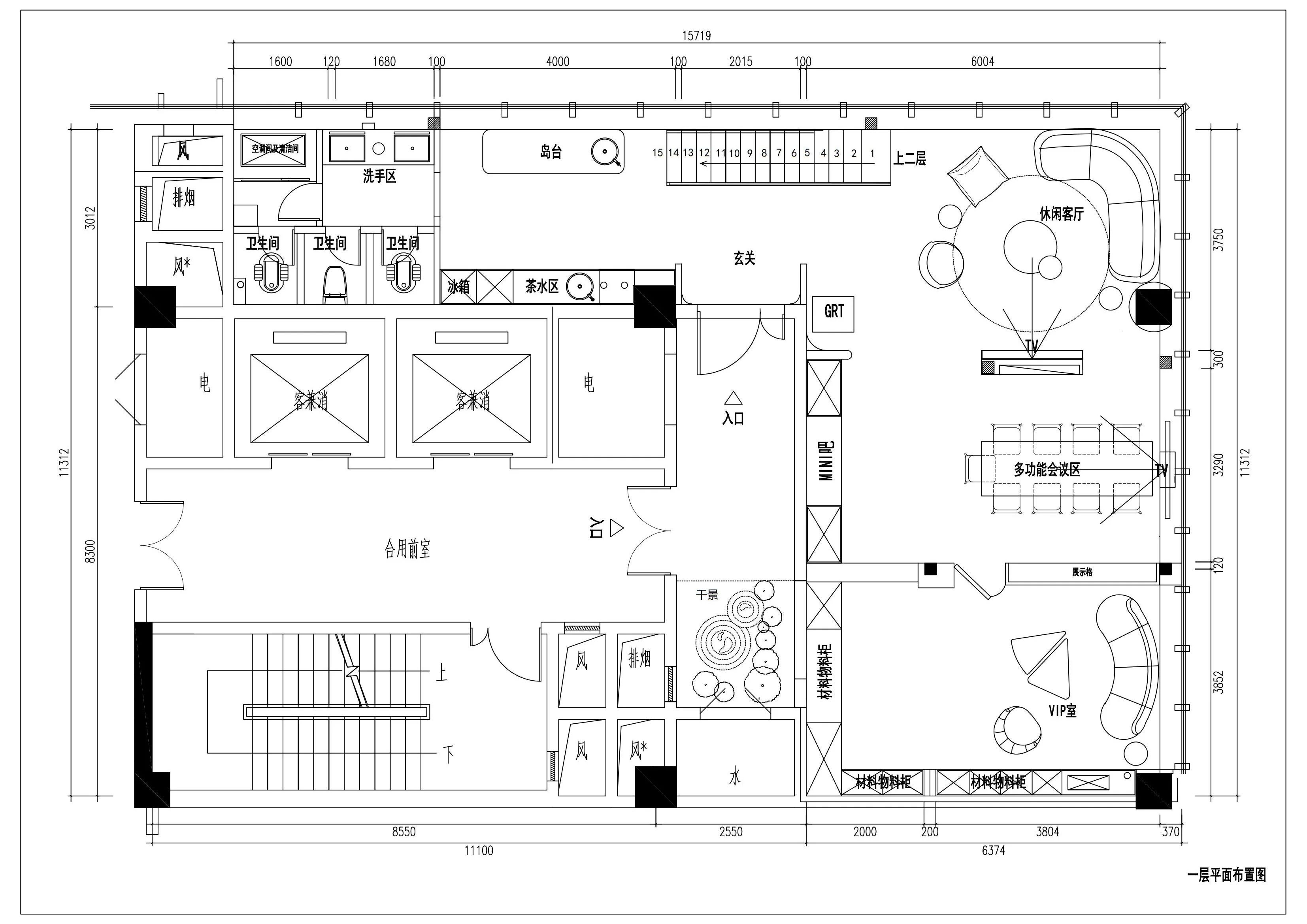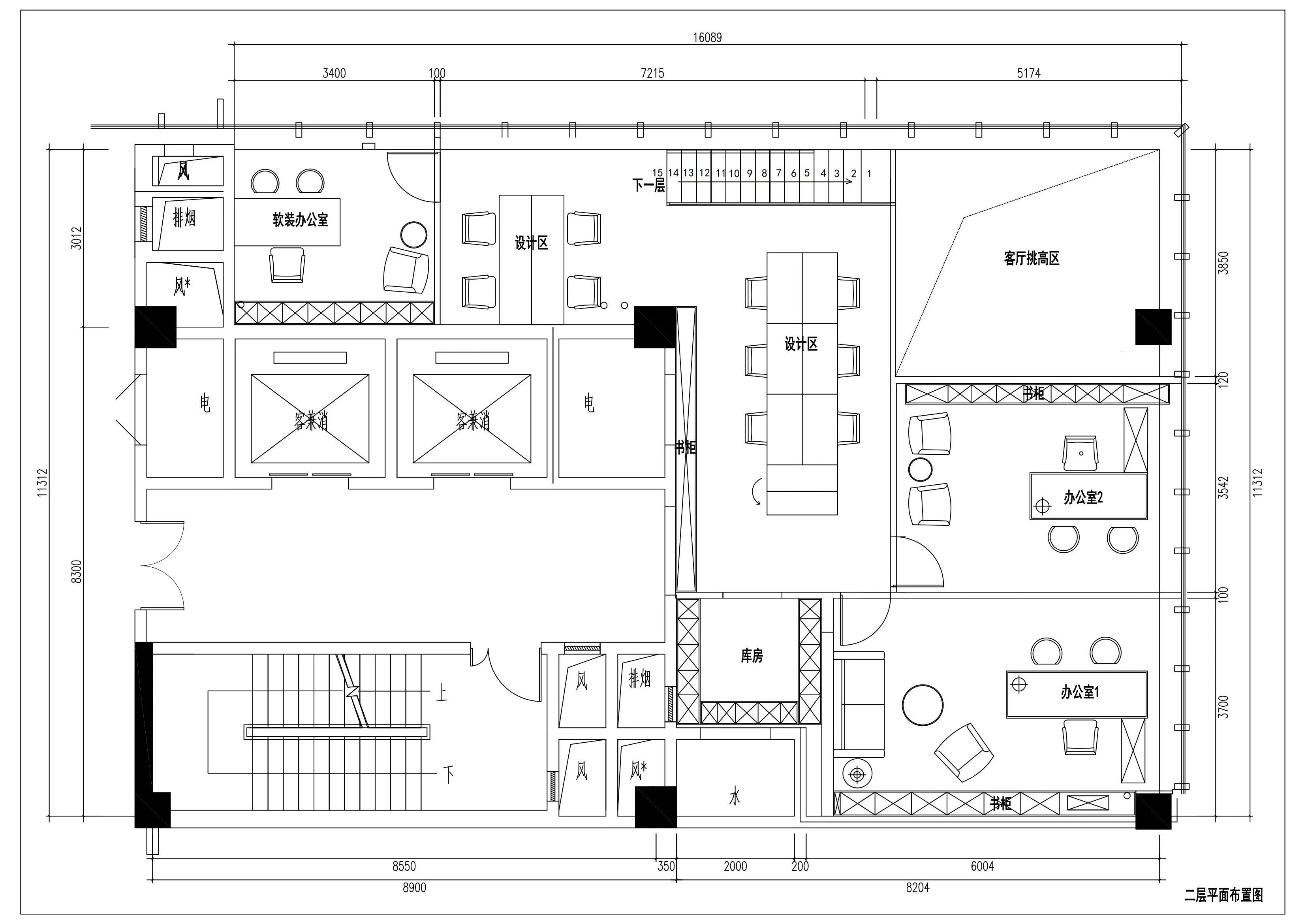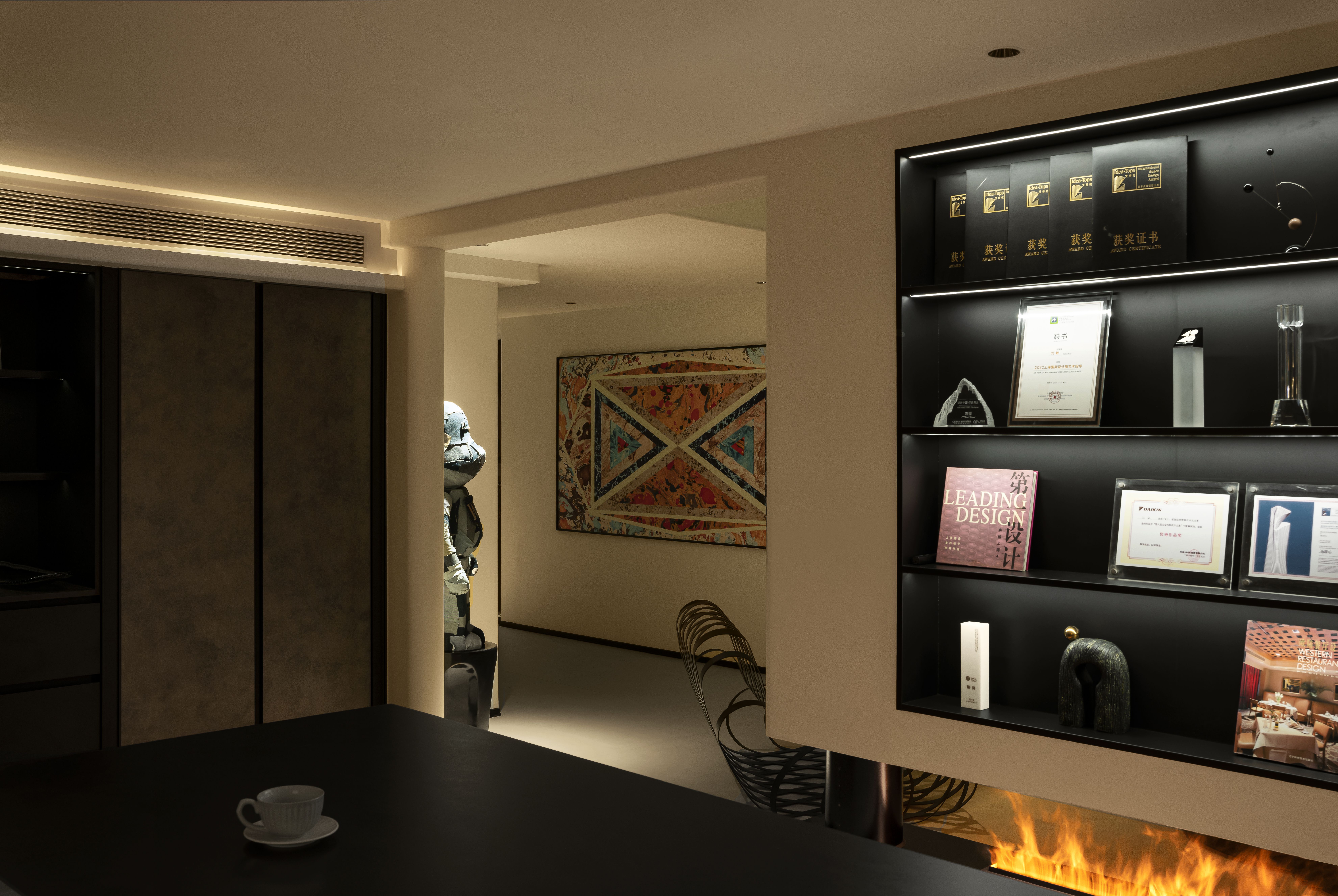 在以往概念中的会议室是封闭,黑暗的空间,在此项目中会议室更希望定义成一个舞台,是思想上的碰撞,灵感上的激发,可以让更多的人看到并参与其中,将会议室做成一个半开敞的空间,放在整个布局的中心位置,柔和了空间功能的分区界限,使得这一“转折”成为空间中自然连贯的“媒介”。 -