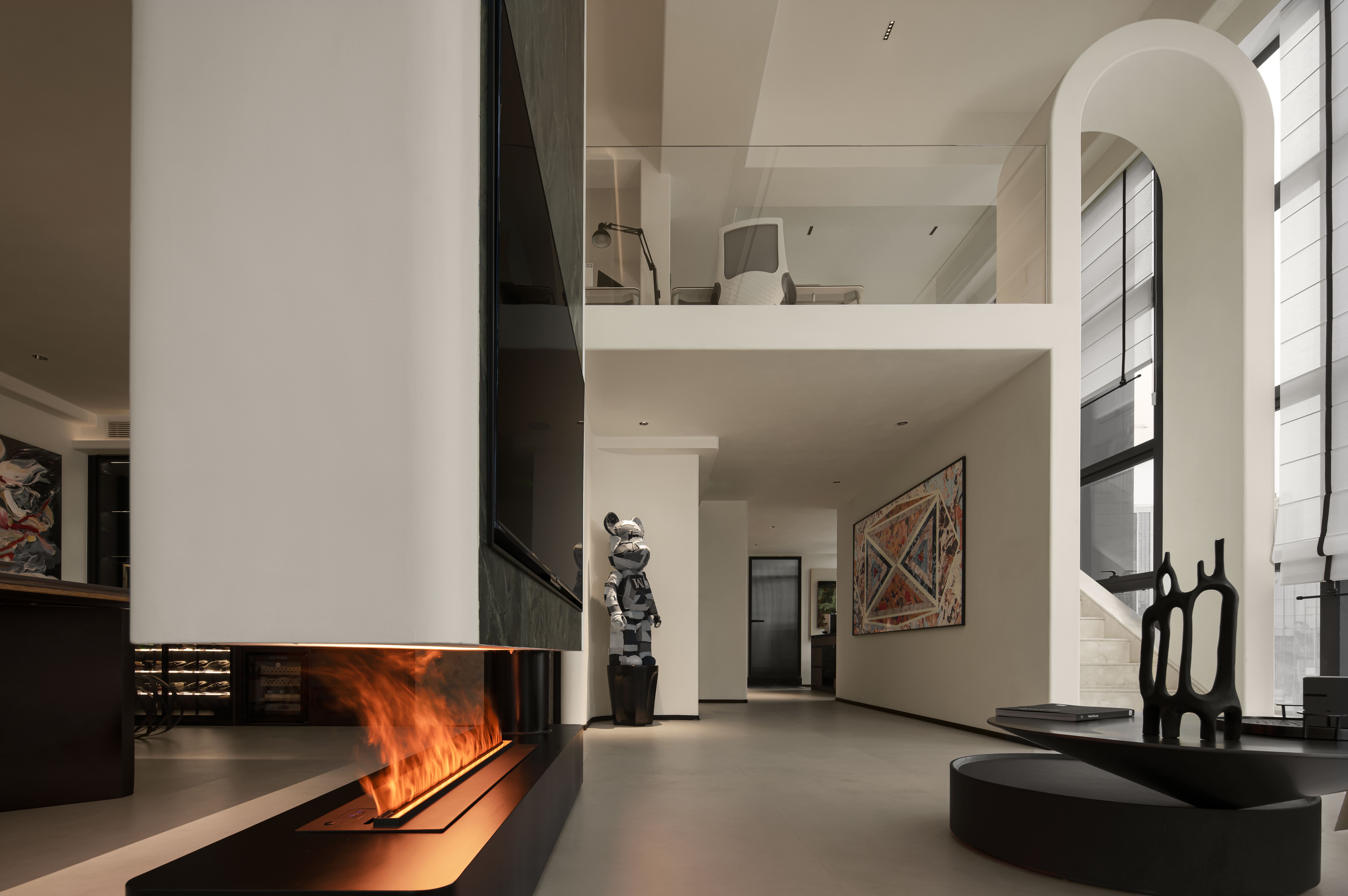 空间意境:以“弧形”作为贯穿整个设计的主线,通过使用挑空的设计手法,将原本长条形的空间进行分解与重构。