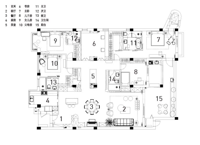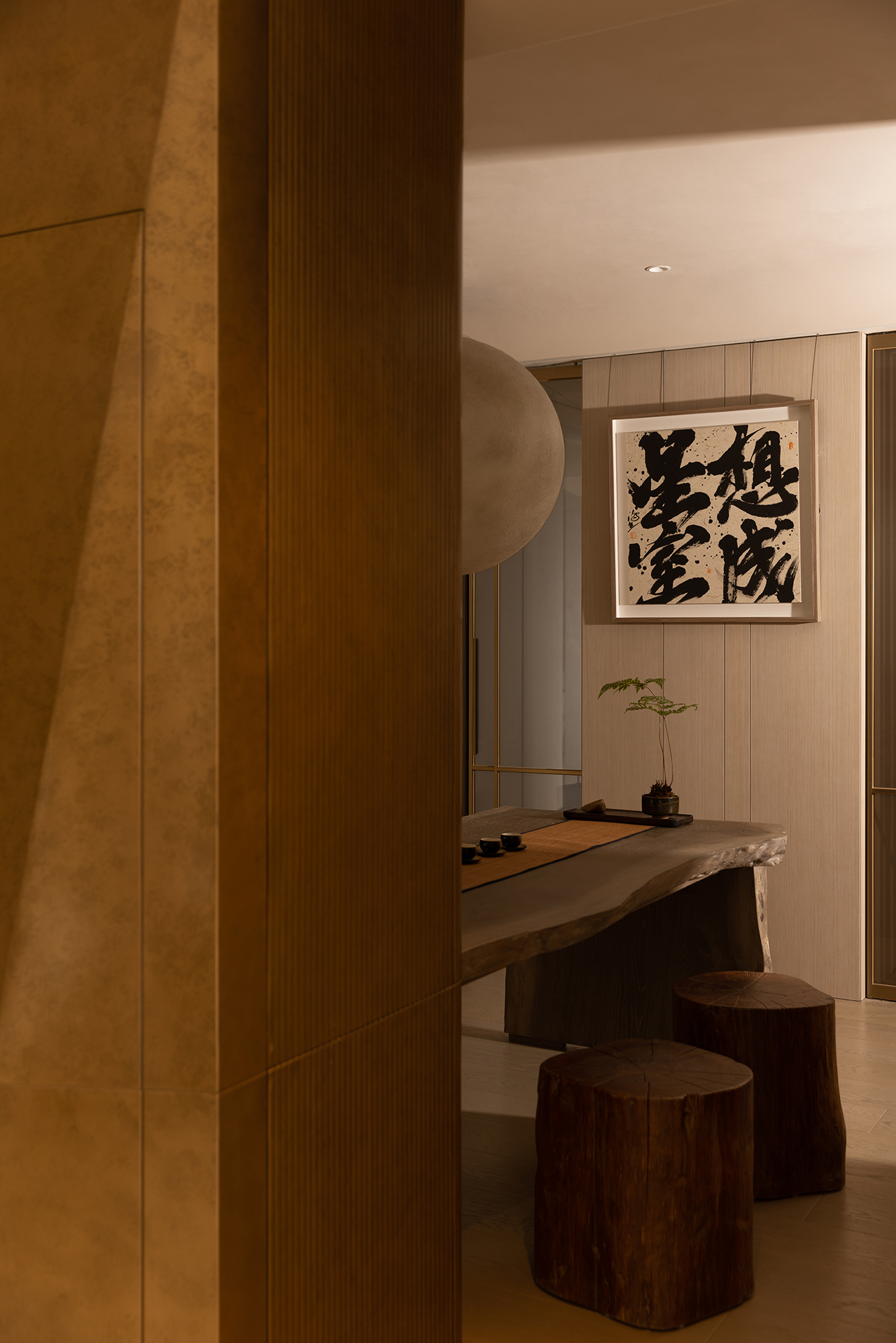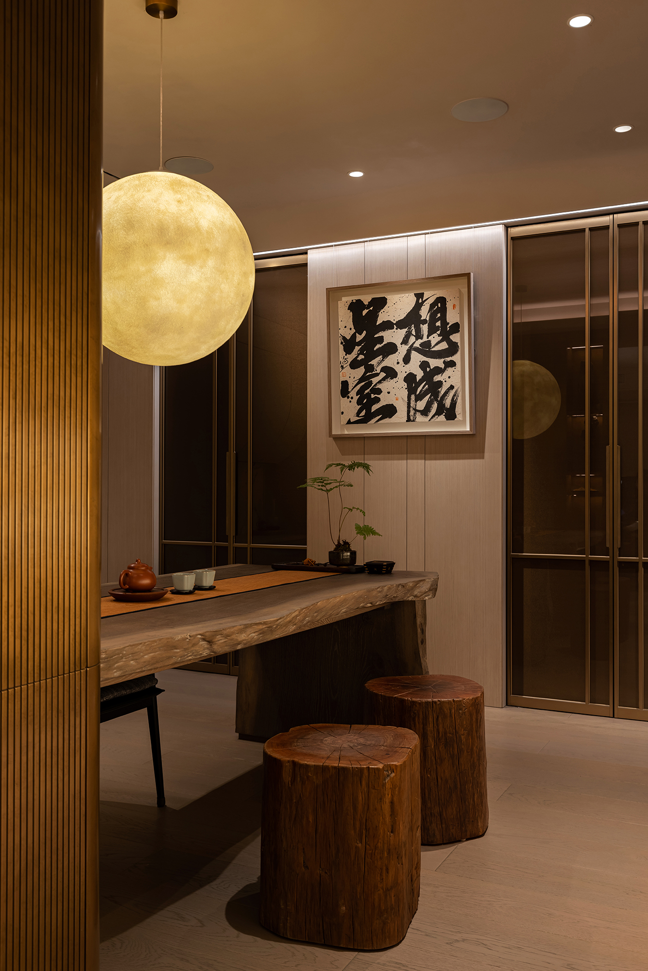 2.利用客餐厅与卧室书房之间的过渡空间,打造茶室,满足喝茶和藏品展示的文化需求;