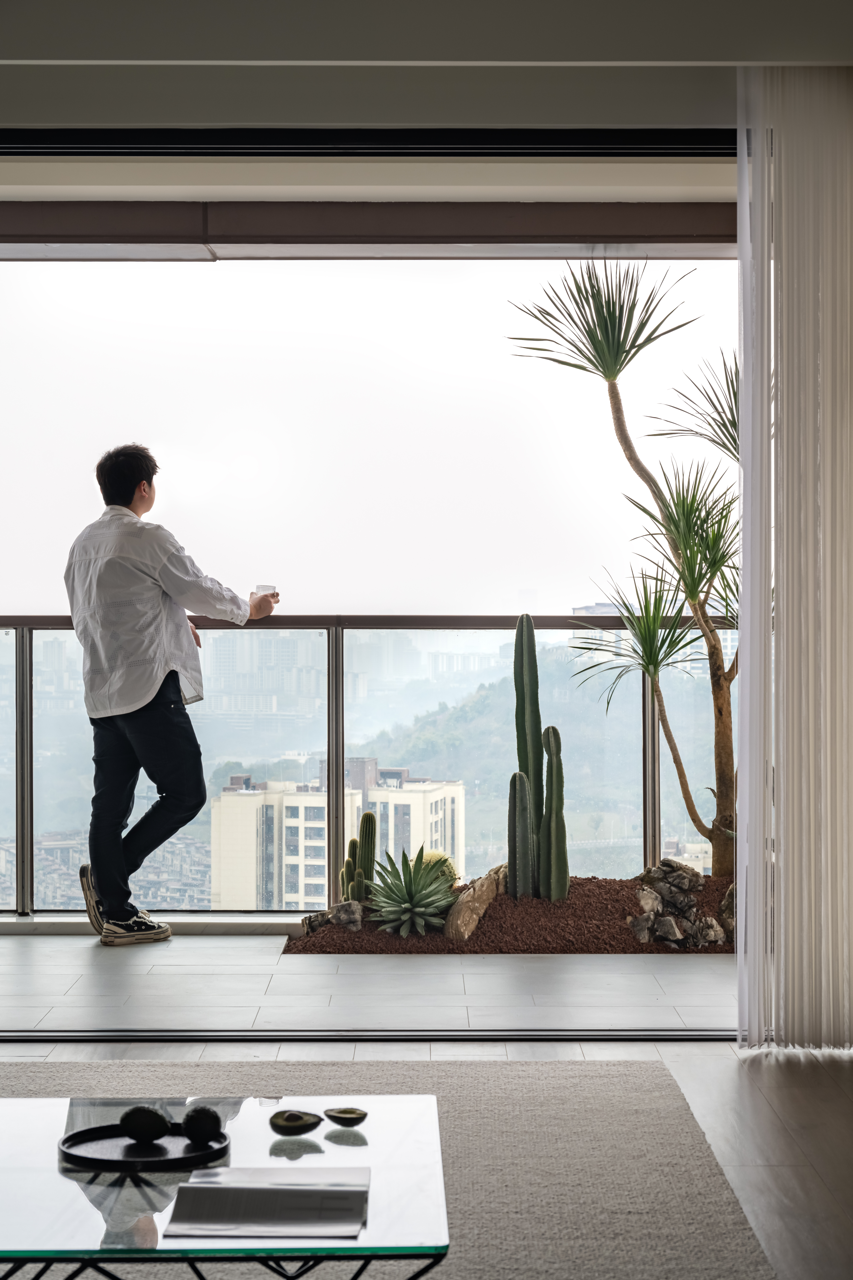 空间意境:保留了大的外景阳台,增加了室内外的互动。用不同材料从新规划整理空间上的一些不足,形成新的自序感。