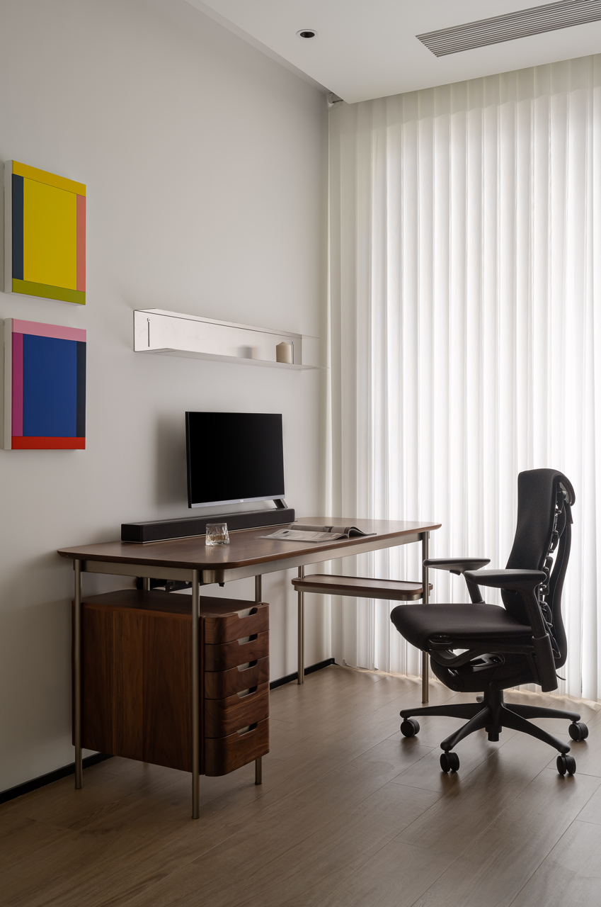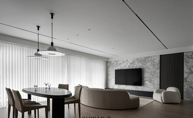 项目定位:舒适生活,从极简主义开始。洗碗空间灵动而富有轻松感。运用极简的设计语言重构空间秩序,松弛有度,并赋予空间极简与克制的魅力。