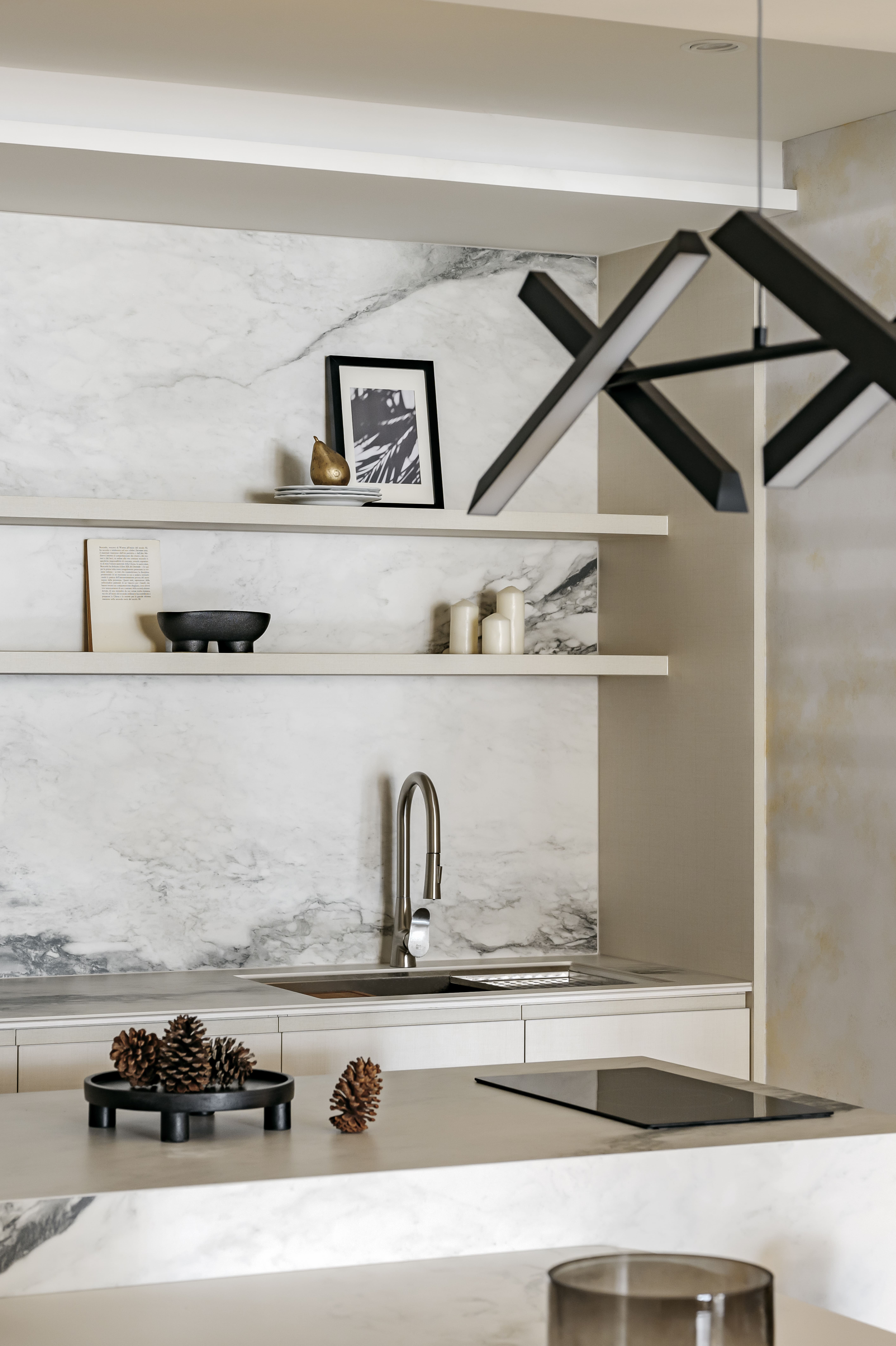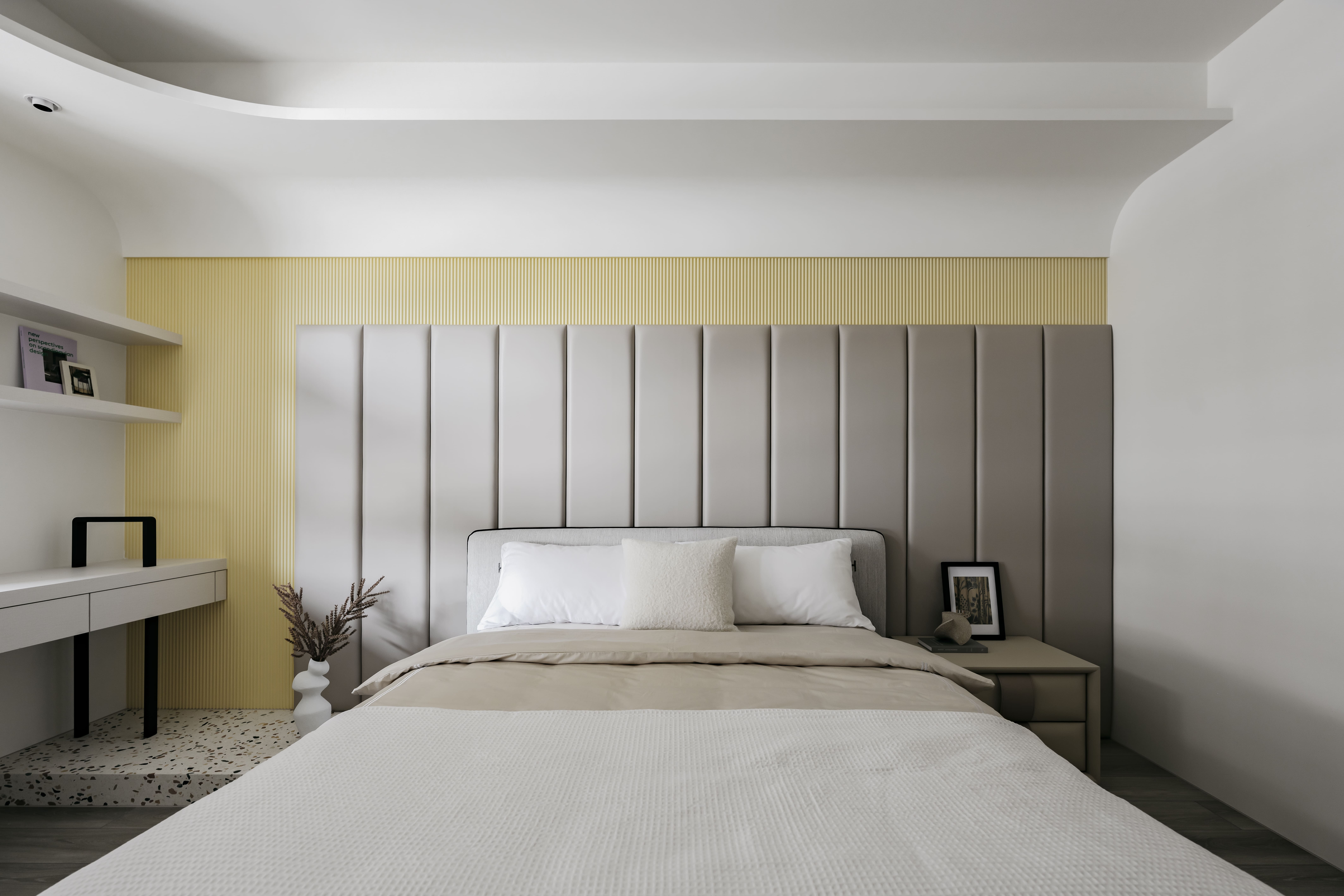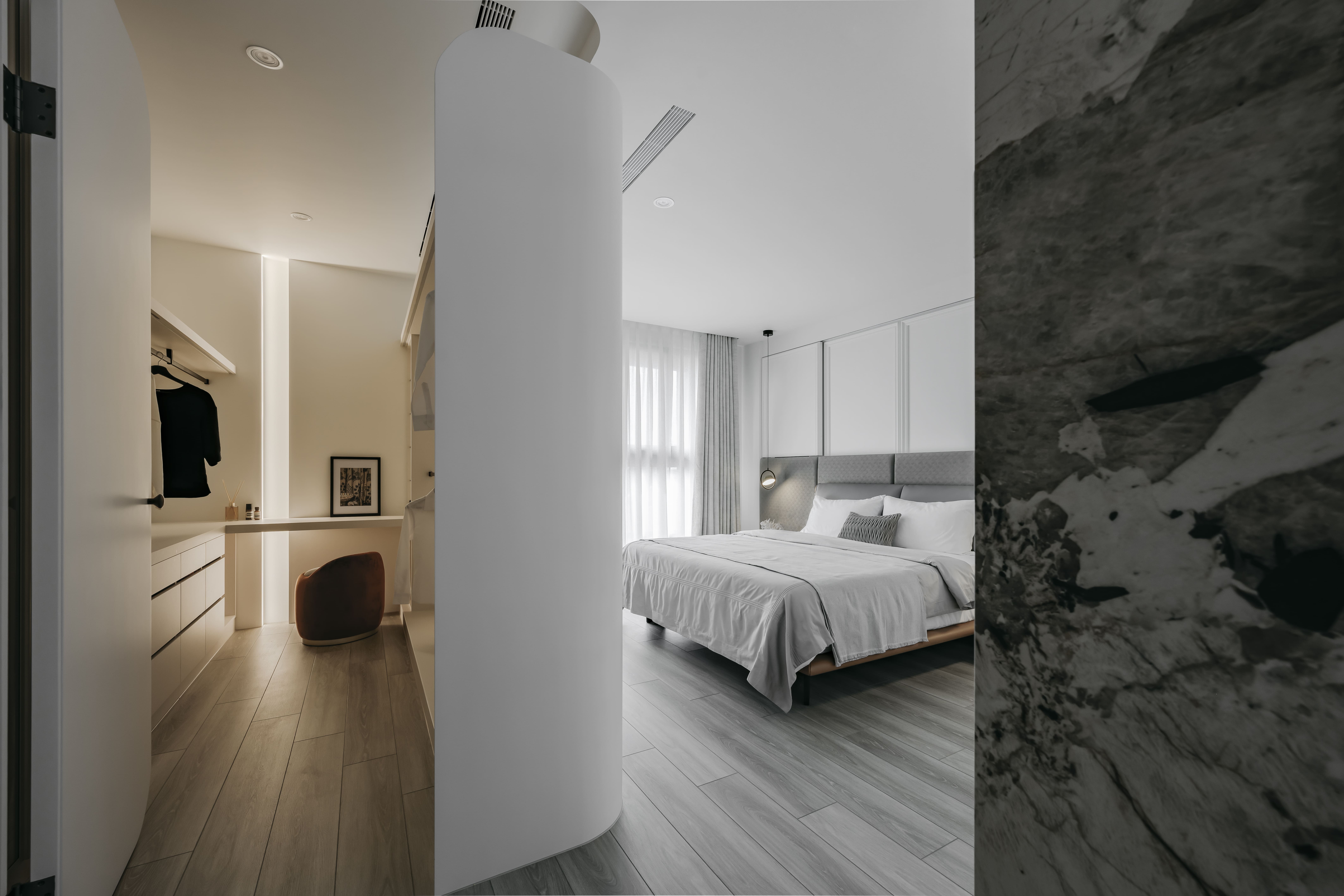 空间意境:空間不如以往強調垂直水平的精確,反由形體之間的連貫取而代之,從光影延伸至虛實,如同X軸及Y軸,沿著隱藏的軸線垂直水平分割。
