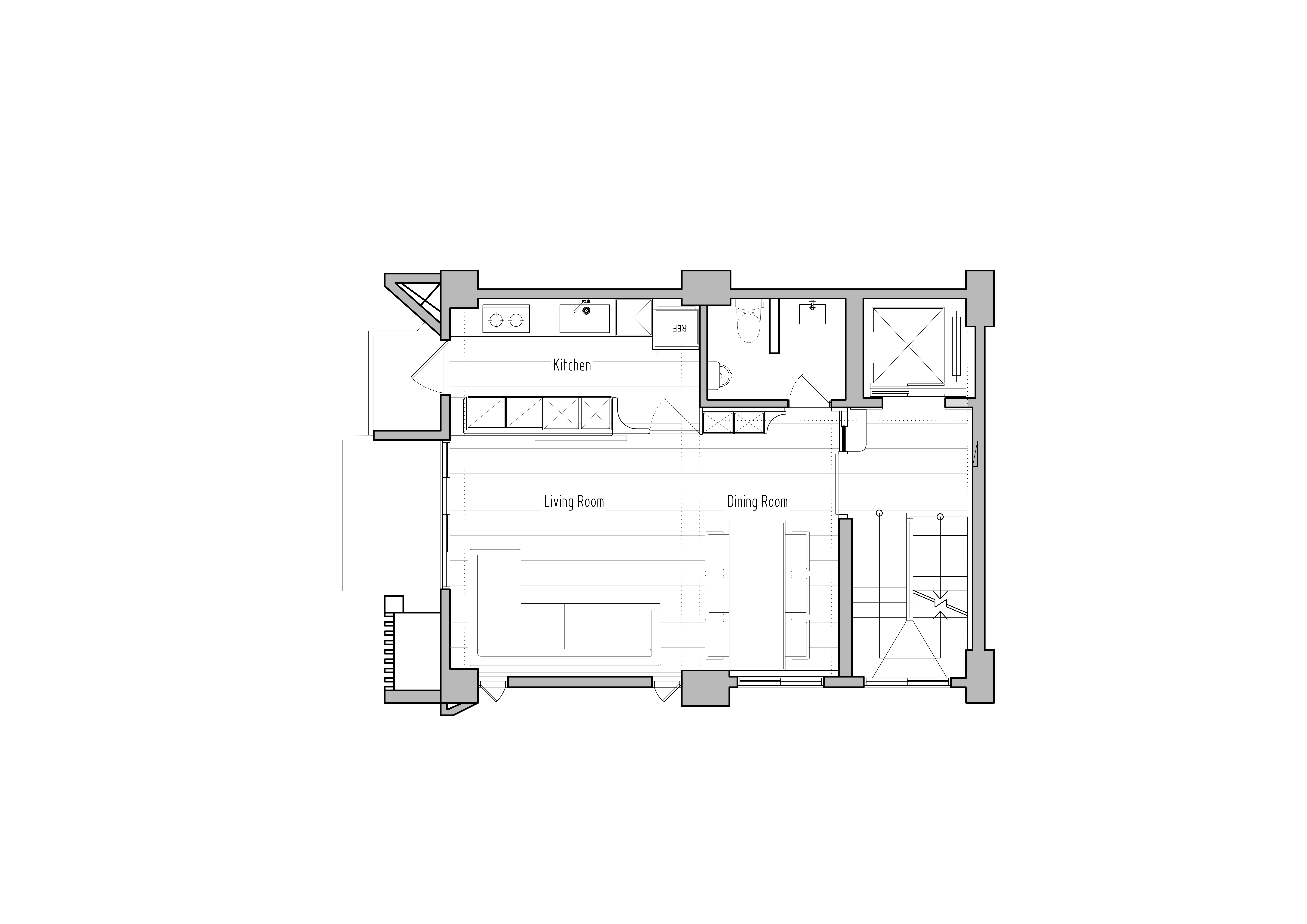 空间意境:形體本身無法用有無意義來定義,就像文字一樣,文字是可度量的,表達則是無法量化的。方案中的每個形體都具備實際功能,而這些面材、形體則有它們想呈現的模樣,我幫助它們展現出最真實的面貌。