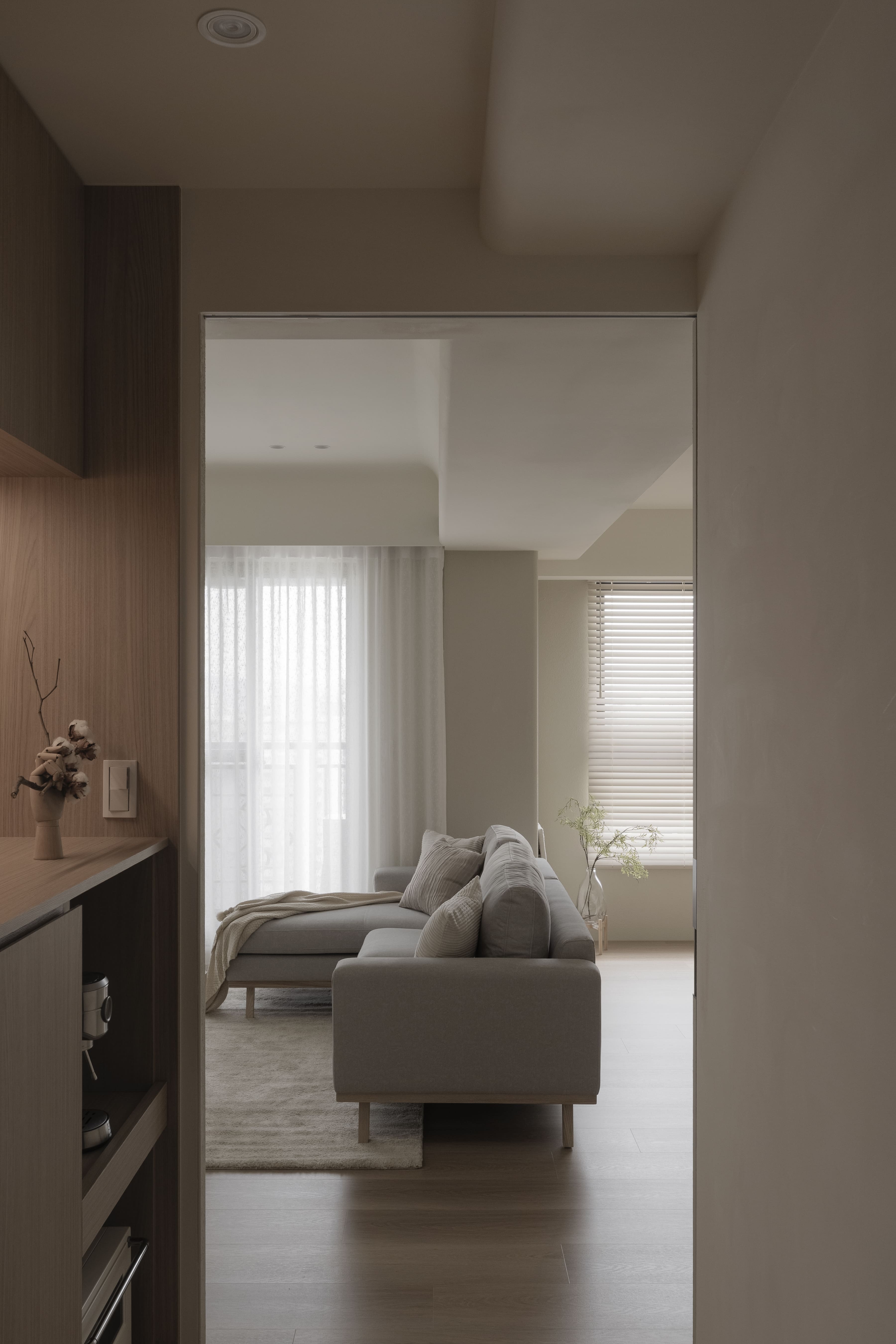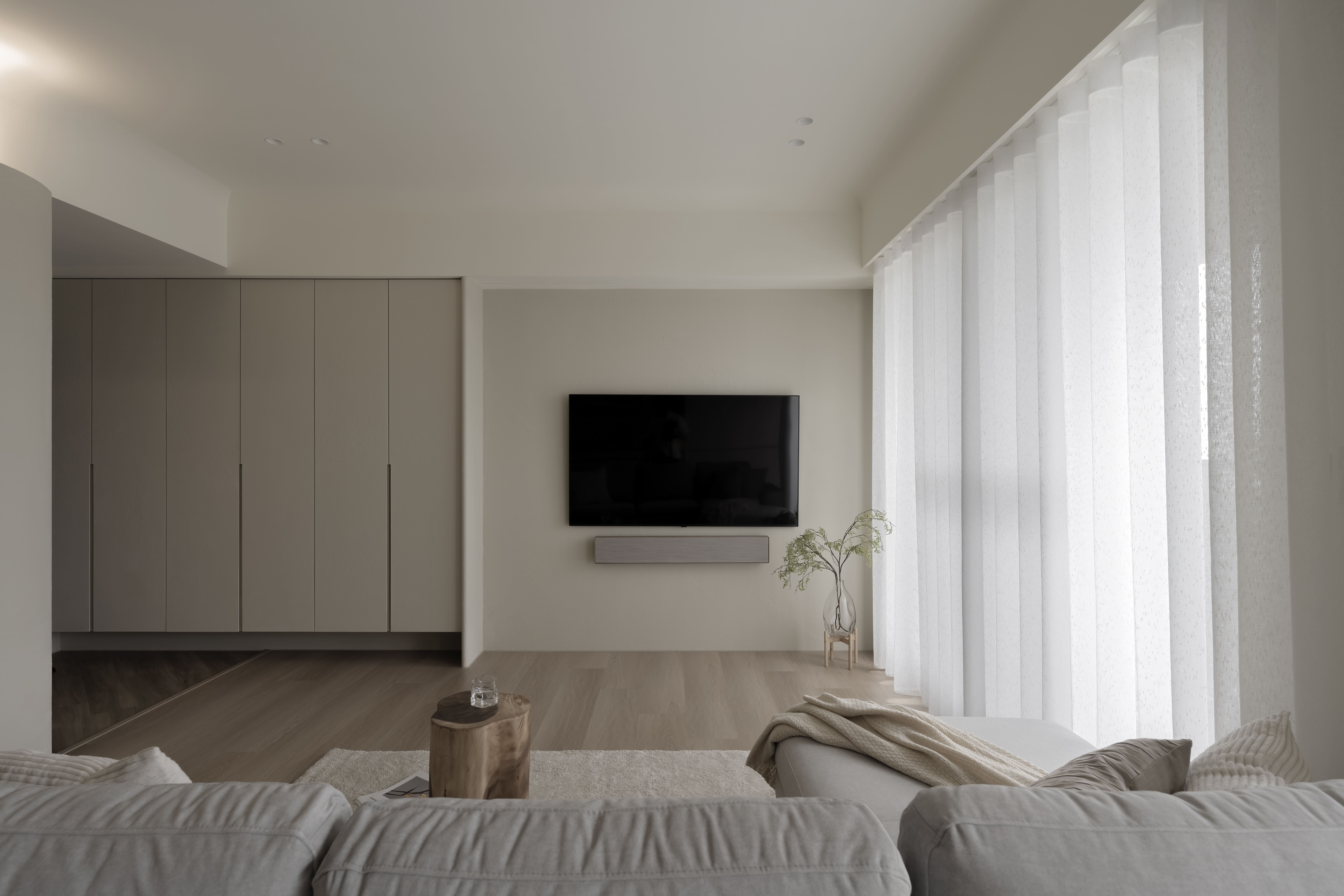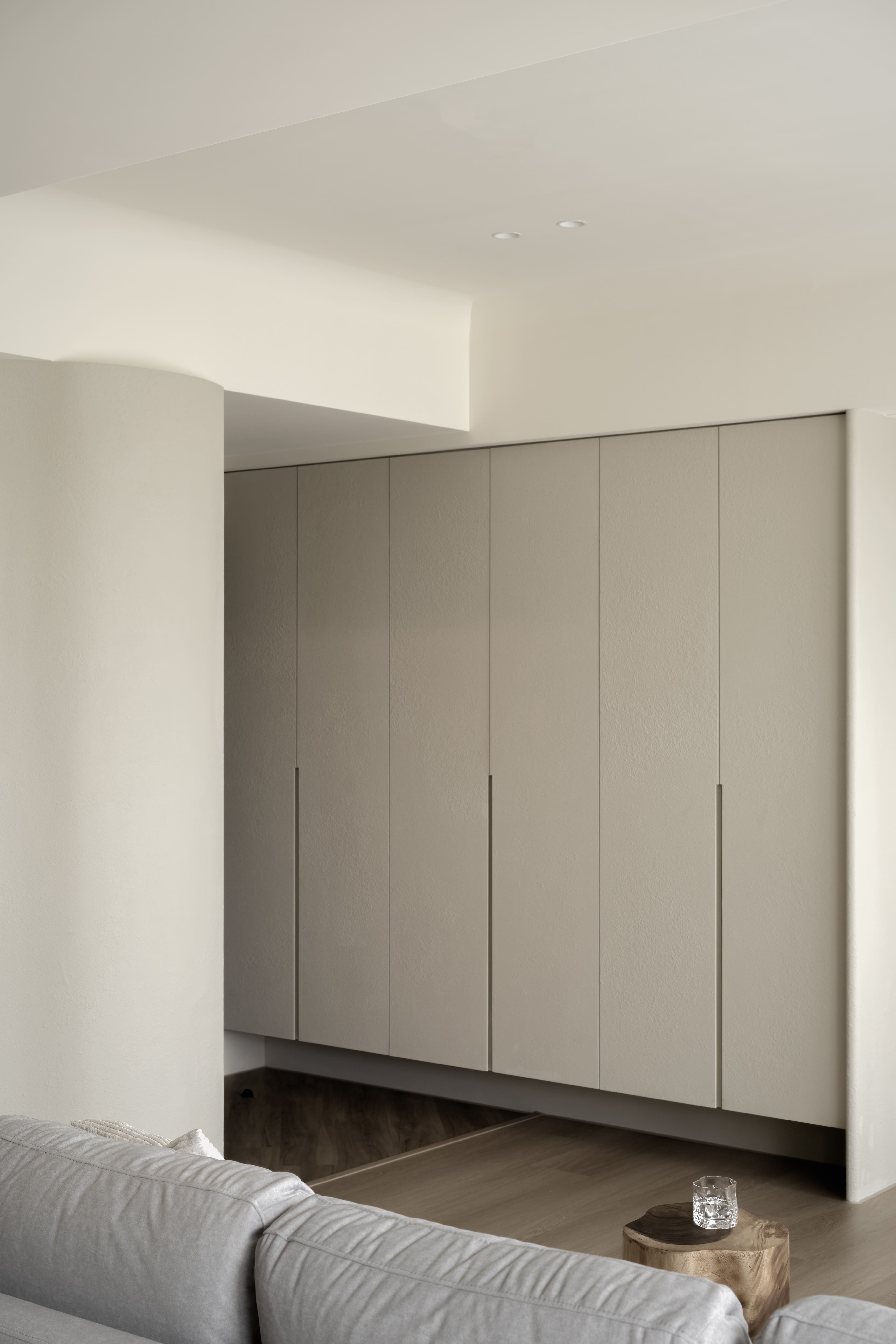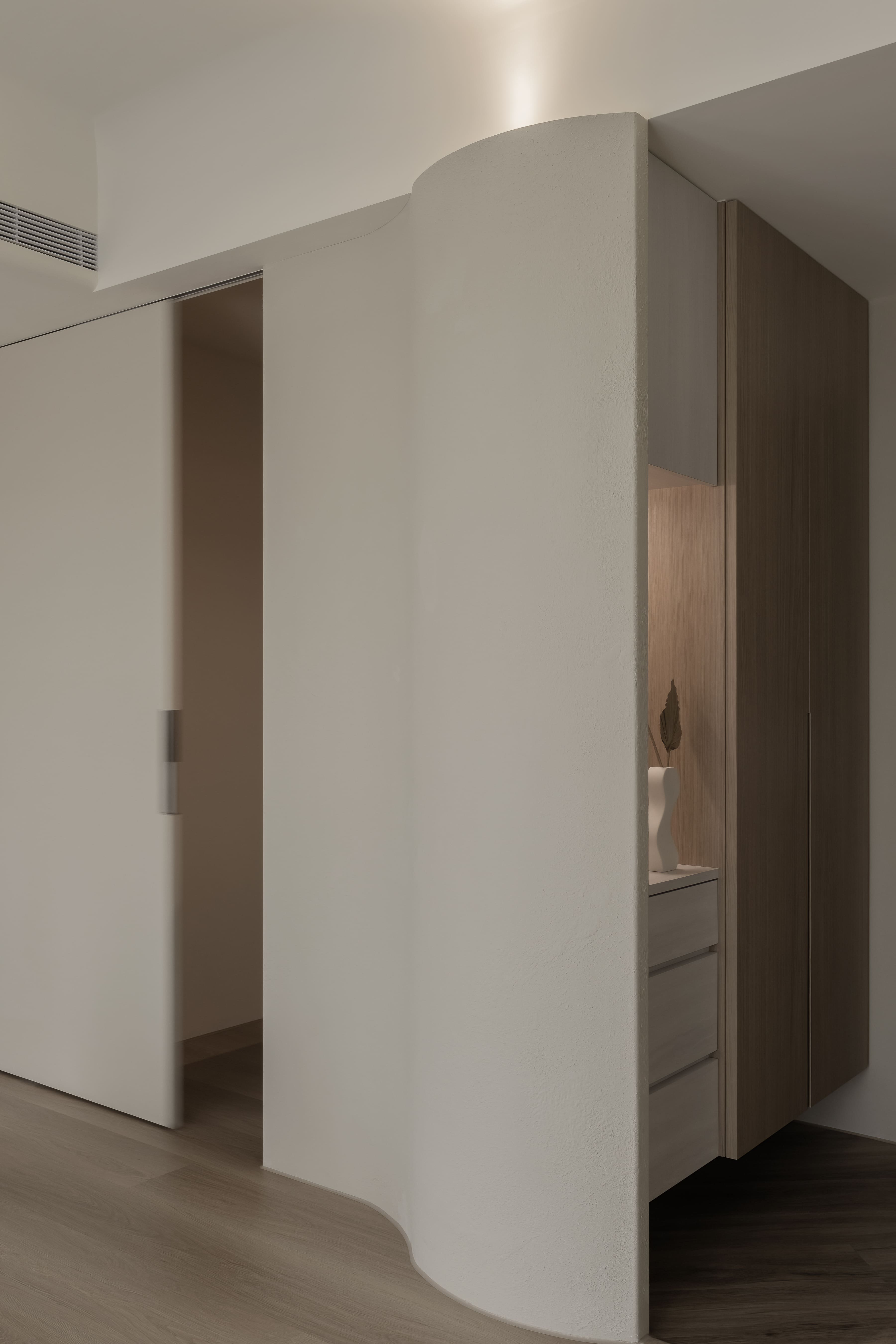 純粹的色彩,成為空間情感的深邃表達。原木色、白色與大地色系交織暈染,使地面、牆面與天花板更顯深邃。在這樣的空間互動中,人能感受到無限延伸的開闊與寧靜。空間多運用弧形元素,呈現更柔和的視覺質感,讓整體空間既溫暖又不失穩重。