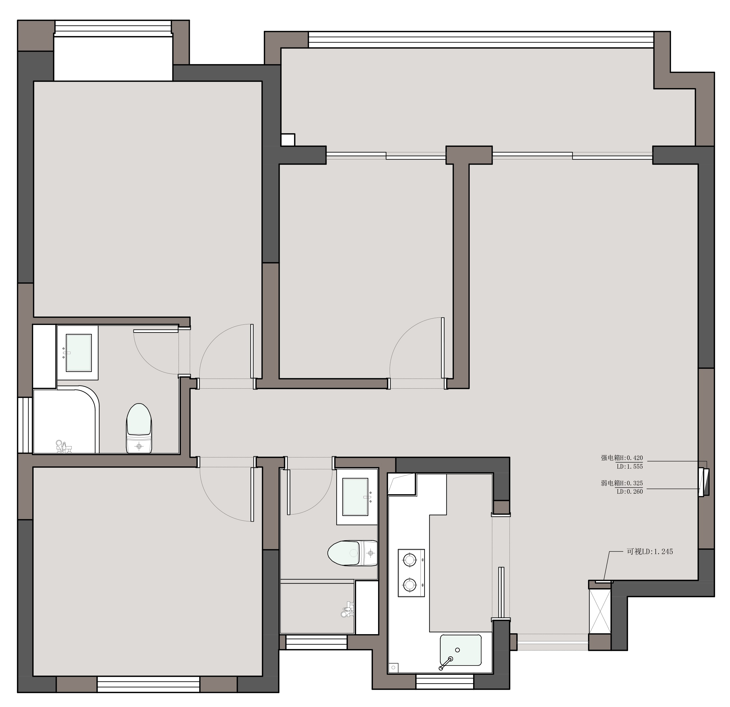 我们进行了如下优化: 1.与客厅相连的次卧拆除两侧墙体,与客厅相融,打造开放式书房; 2.阳台的移门拆除,与客厅融合,延伸客厅的休闲功能; 3.房门、门套、柜子、阳台地砖、地板及踢脚线都做拆除; 4.结合整体的设计、搭配及木作定制,进行窗帘、家具、灯具、软装配饰的空间搭配和落地执行。