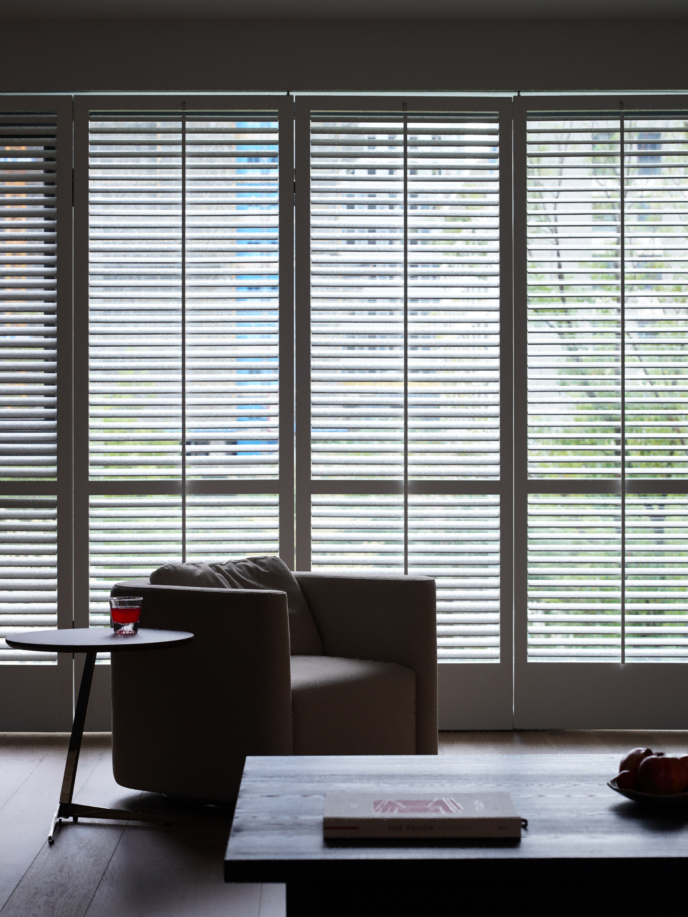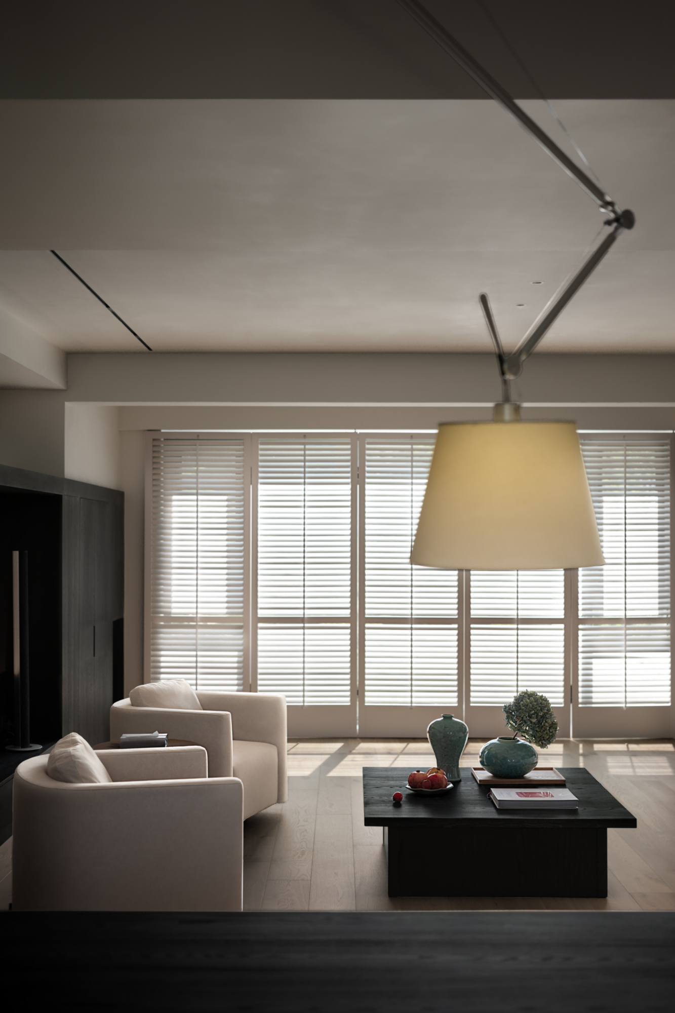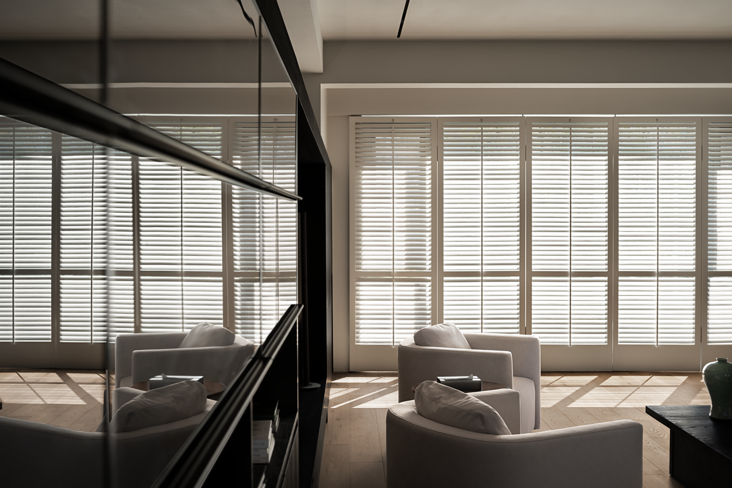 百叶窗控制了光线进入室内的氛围 增加私密性的同时,有很好的调节氛围的作用。