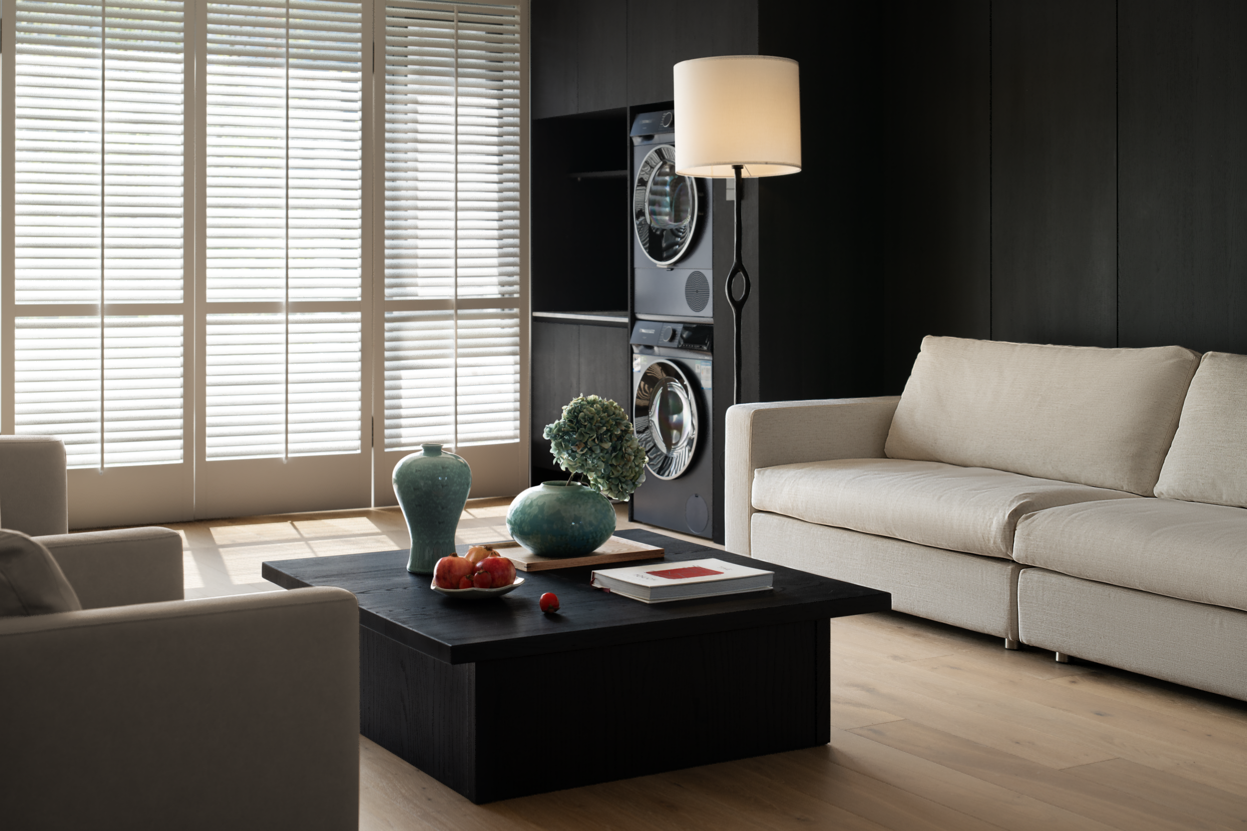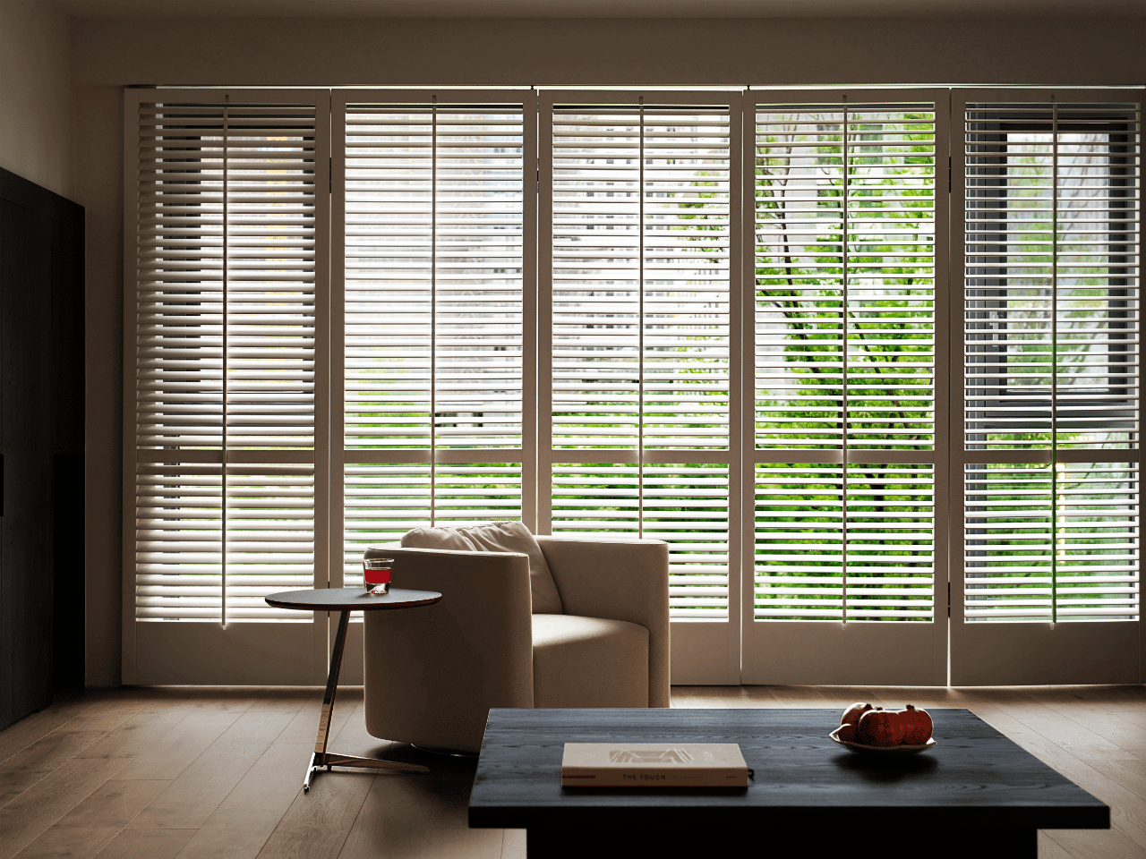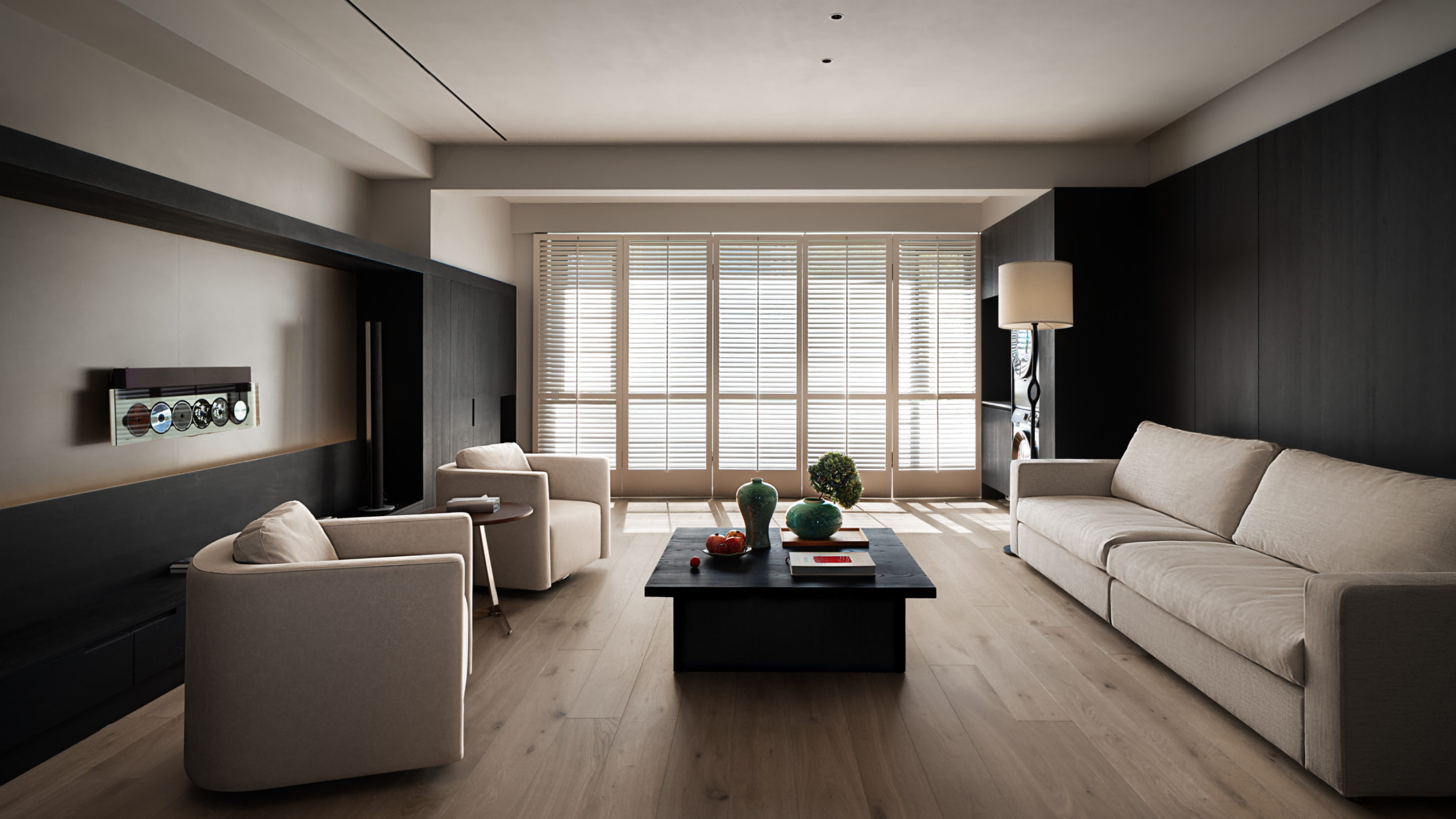 百叶窗控制了光线进入室内的氛围 增加私密性的同时,有很好的调节氛围的作用。