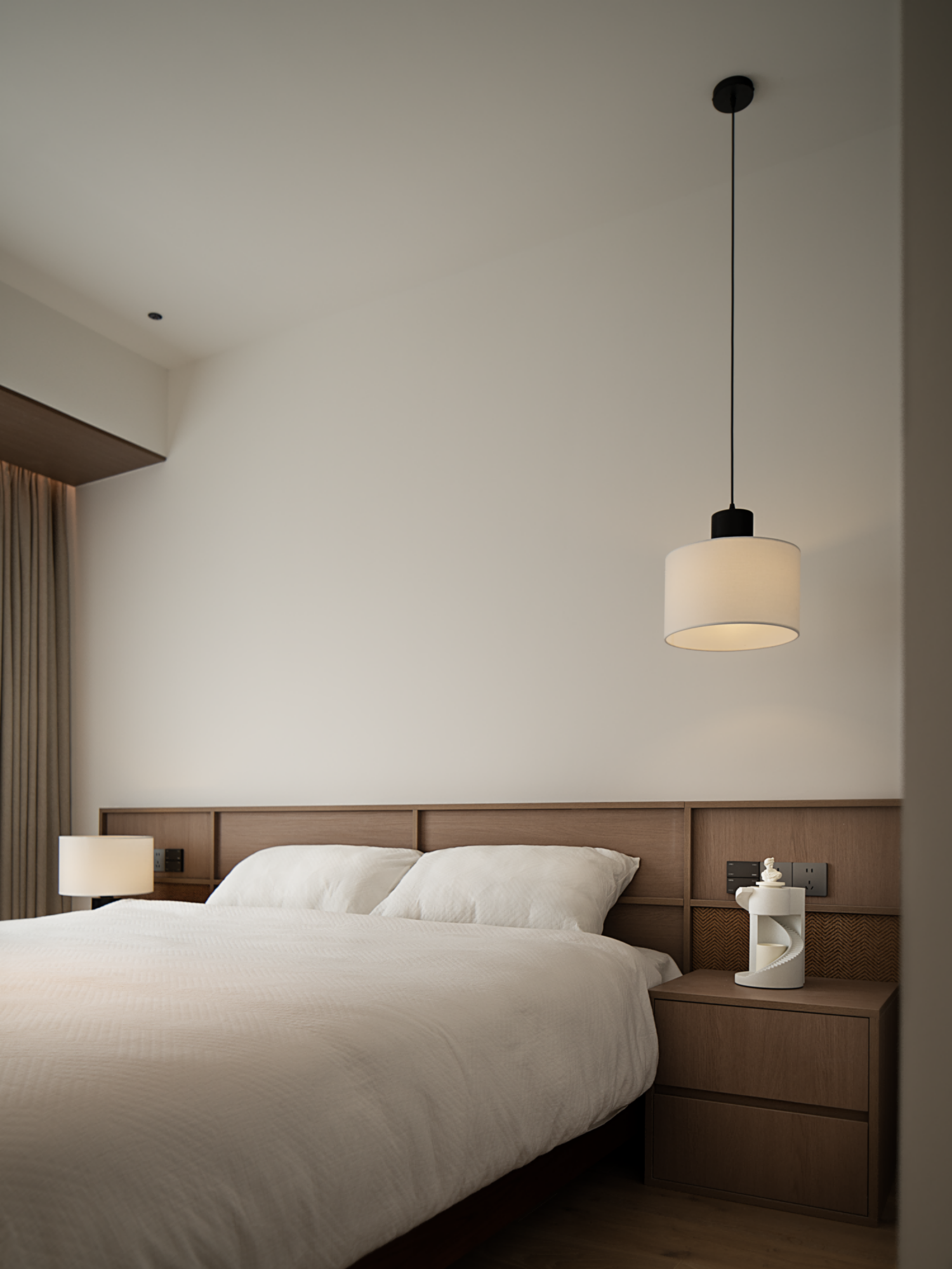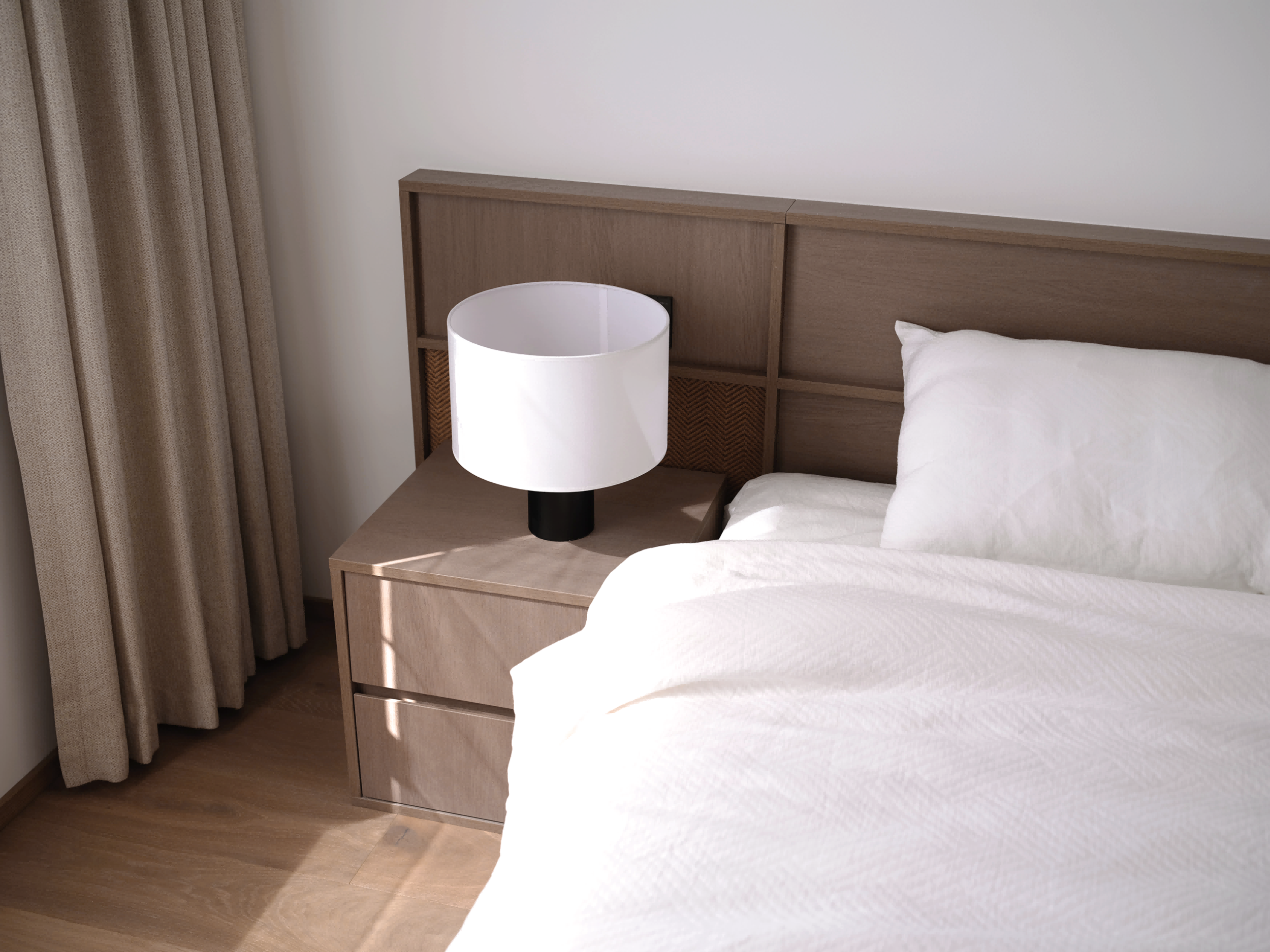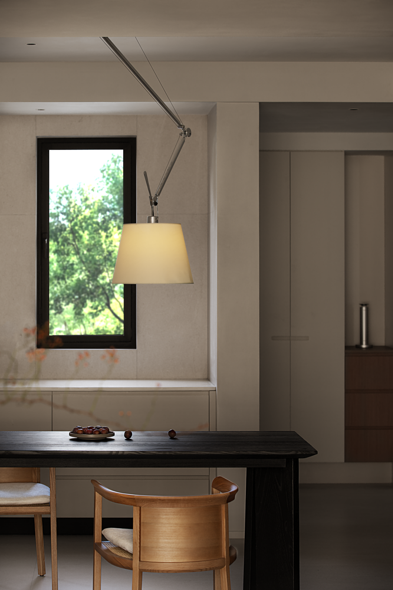 空间中大量用了复合实木地板,增加空间温润的质感,也实现光脚自由,席地而坐也不成问题。