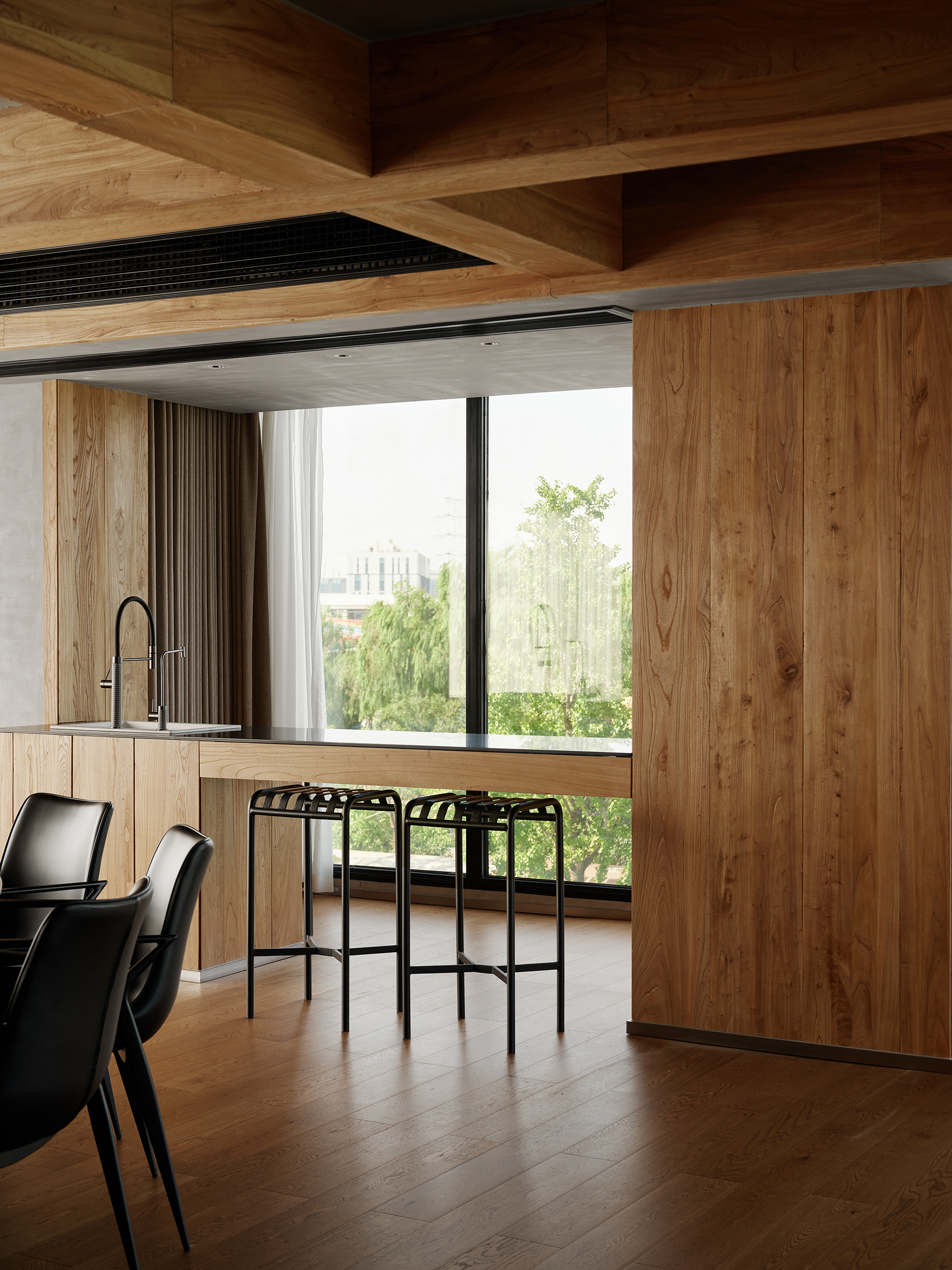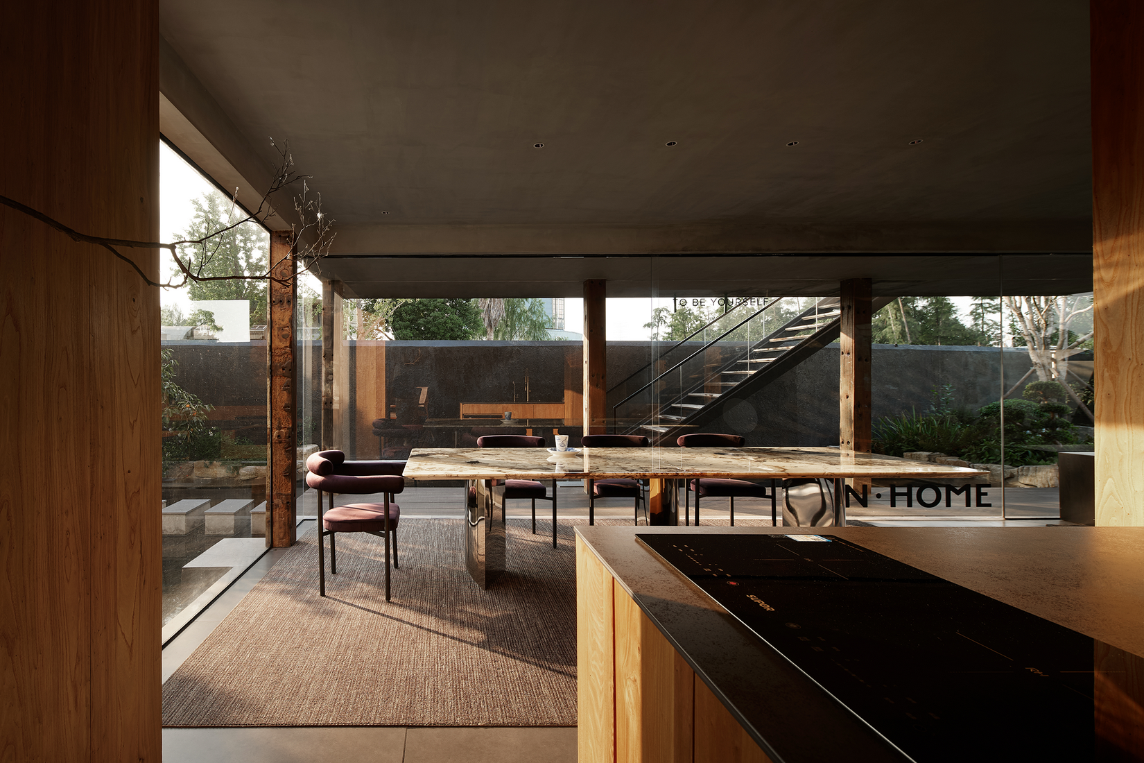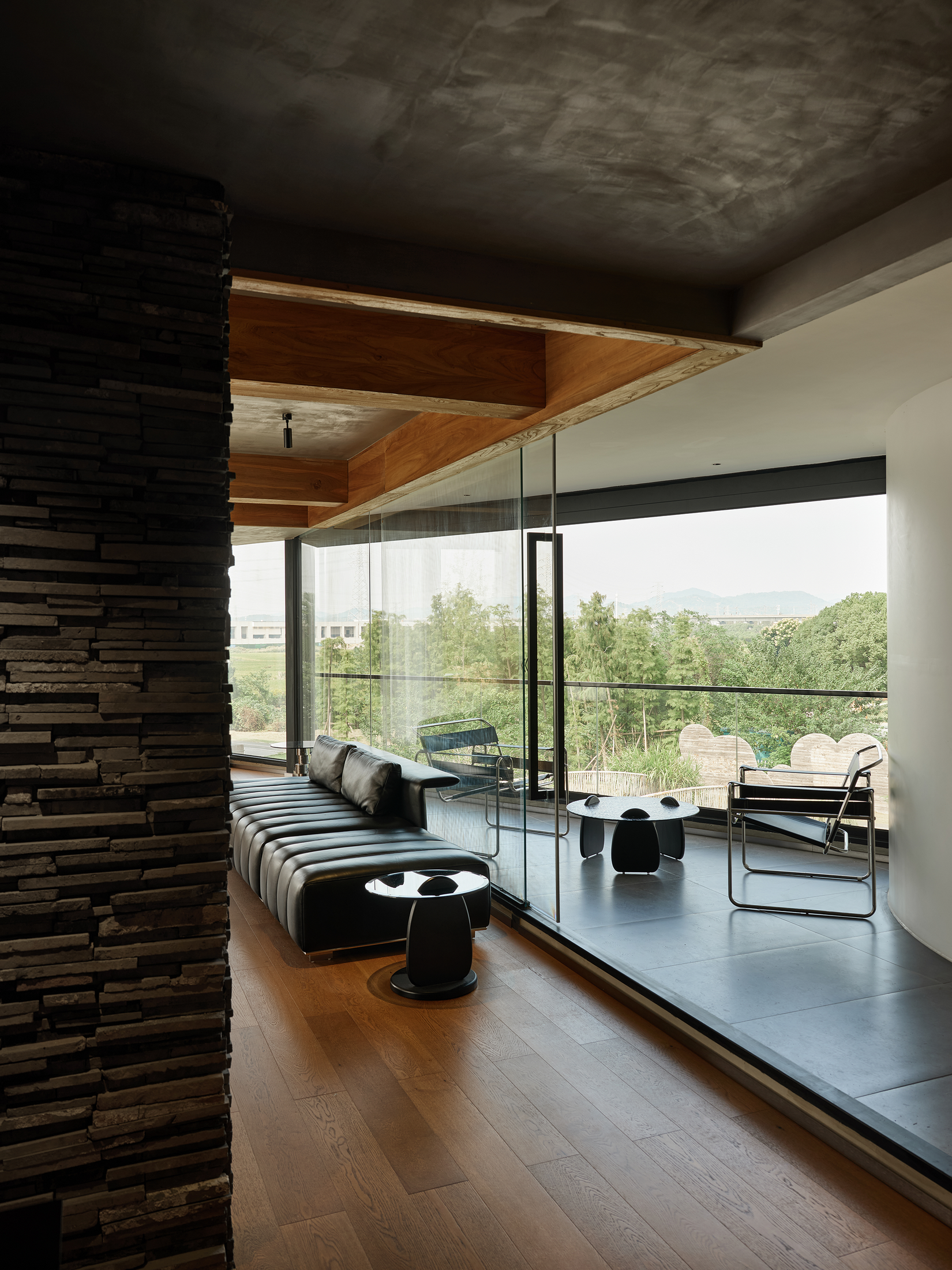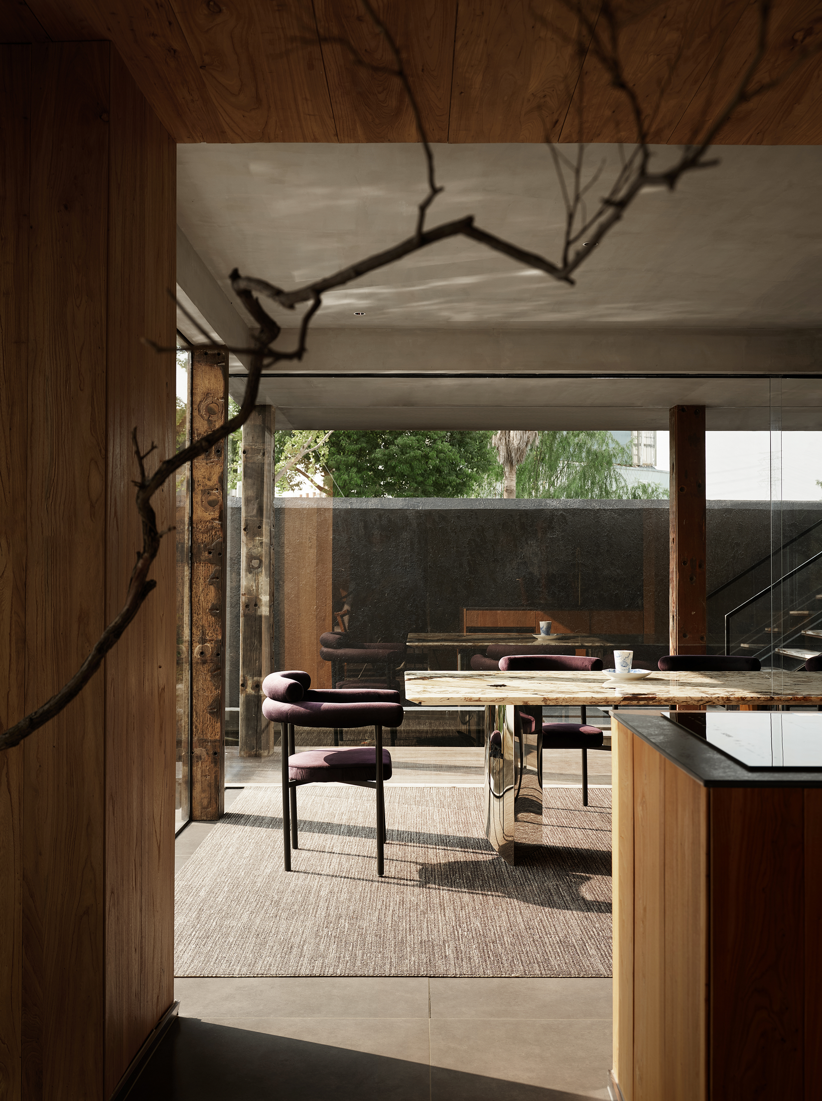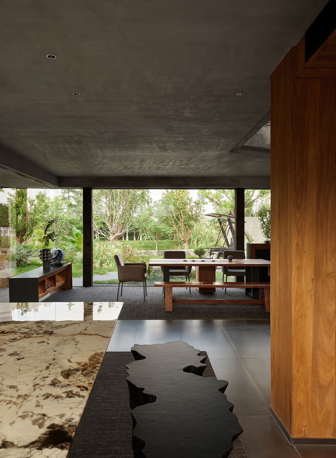 亲和力的自然材质结合户外花园的围合让空间显得更加平易近人,在使用中不会那么的不可触碰。 -