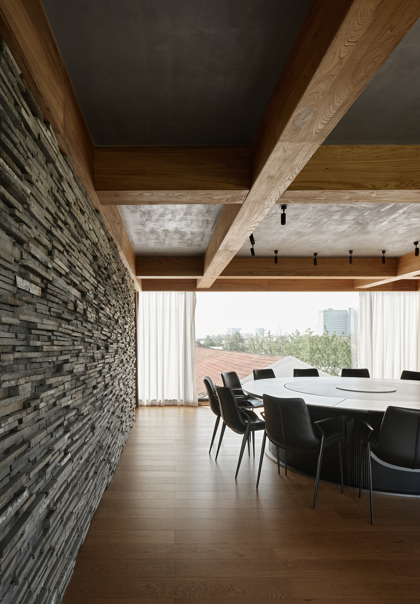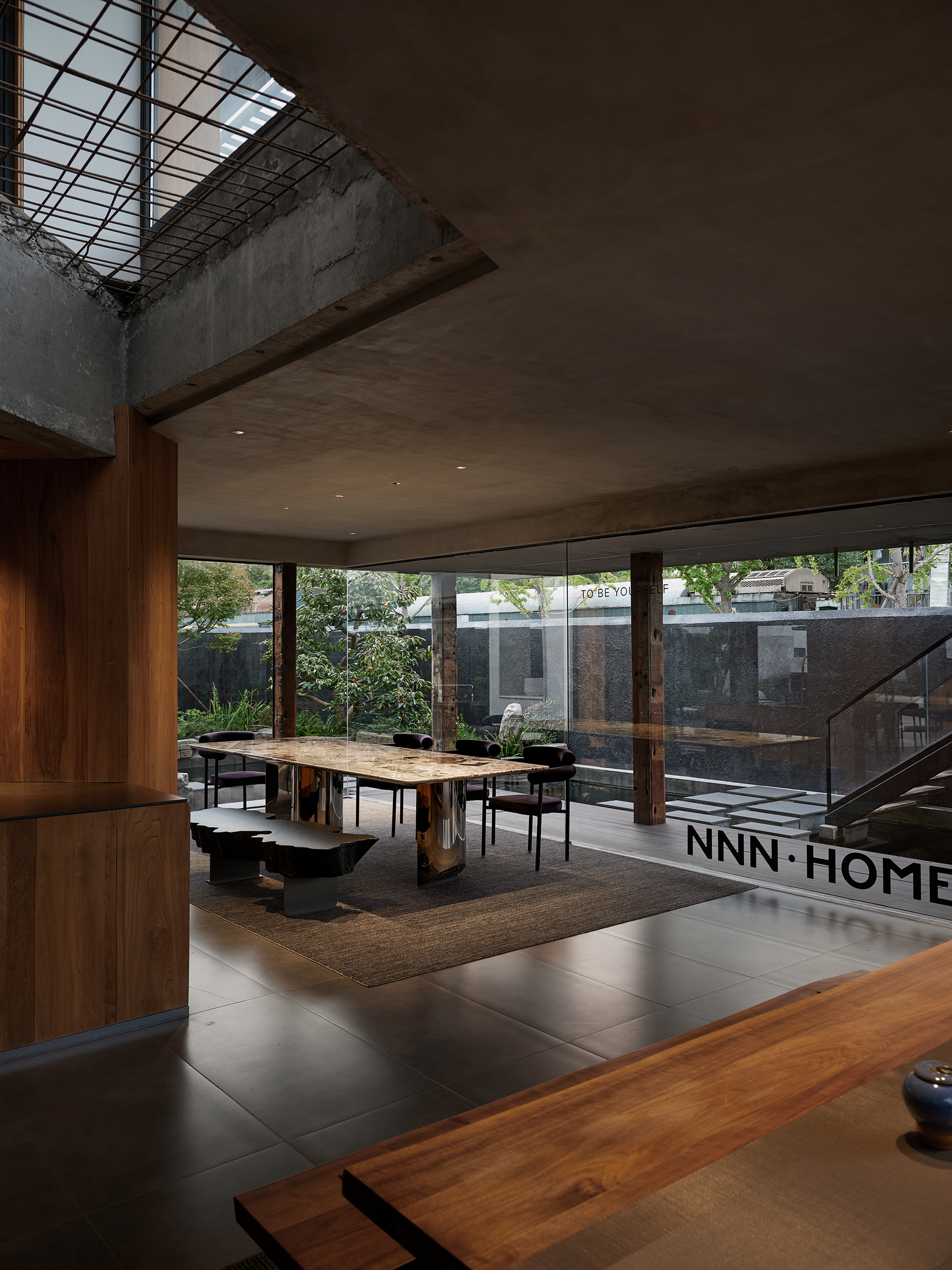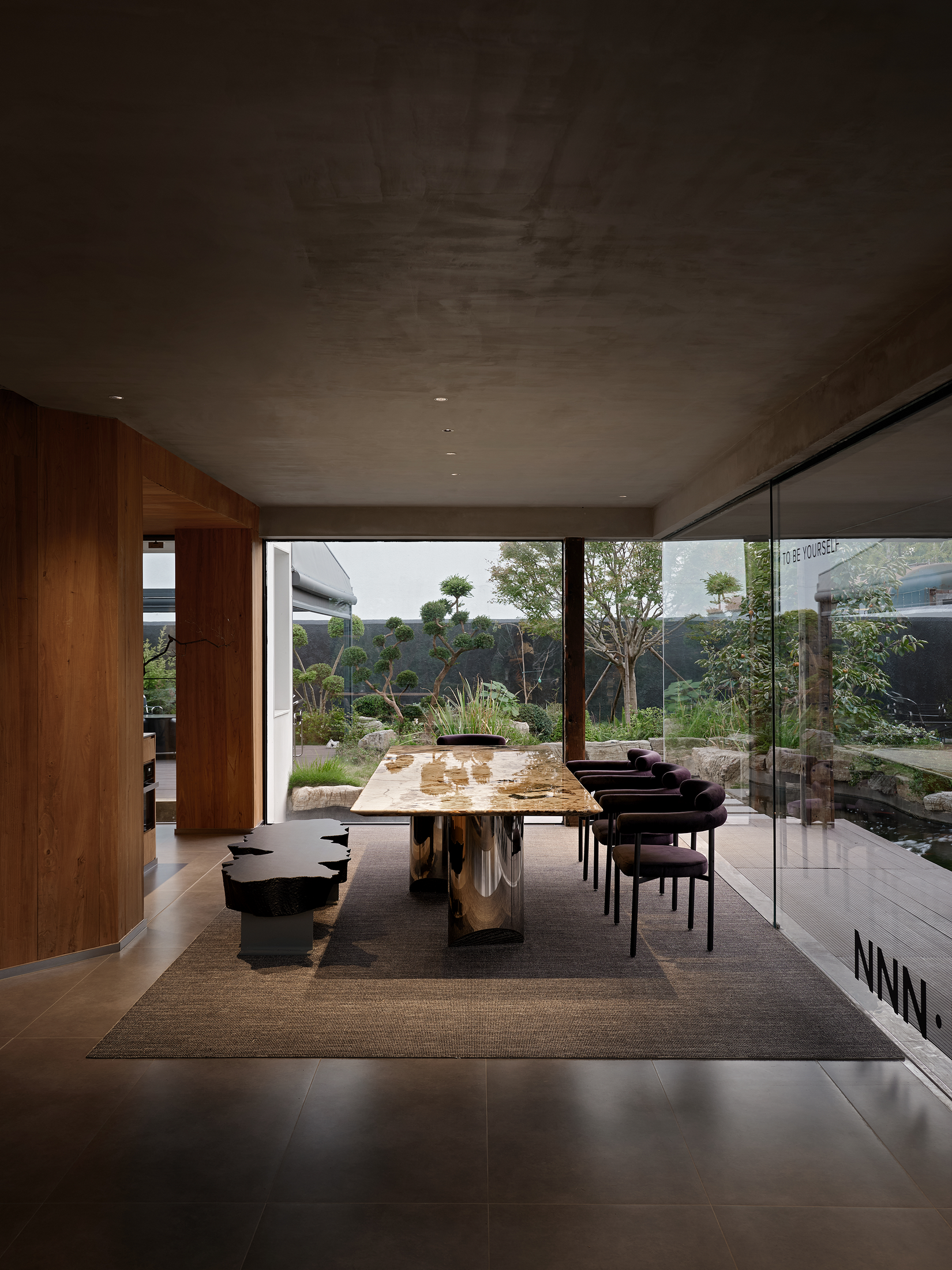 NNN会所建筑的改造与增建给开放空间的意境提供了一定的灵活性,微风肆意穿插于建筑与室内之间、光影随着时间的变动赋予