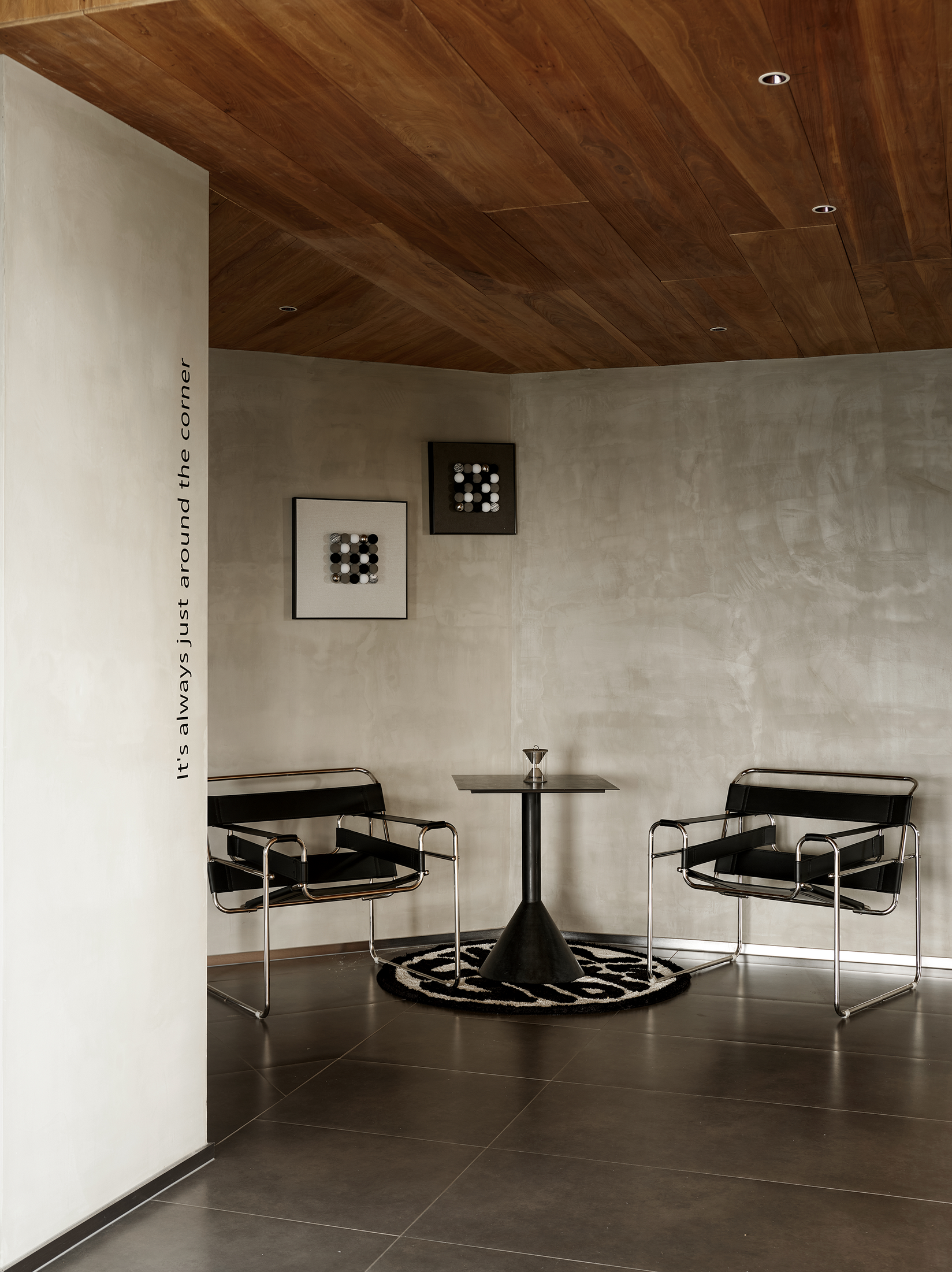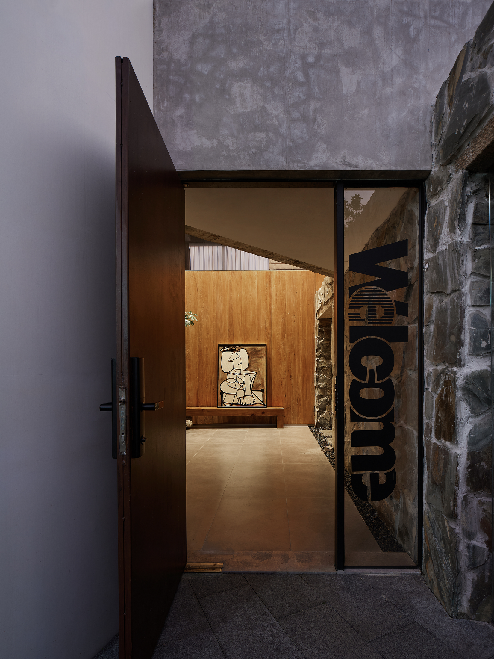 建筑与空间并非对立,建筑是空间的载体、空间是建筑的具体表现。空间中保留建筑原始物性,摈弃多余的物件,保留混泥土等