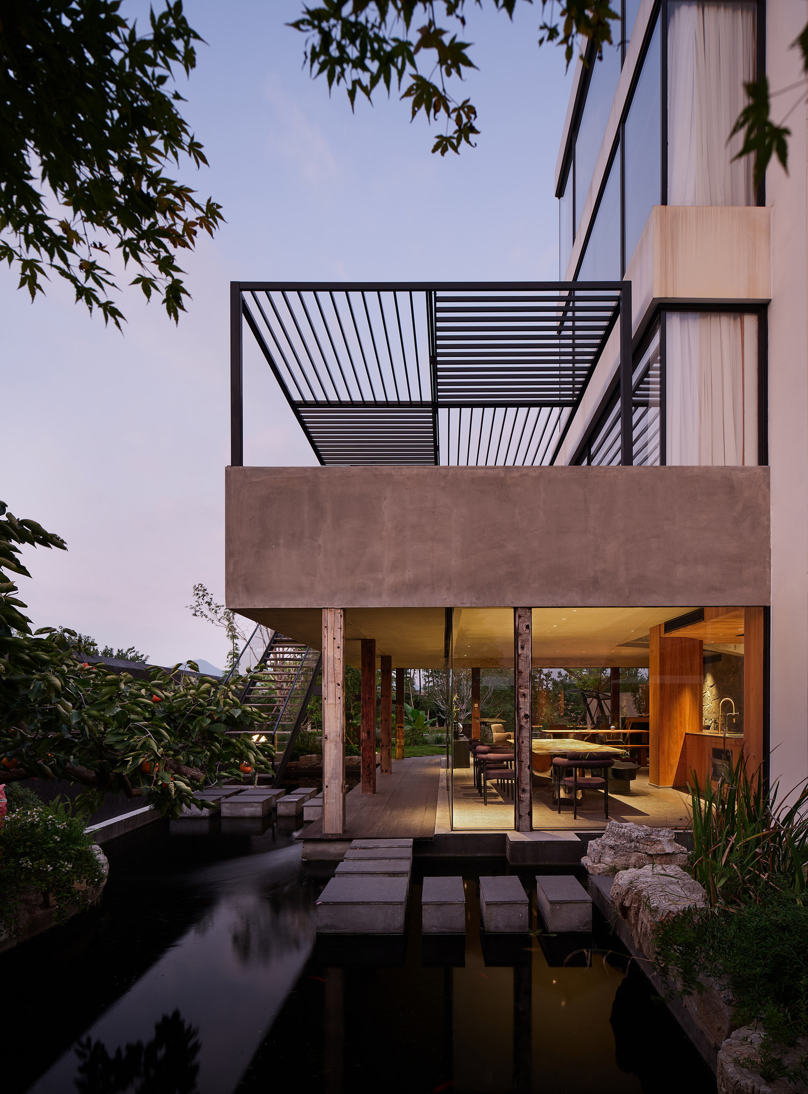 了空间活力,植物、水系的围合映射室内的每个角落。