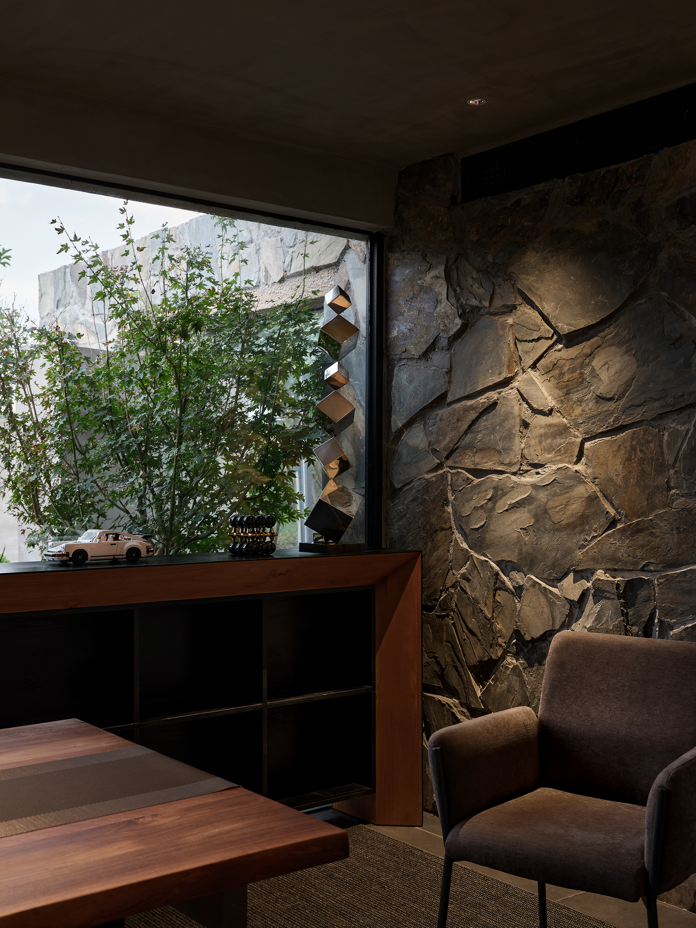 自然界中的石头、木材等元素以一种不带感情与激情的方式无序存在,当把它们以某种秩序赋予空间,就形成了某种精神,就有