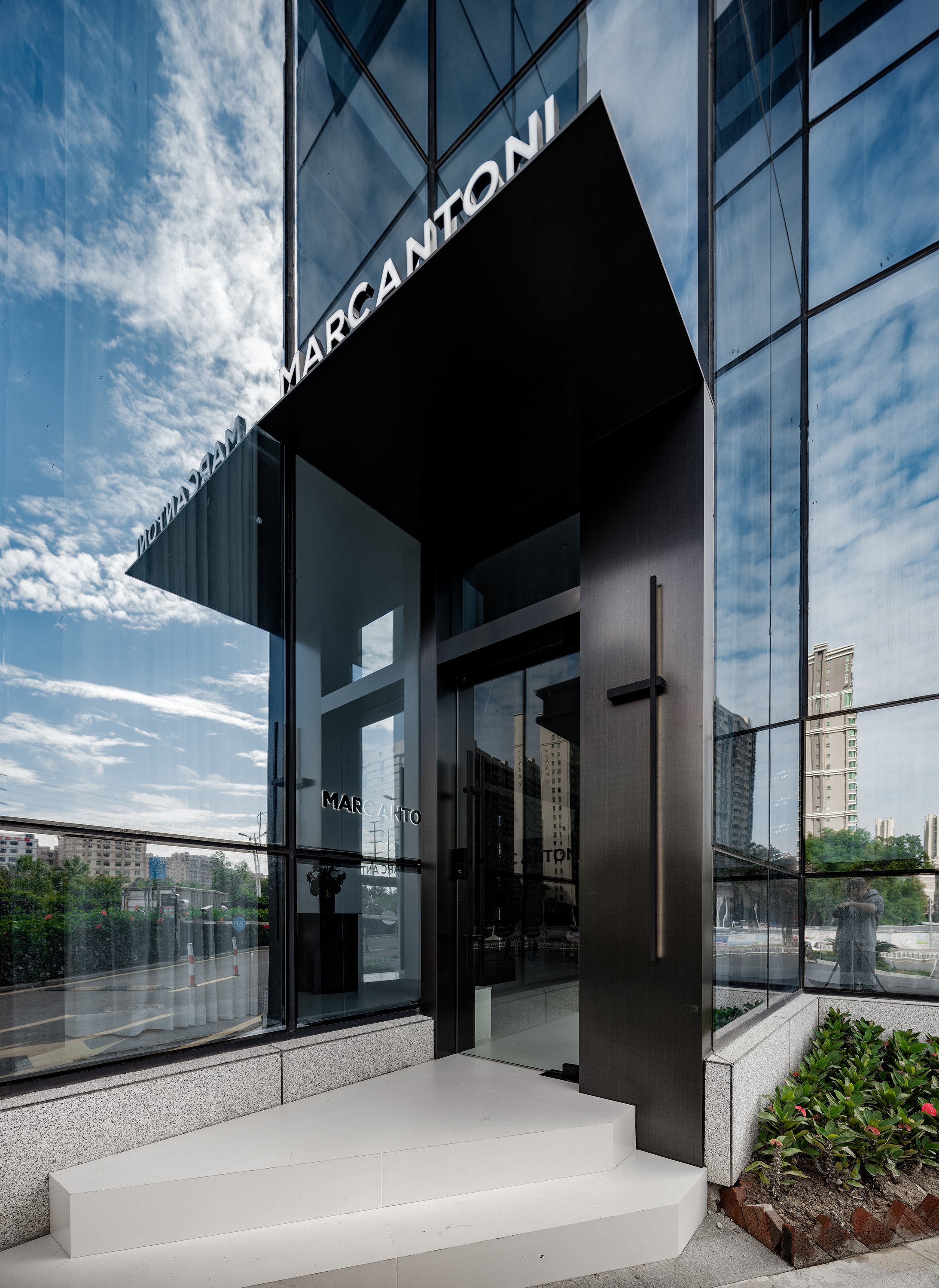 我们寻求建构之美,建构是一种技艺的运用,美感的呈现,然我们更应赋予功能之美。半隔墙配予LOGO让其衔接客休椅,化解入户的心理不适,更使之产生灰空间的仪式感。