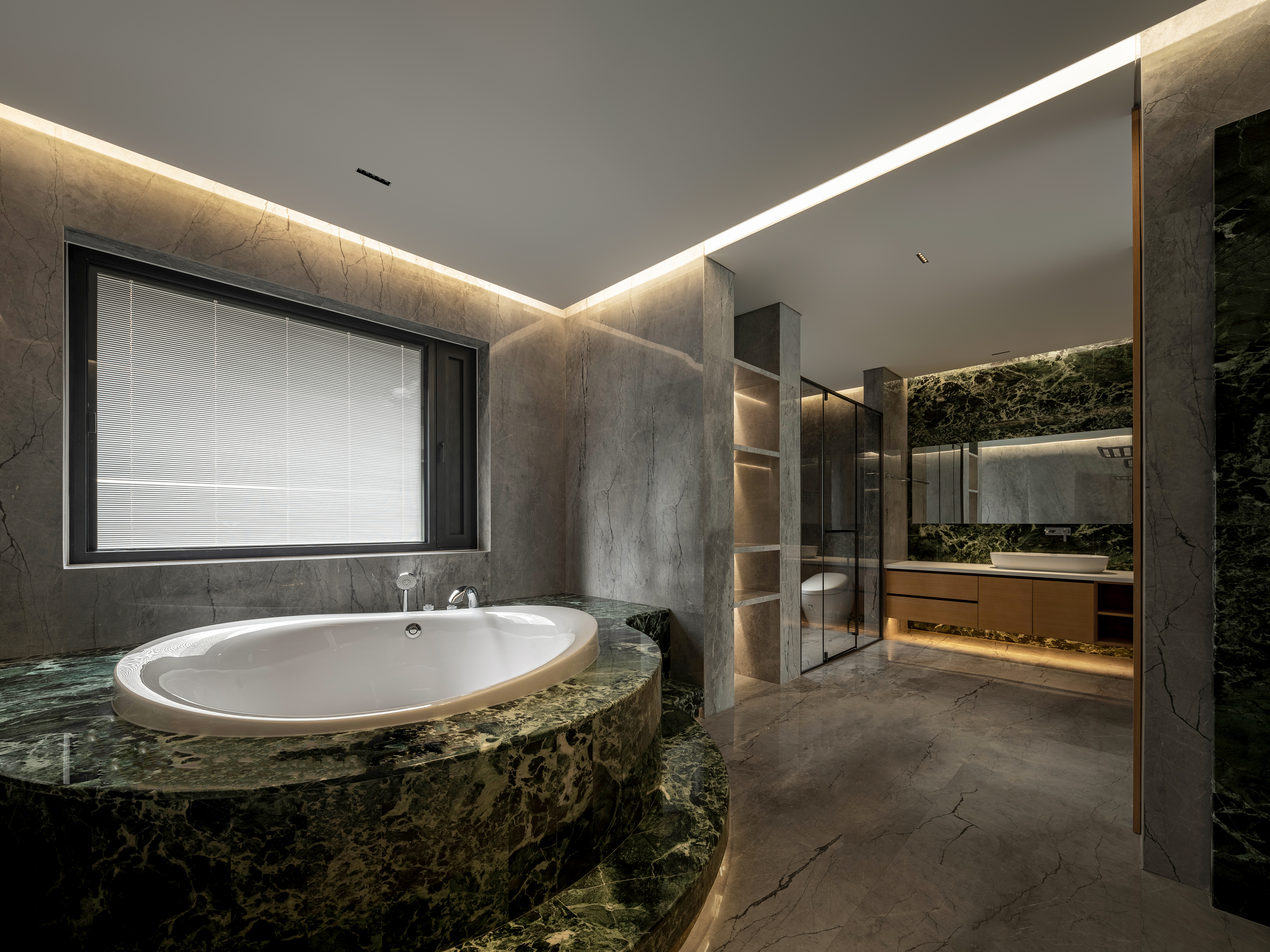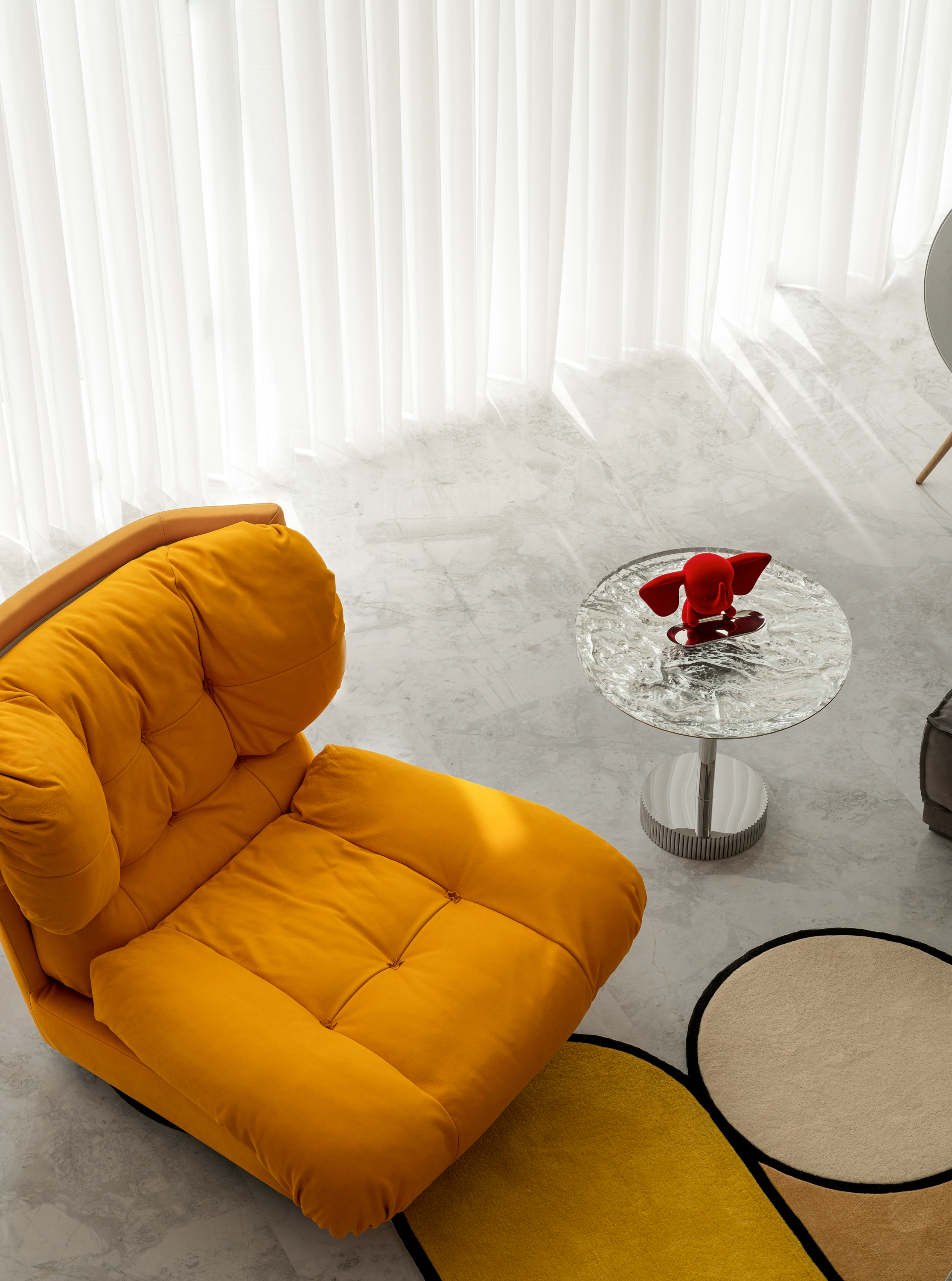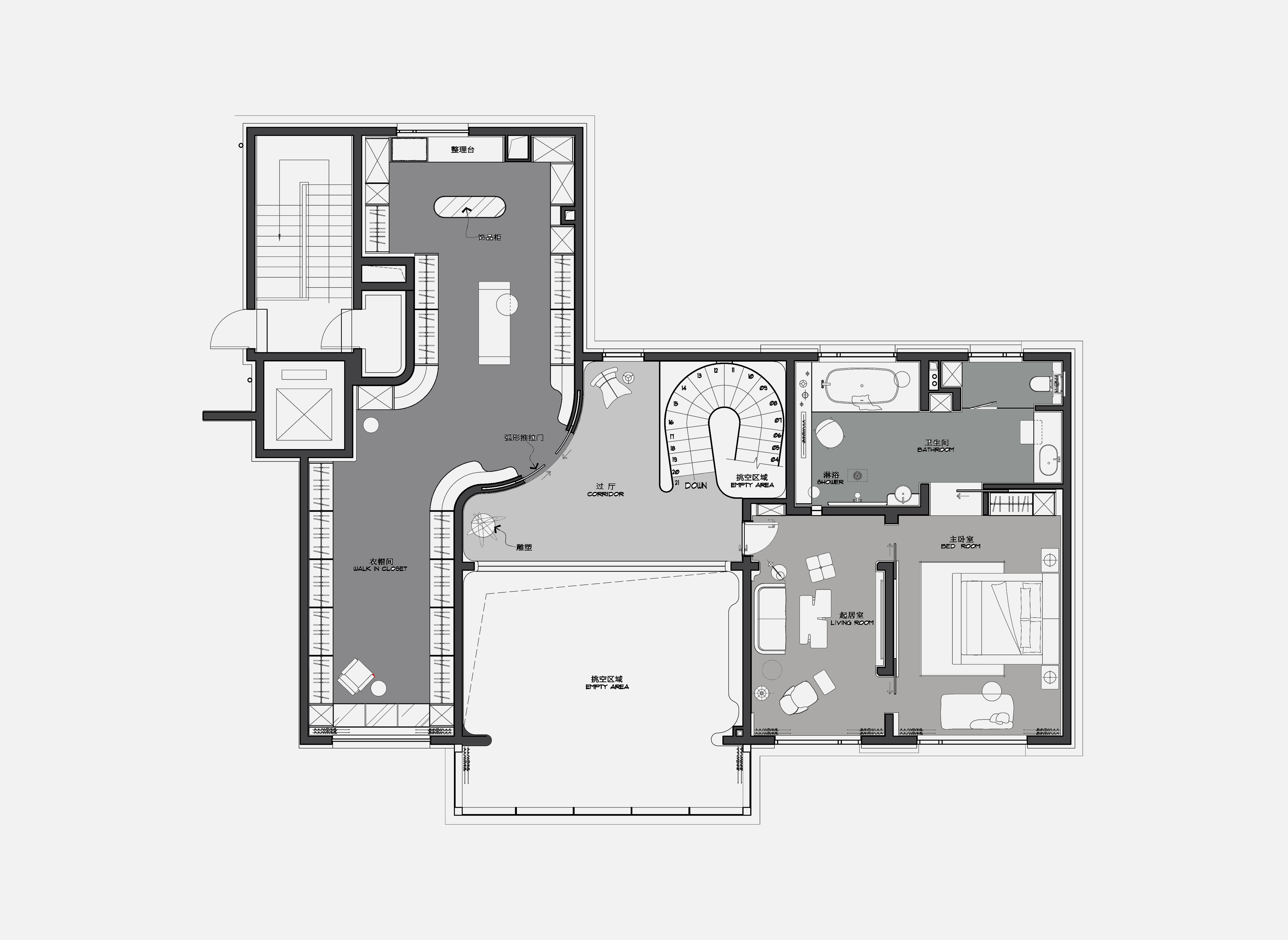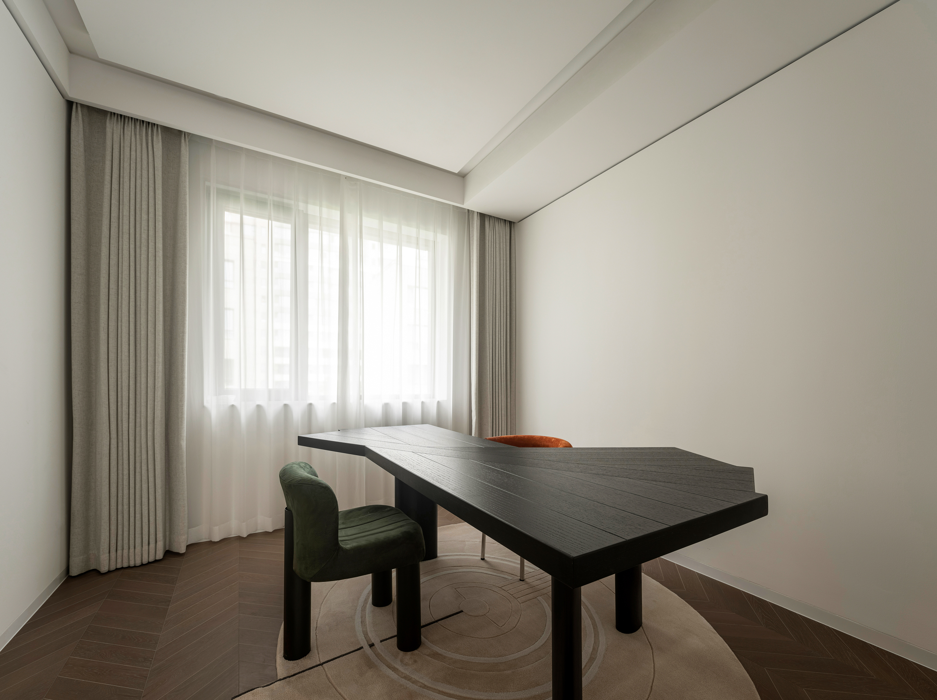 项目定位:顶跃大宅,临河而驻,得天独厚的开阔视野和景色豁然而至。力求达到人在空间中,以家观天下,静泊以致通达的开阔境界。“如何相得益彰地匹配这种极佳的户外持景,是设计的格局需要迎面正视的问题。”设计师王与说道。