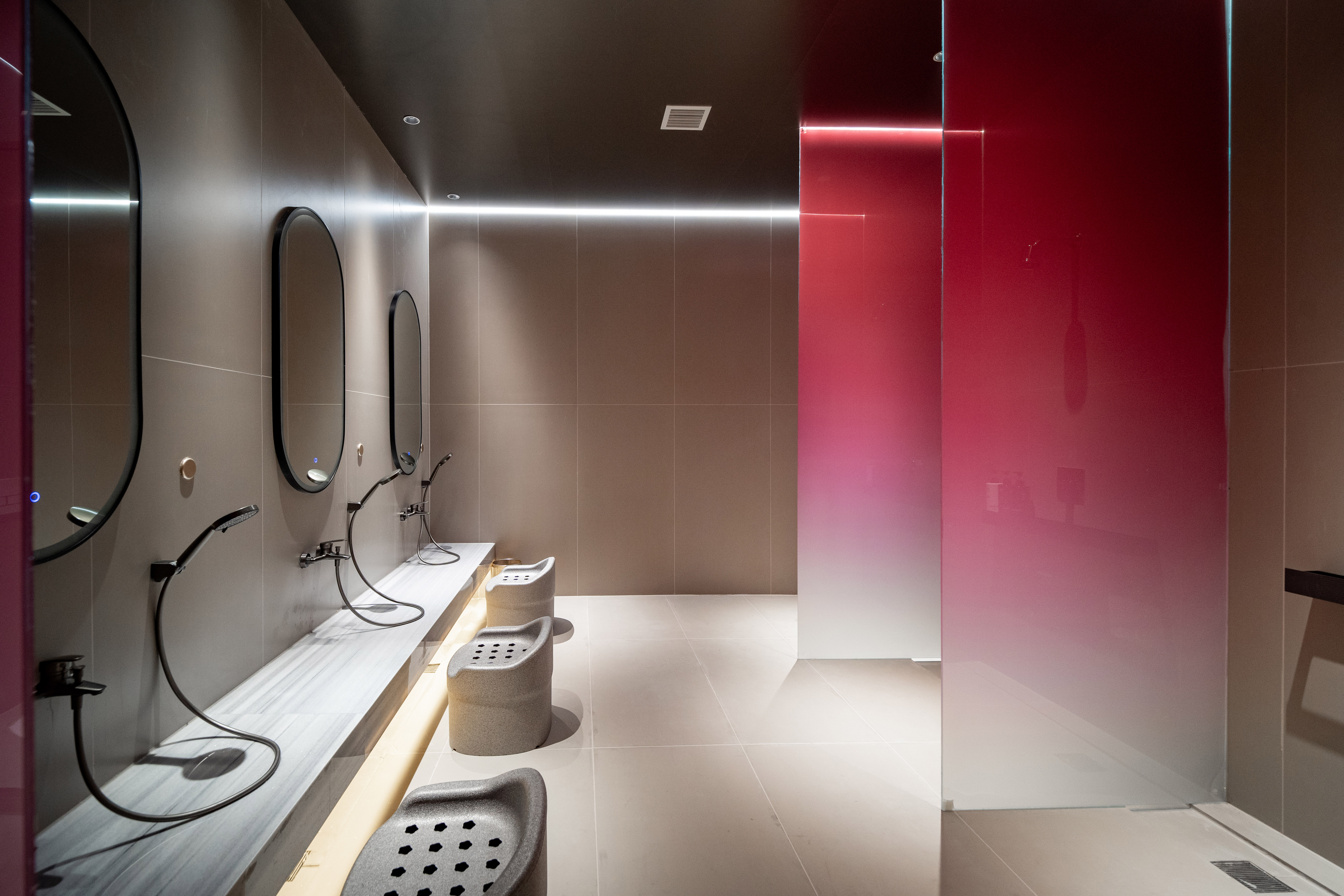 暖色的地面与清澈的水池相得益彰,让顾客们在享受水疗的同时感受到大自然的魅力,舒缓身心,放松心情。