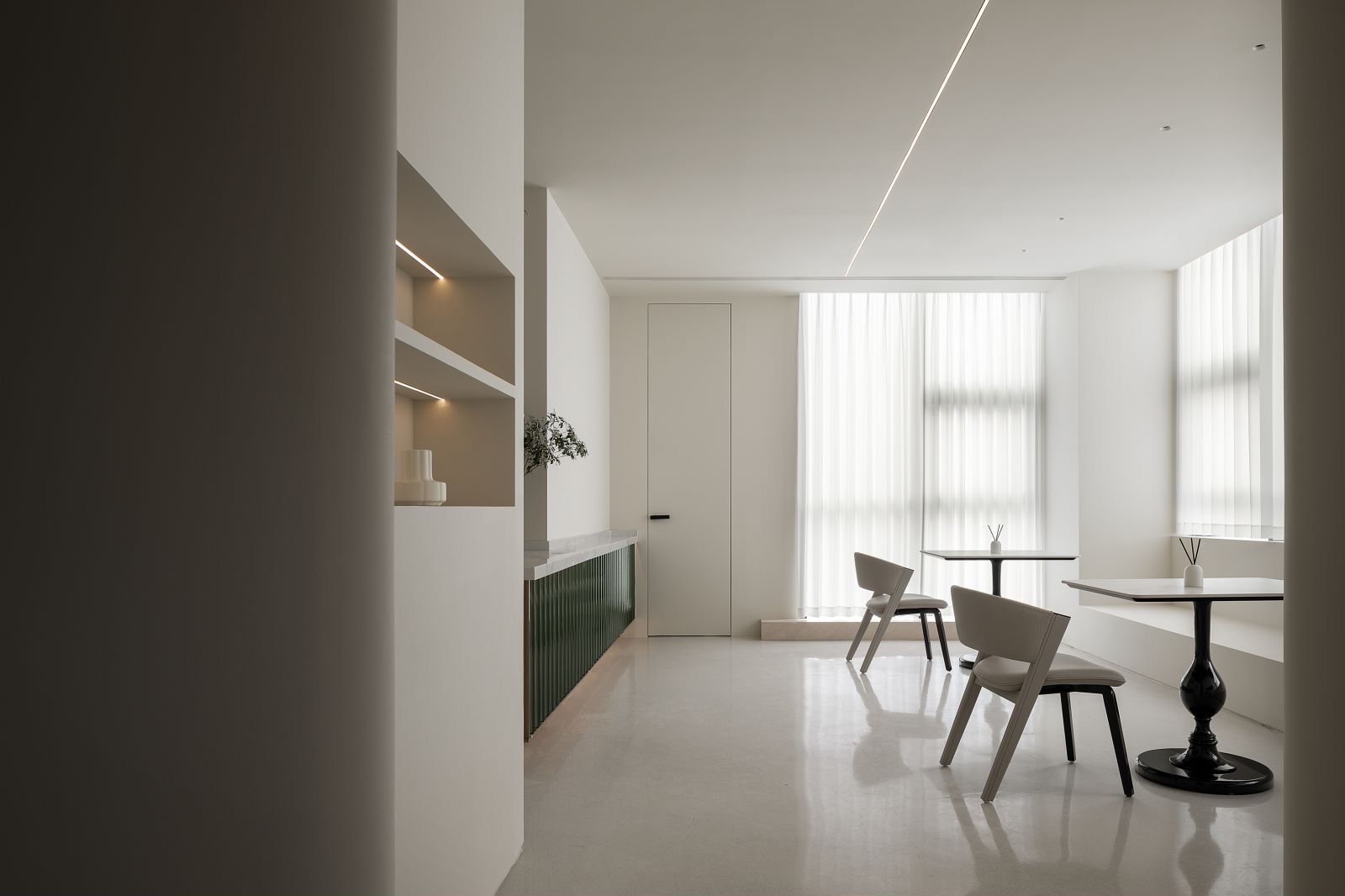 设计师留足咨询接待区,让空间发挥多功能作用,亦发挥主题社交功能,可根据不同的主题策划,承载不同的主题派对,水平的窗台未来也可联动友人的花店进行花艺展。