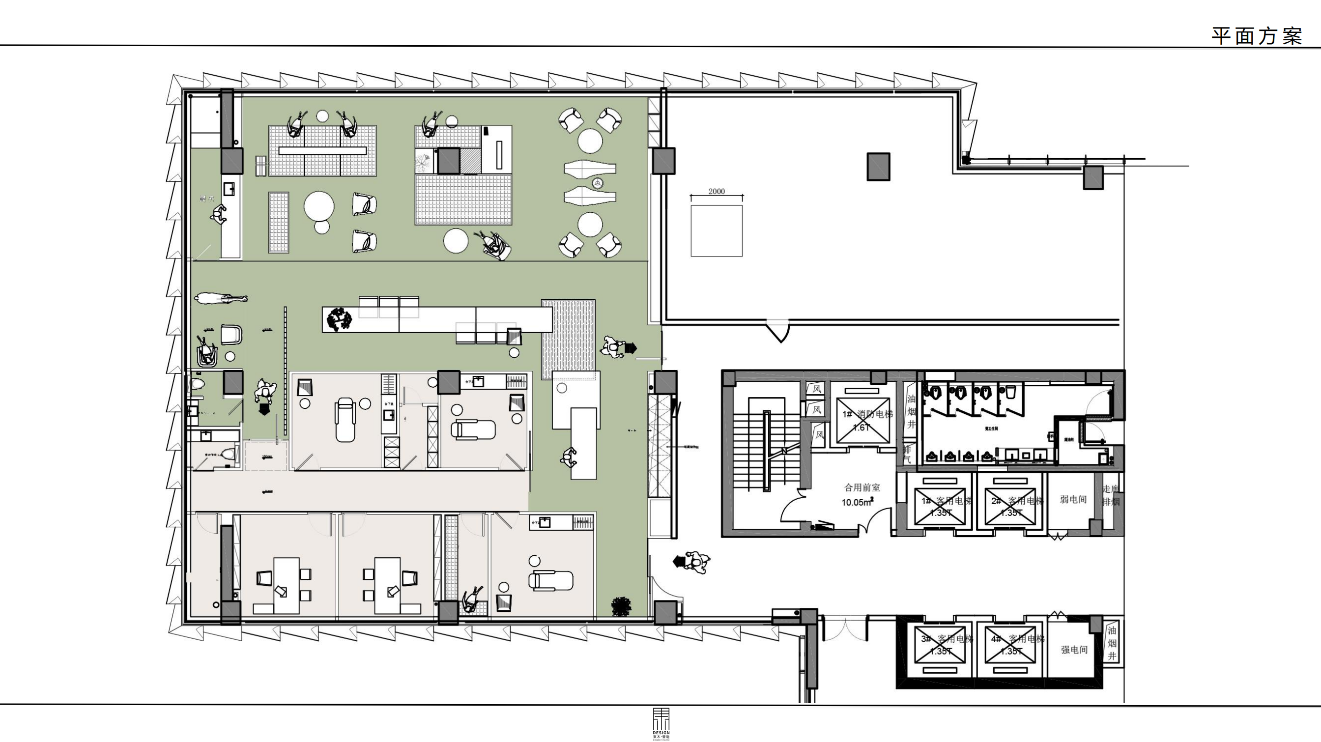设计的全案还原,将空间的软硬装有效结合,黑色在大片的白中比例点缀,行至靠内的空间,写字楼的幕墙采光充盈,因此设计师在软硬装的配色中大胆撞色,所有的家具在方案之初原创,再定制落地,因此从家具软装的质感和尺度上都“为所欲为”,大尺寸的沙发满足空间主营的多种活动方式,柔和的布料是细腻的关怀。