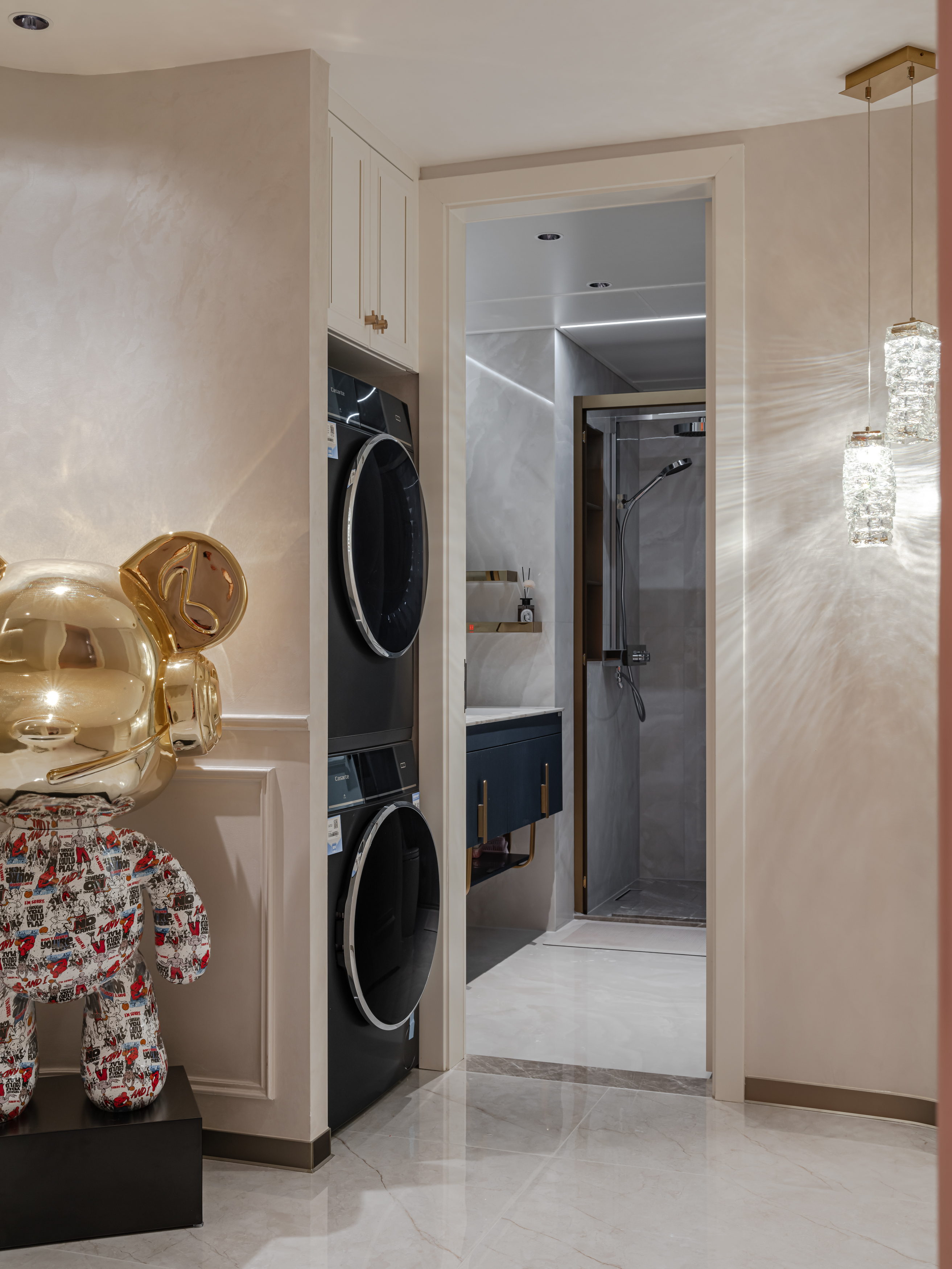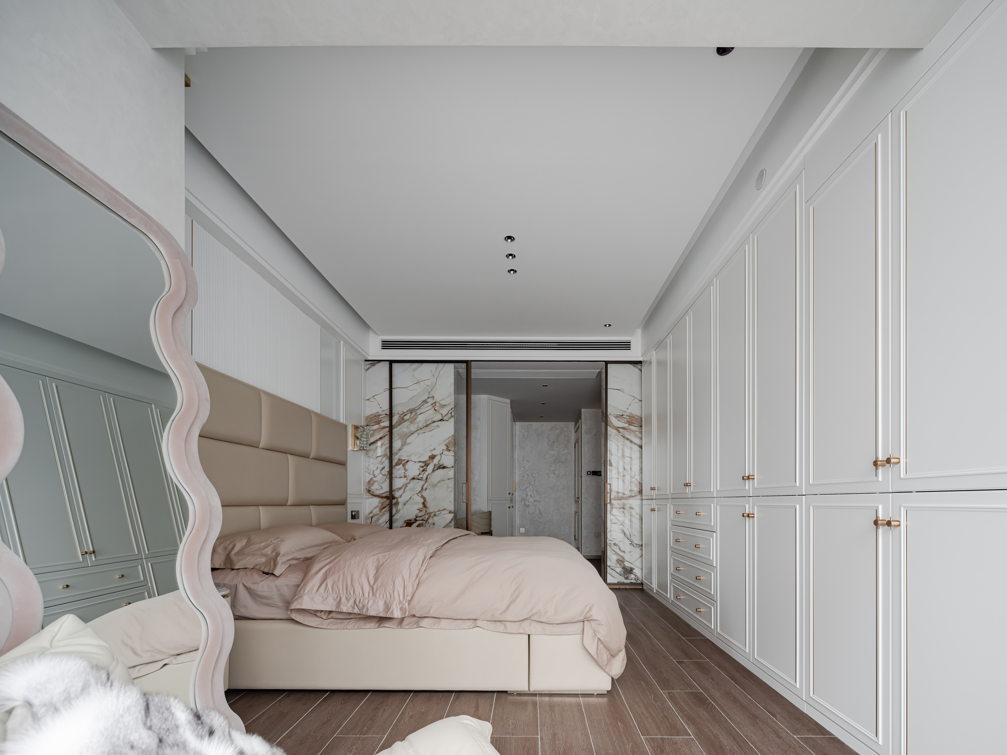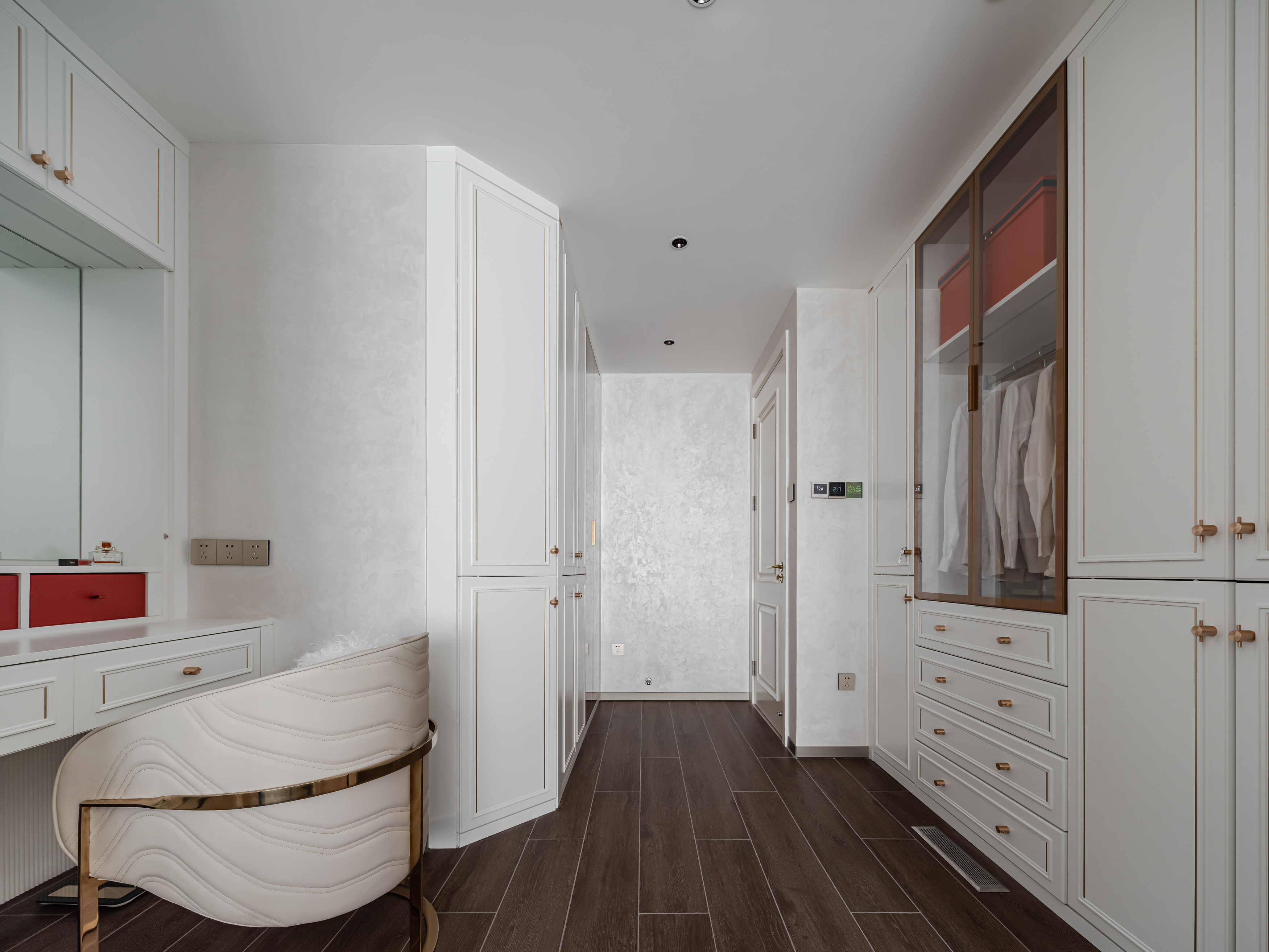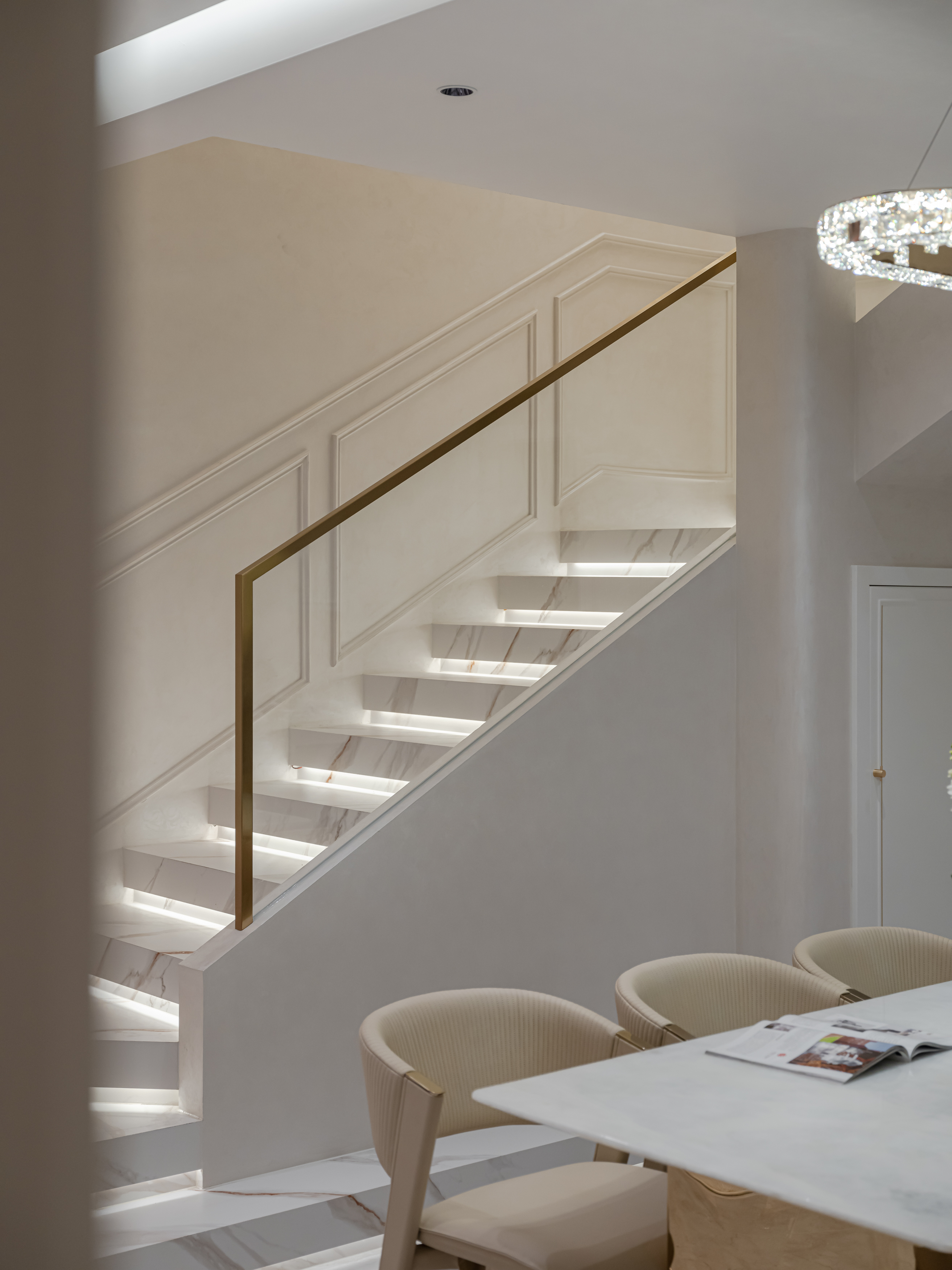 屋主人是一对经商的夫妇,有一个可爱的女儿。从刚一开始,两位就提出居家设计希望能尽显空间宽敞与大气,同时能具备一些仪式感,满足经常要在家里款待客人的需求。设计师在了解此愿景后,结合对房屋以及环境条件的详细研究,决定将空间打造成为一个「明亮轻奢」中尽显温柔的华丽之家。