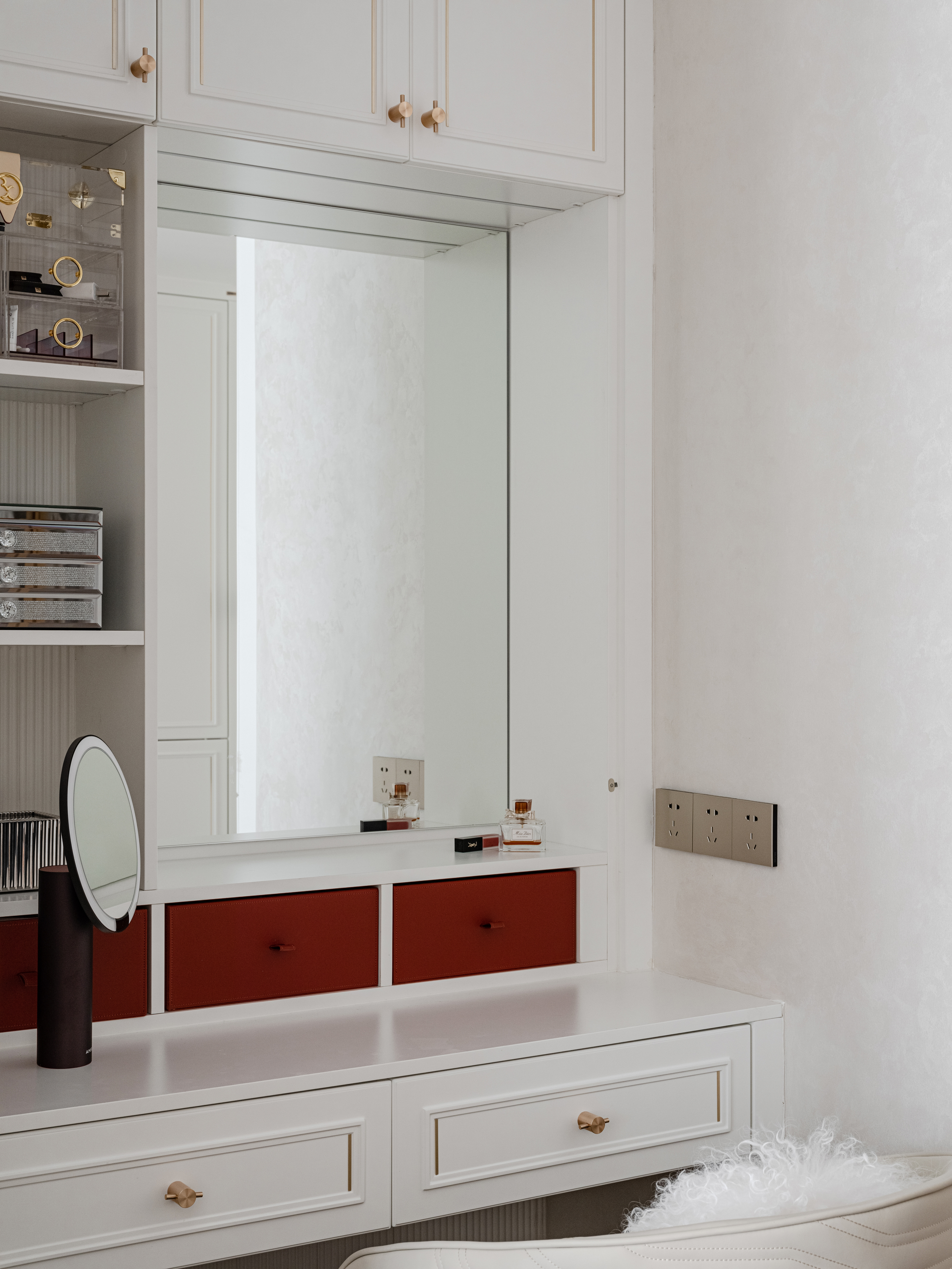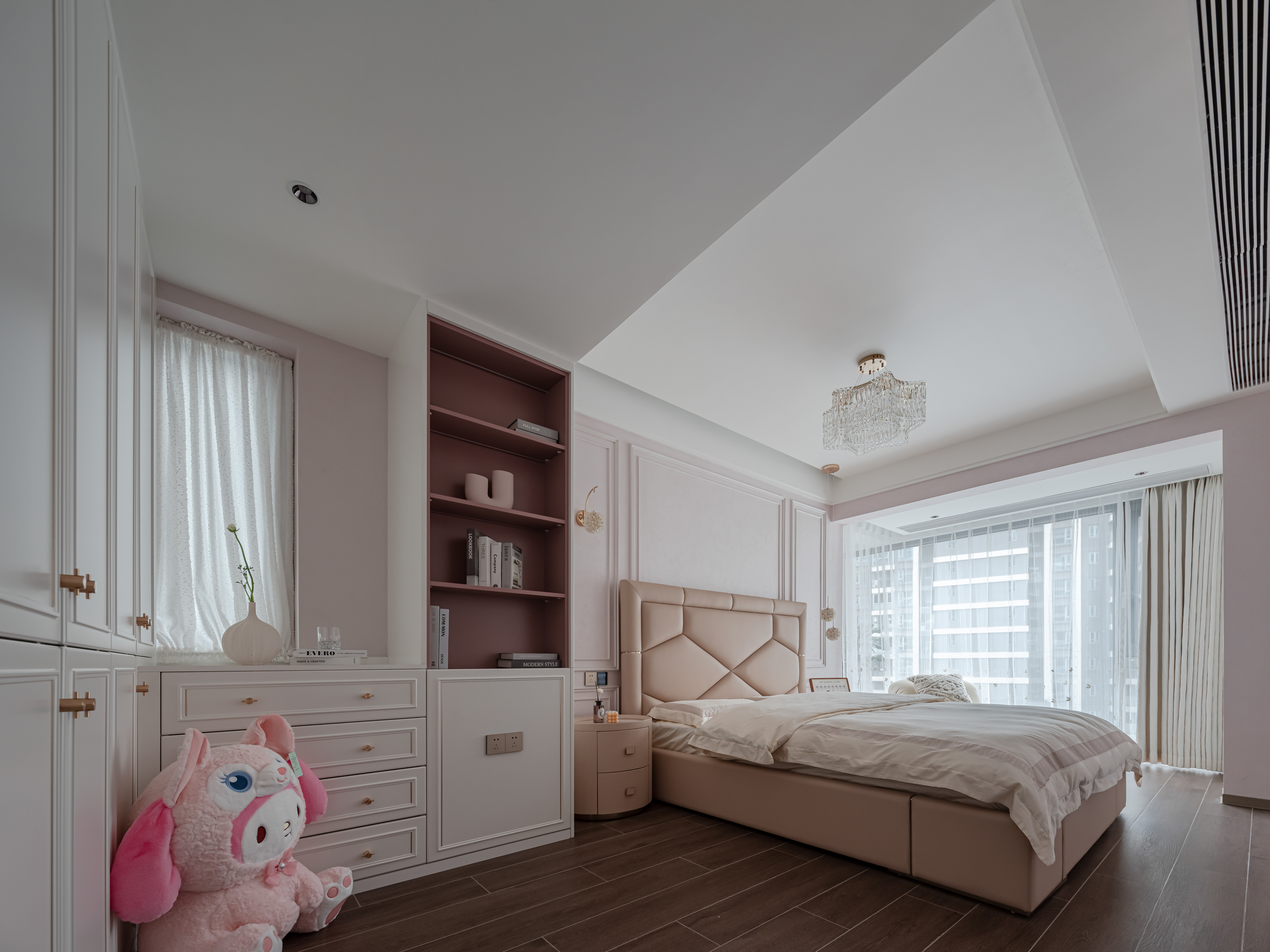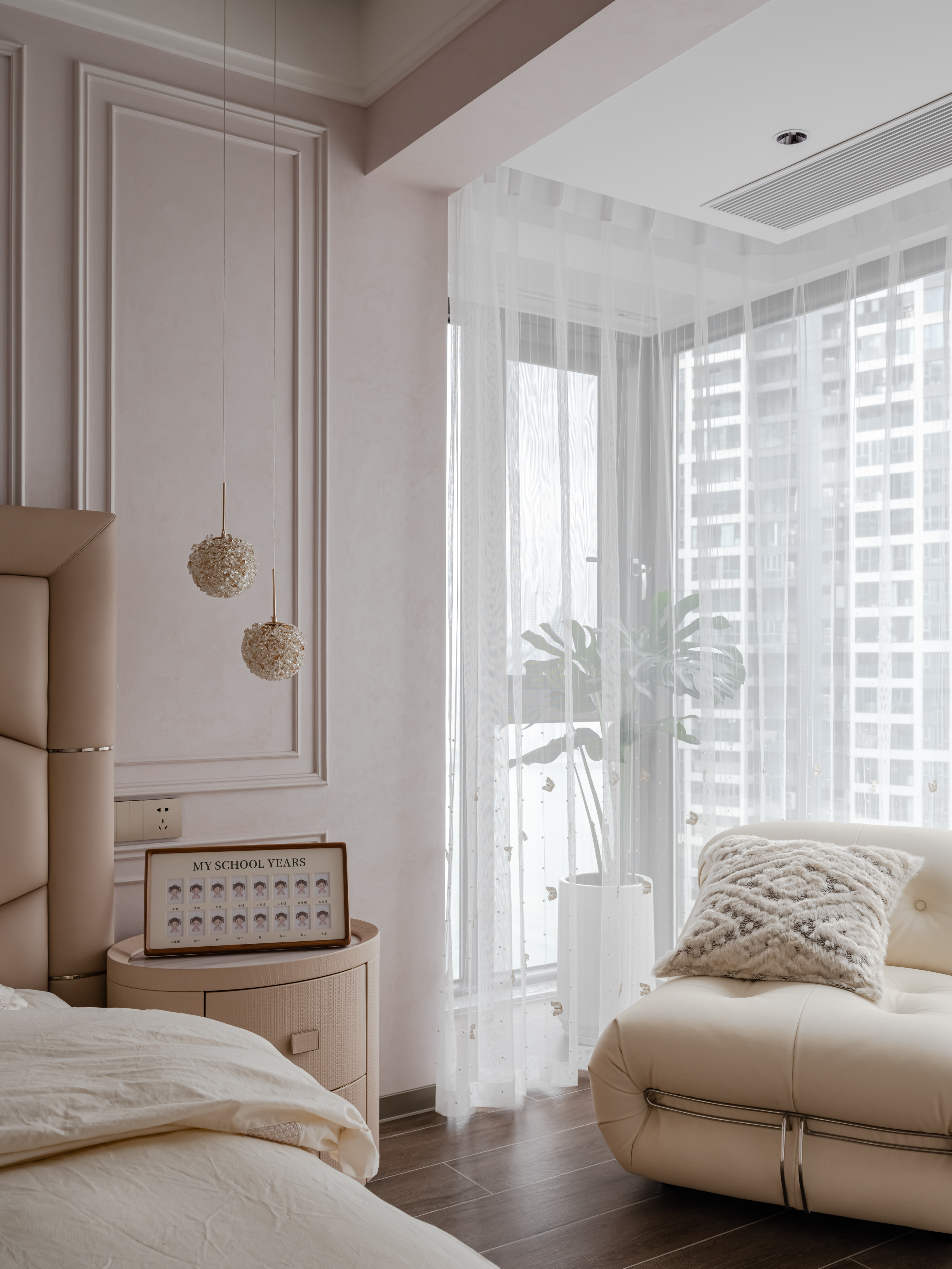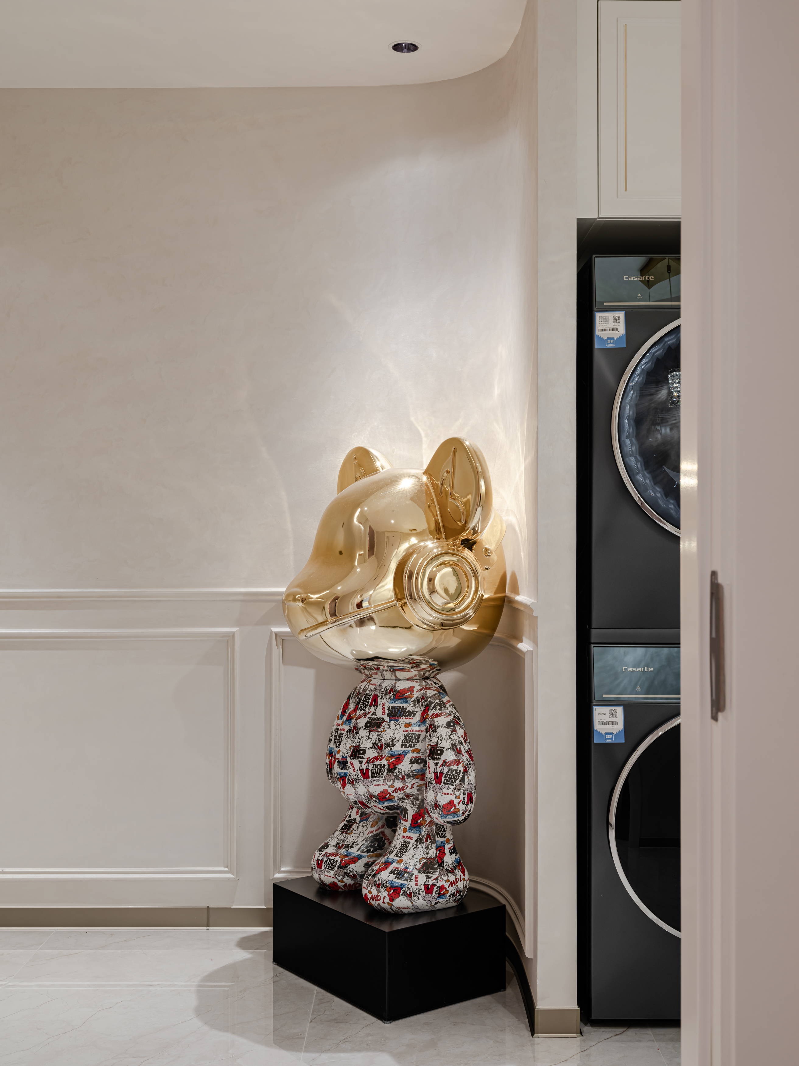 屋主人是一对经商的夫妇,有一个可爱的女儿。从刚一开始,两位就提出居家设计希望能尽显空间宽敞与大气,同时能具备一些仪式感,满足经常要在家里款待客人的需求。设计师在了解此愿景后,结合对房屋以及环境条件的详细研究,决定将空间打造成为一个「明亮轻奢」中尽显温柔的华丽之家。