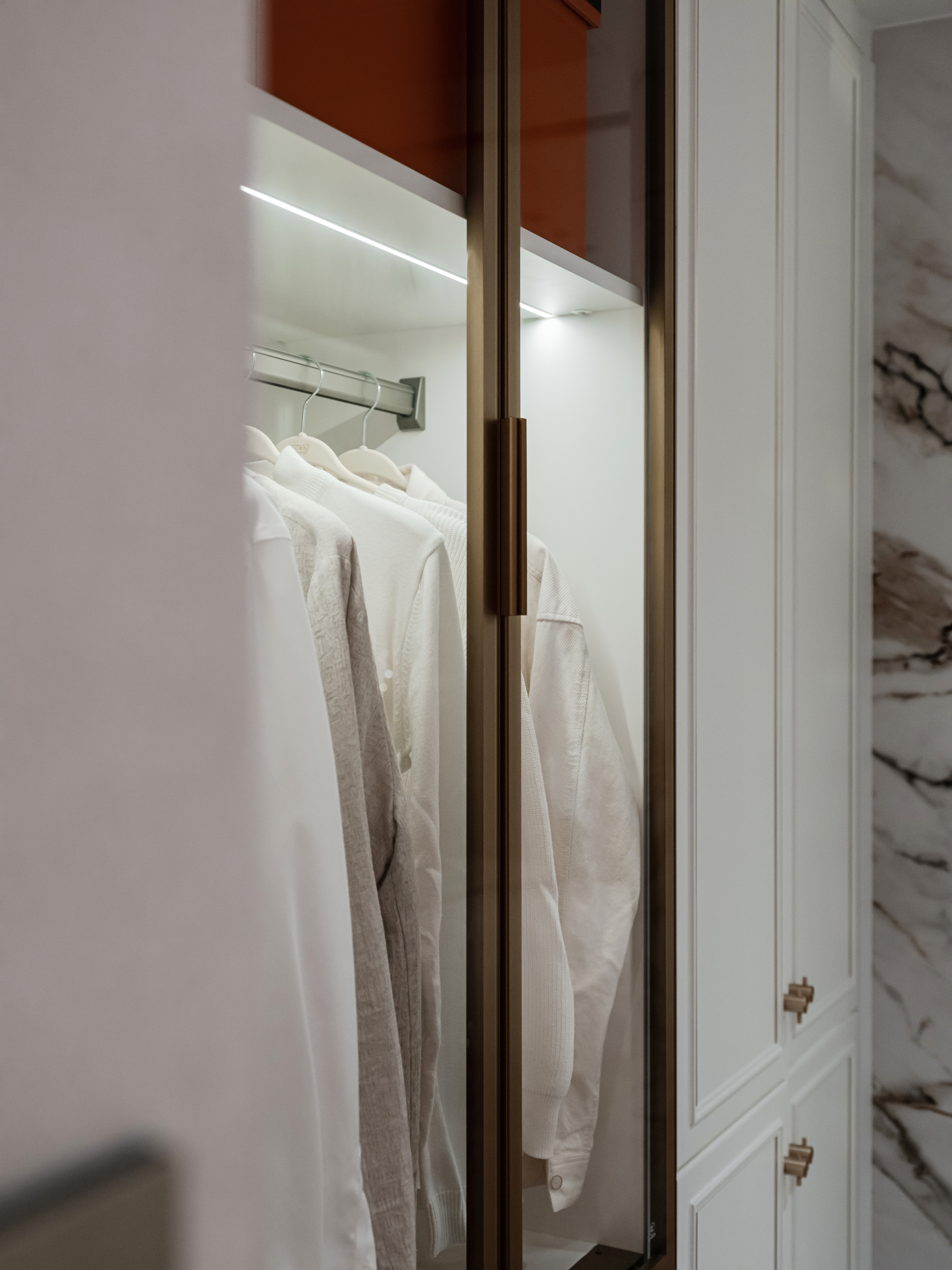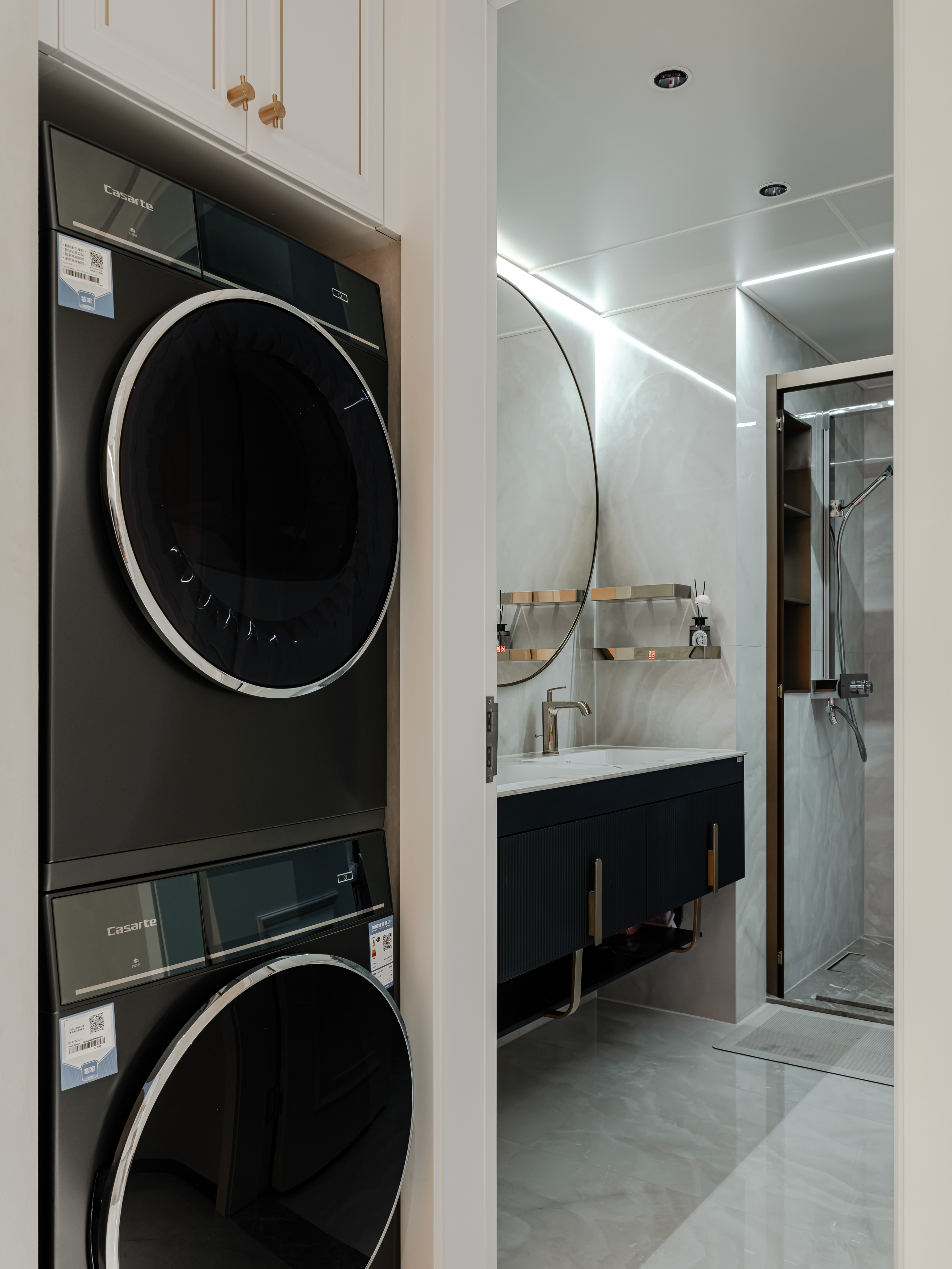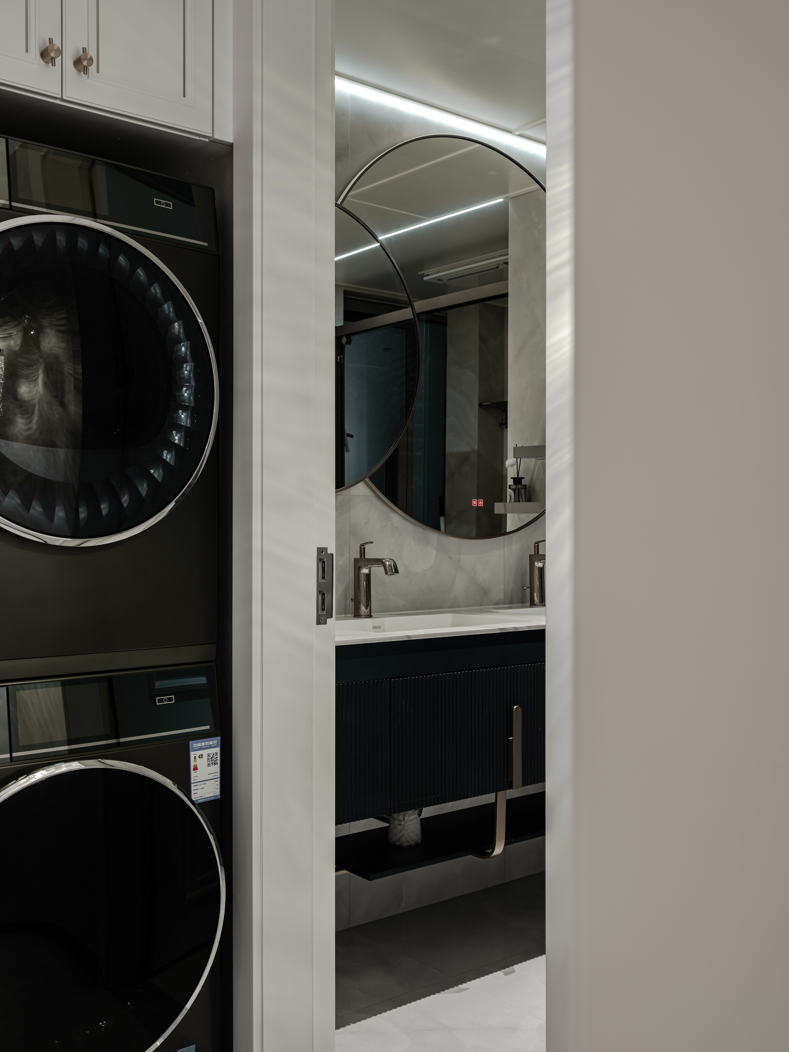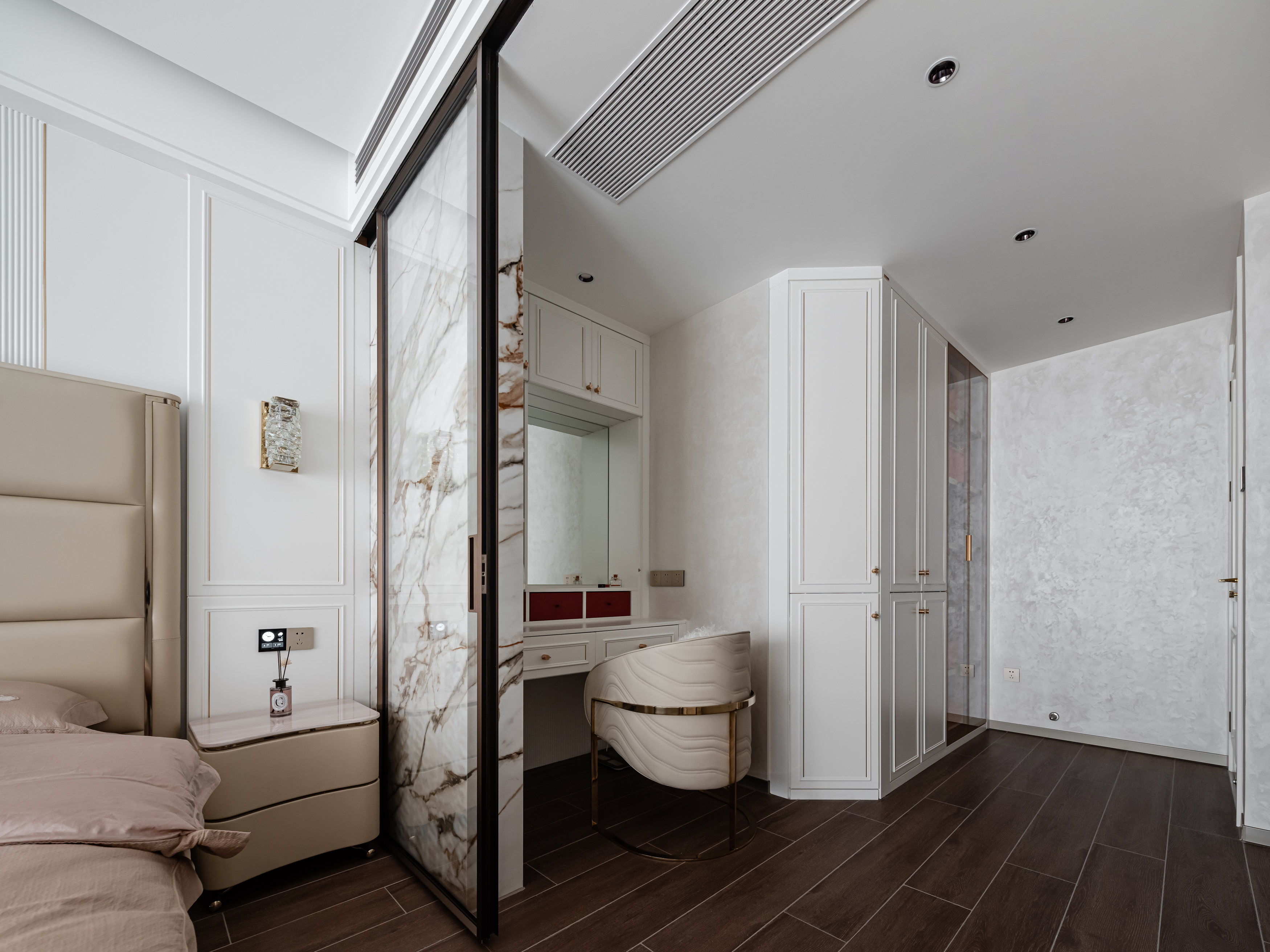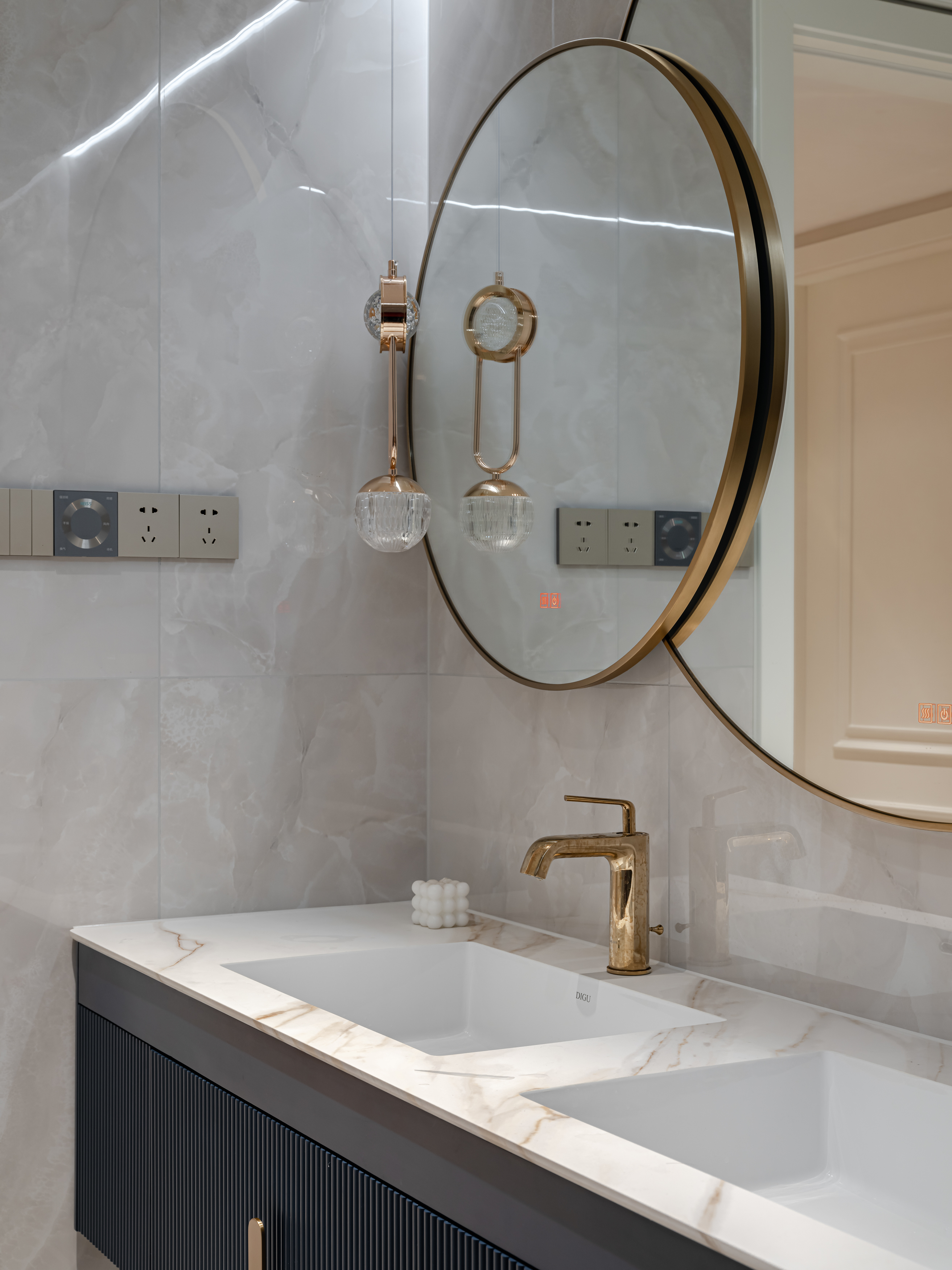 大理石的清冷高贵,需要温润质感的木饰面来中和,让空间尽显奢华的同时,有丝「拙」的意味
