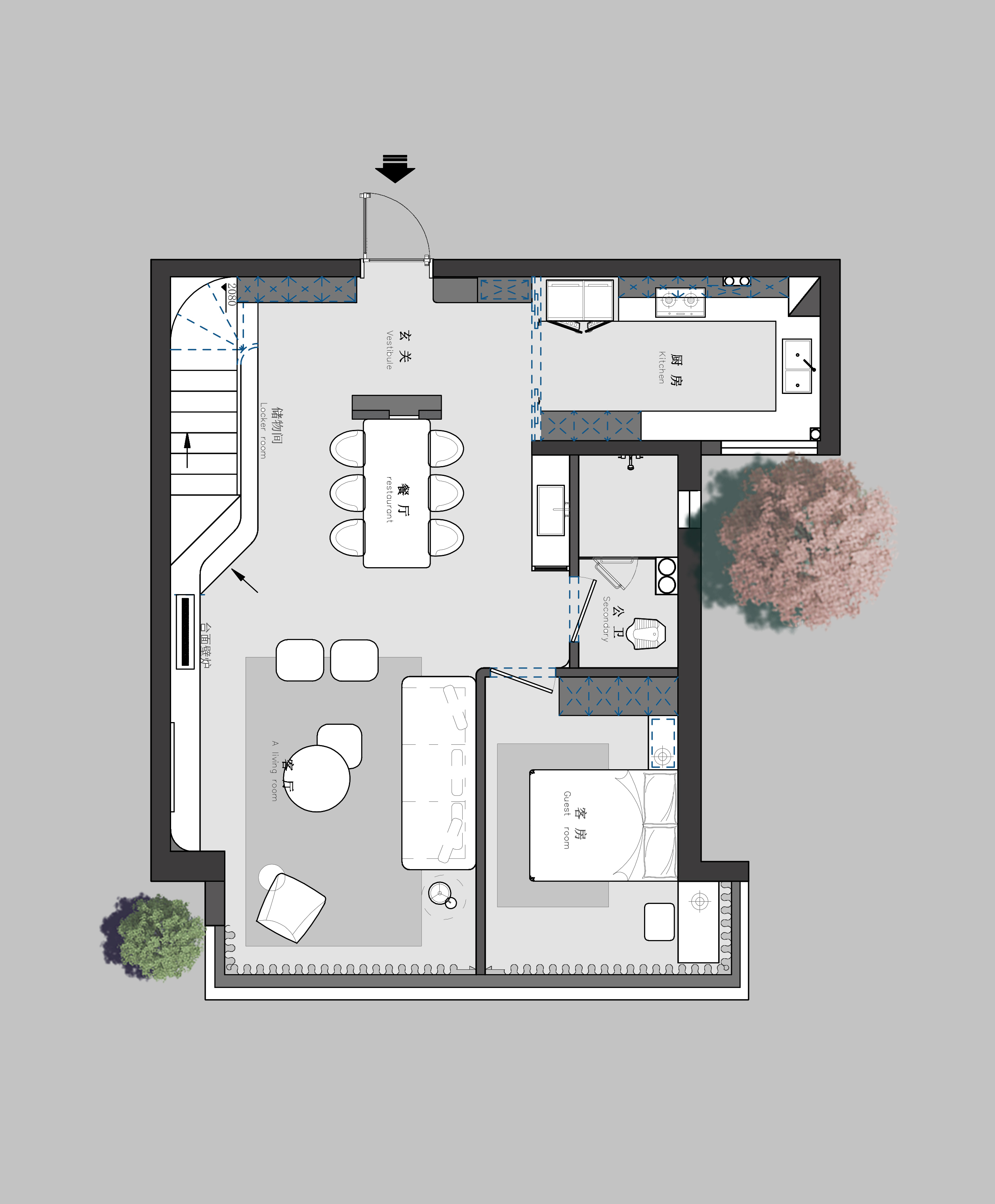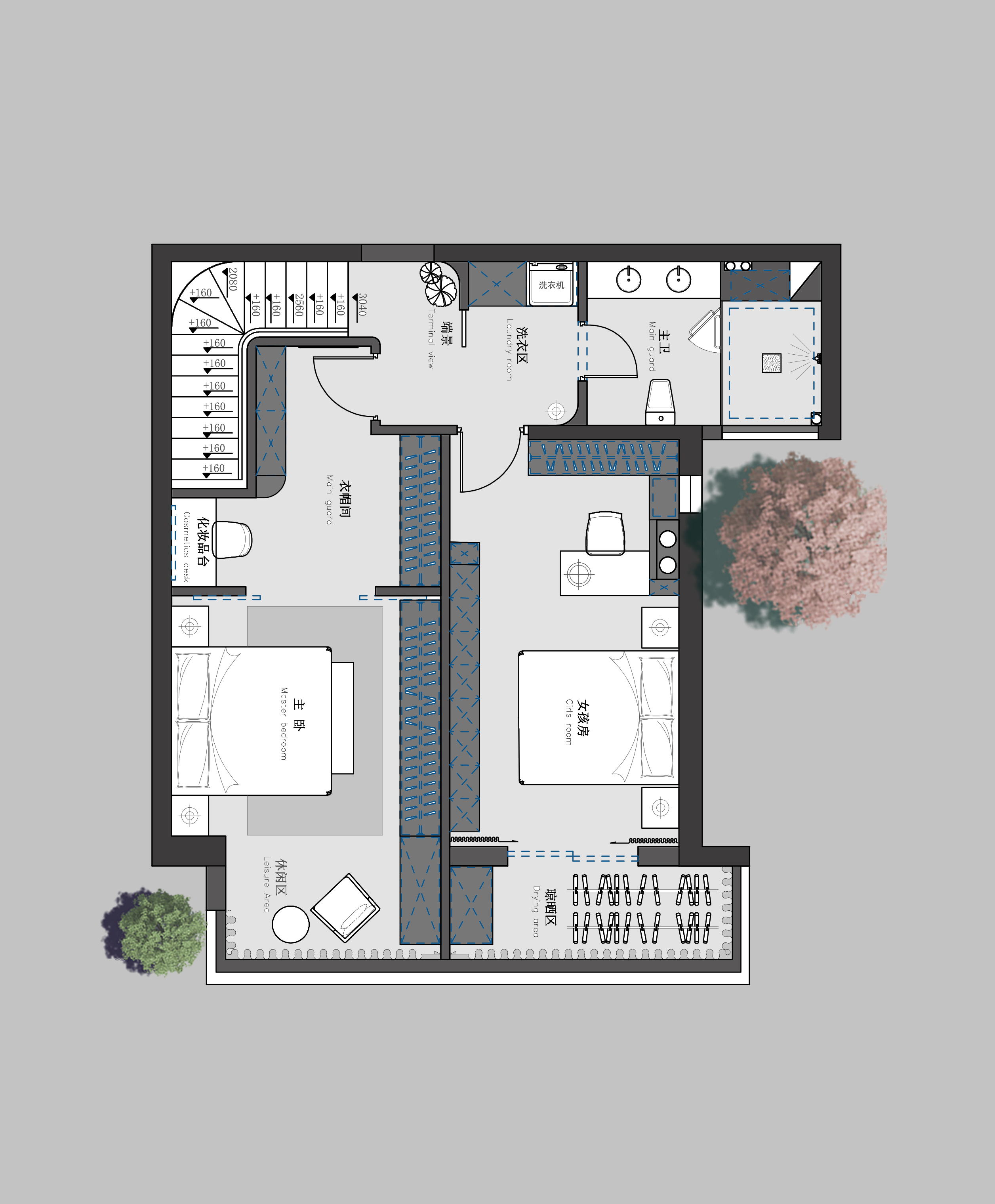 将动区和静区合理分开,将休憩区置于较为安静的二楼,让空间宜动宜,互不干扰