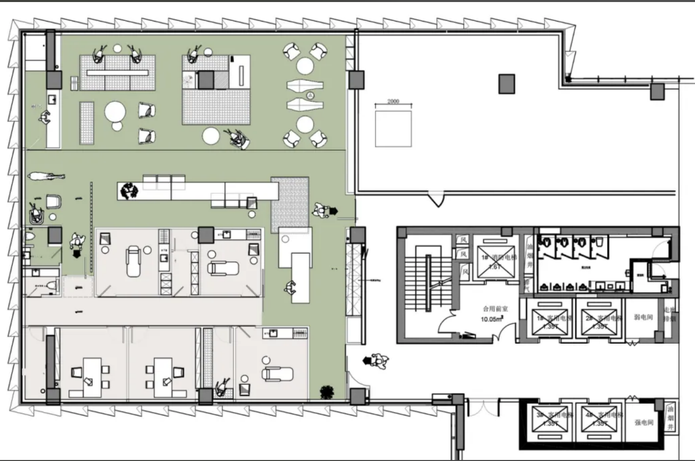 设计在整体动线的贯穿中藏了很多细节,机电空调都是侧收口的施工细节让整体空间的高级质感凸显;引导客户的使用节奏,与咨询和接待空间不同,作为简餐区,设计师将满满的仪式感细节渗透其中,运动前后,补充能量,喝茶、简餐、休闲的时间拉长,吧台的手工砖是仪式感,也是迎合主题的色彩。