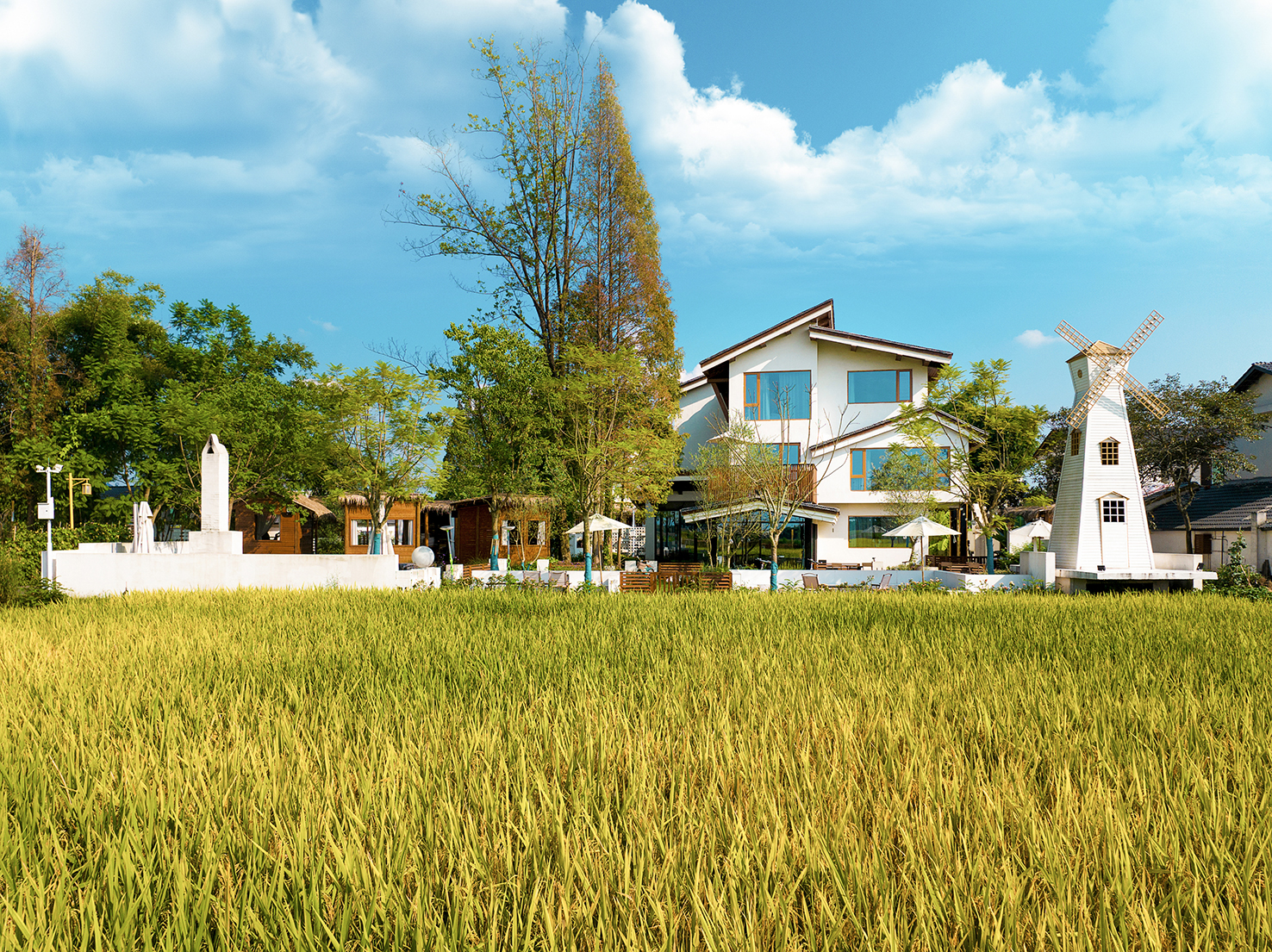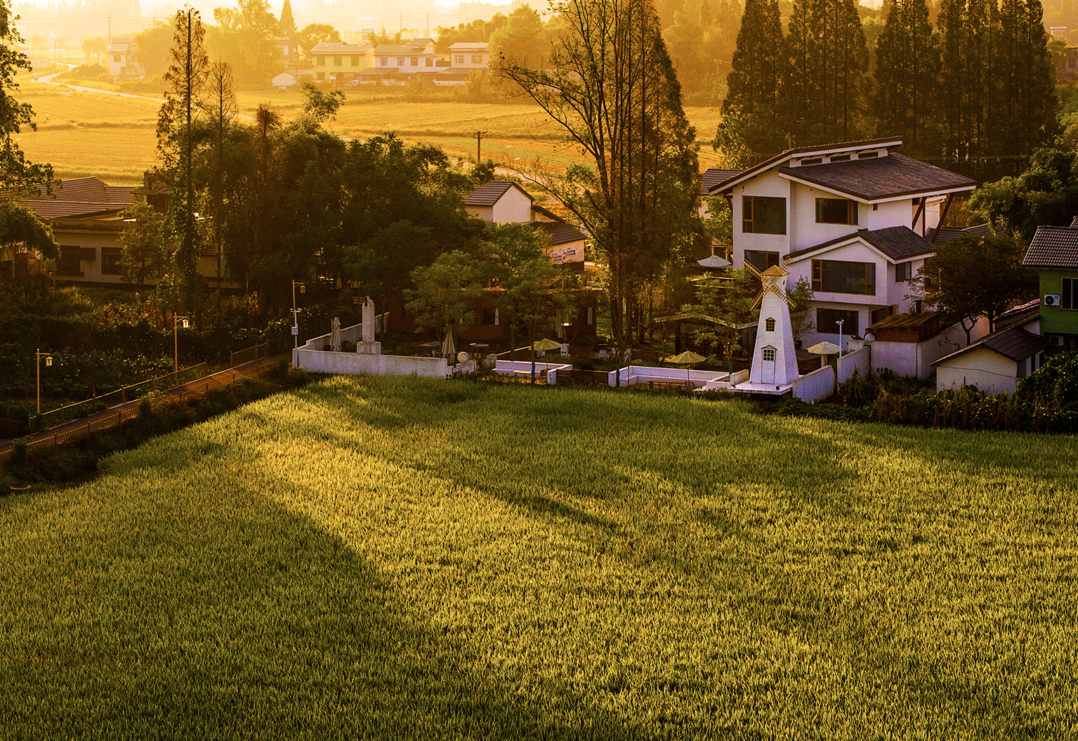 项目定位:项目坐落于四川青神,“天府粮仓”特色示范区的核心区域。建筑设计之初,环境考察和人文走访是尤为重要的阶段。在三面紧邻村民房屋的情况下,邻里关系的和谐共处和景观面的最优利用都是设计需要慎重考虑的节点。