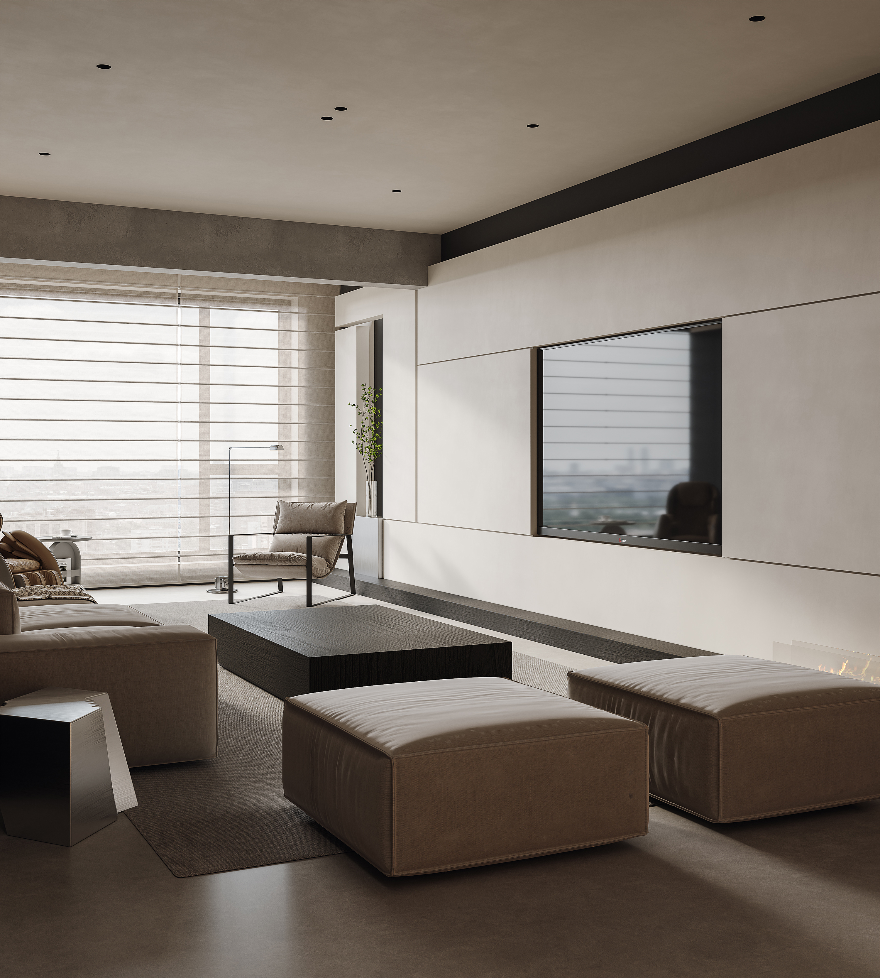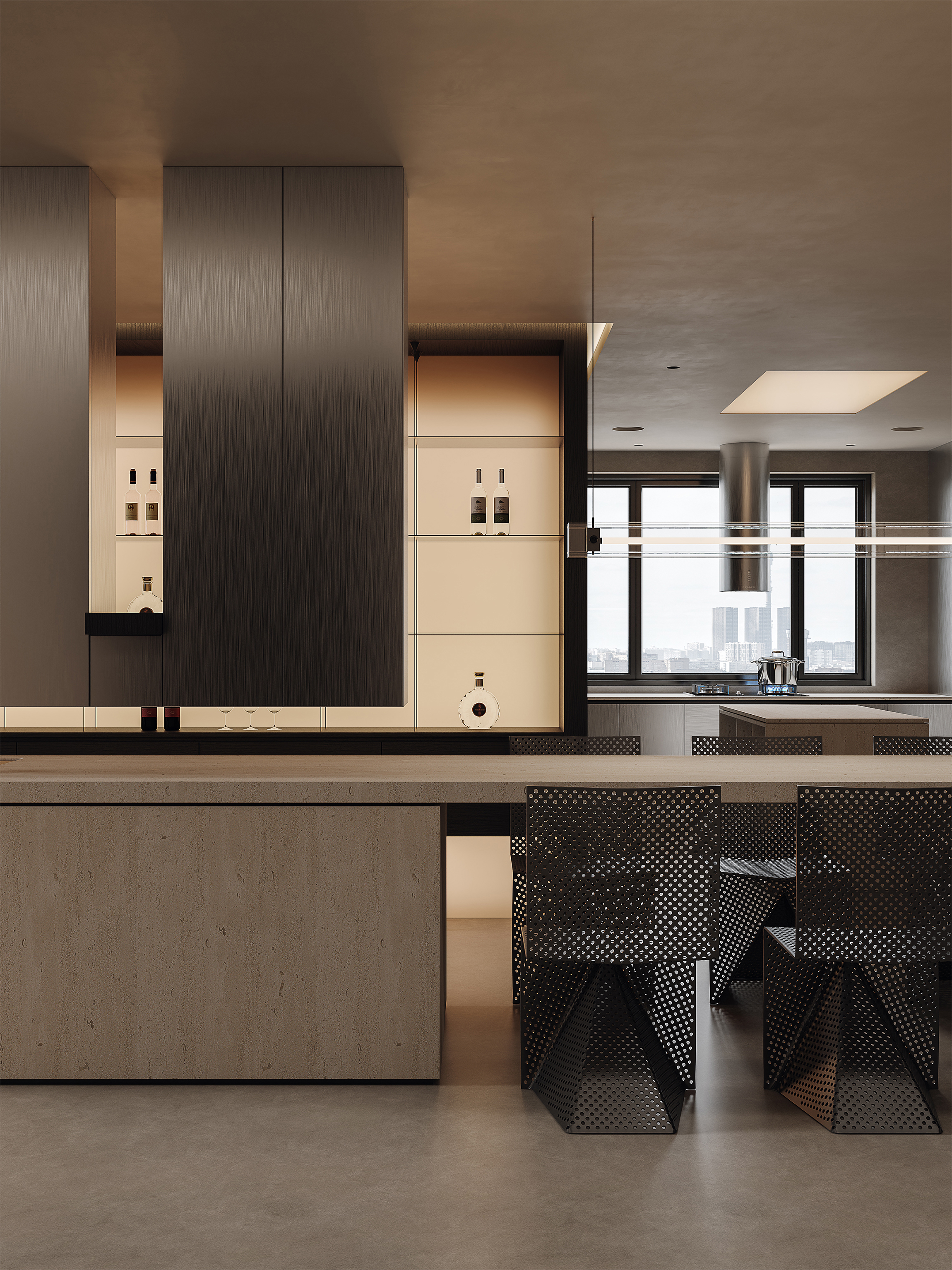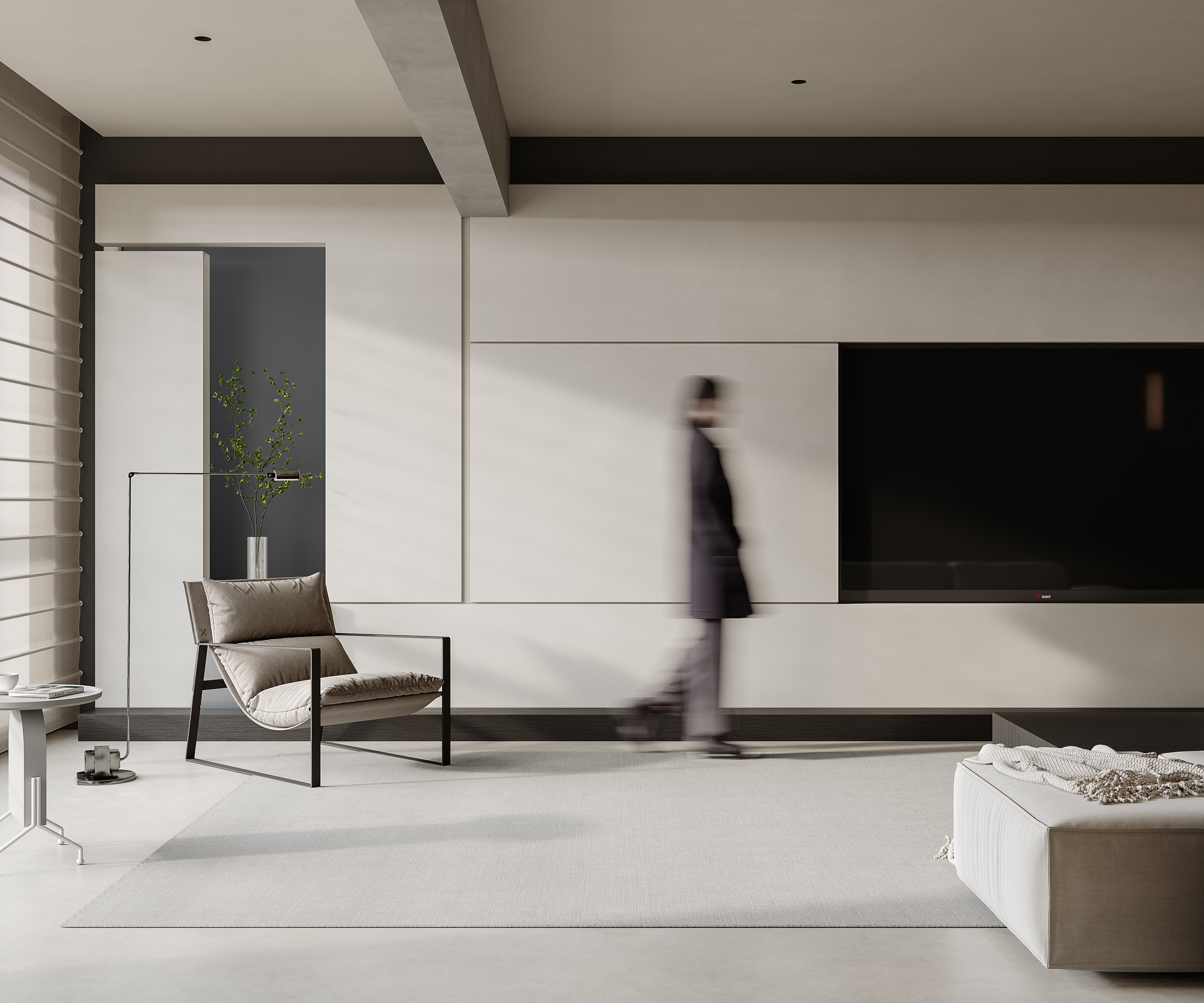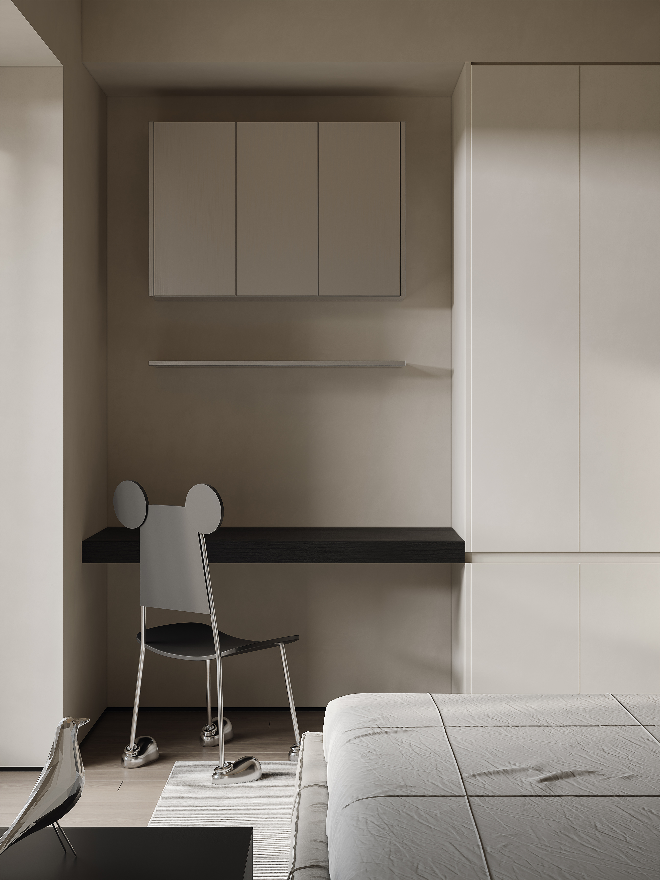 设计选材:本案中大量采用 艺术涂料及金属板等免漆产品 大大减轻工地的环境污染