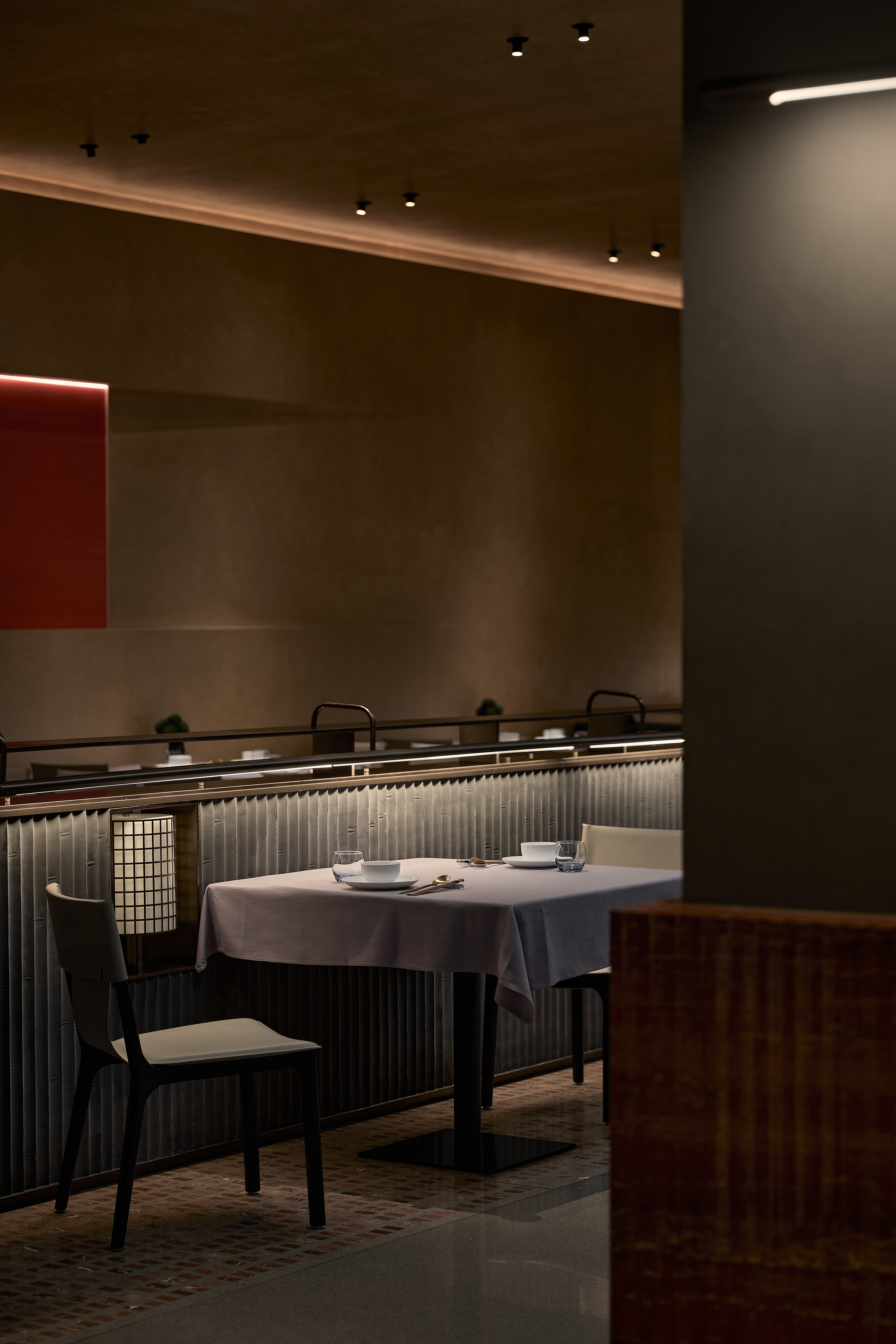 用户体验:本案实现了以东方美学为主线,结合传统元素用现代语言作为媒介通入餐厅空间中,让人不仅悄然期待起一场盛宴;来者在落座的每一刻,享用的每一道料理,都在感受时间的味道、人情的味道,风味之旅就此开始。