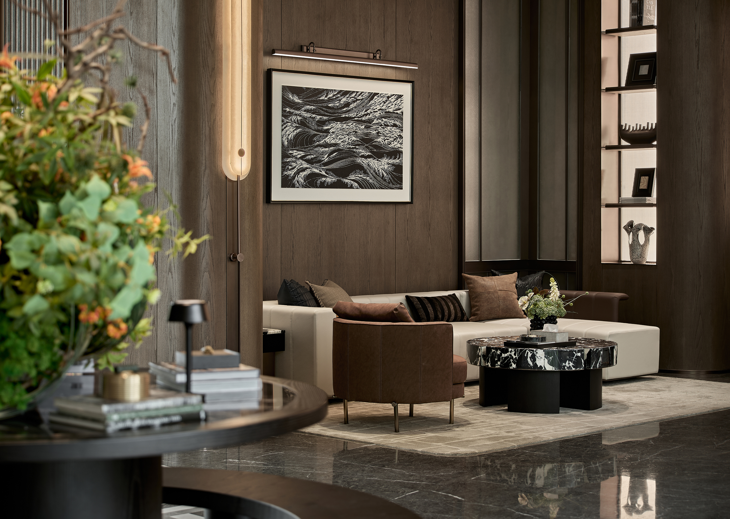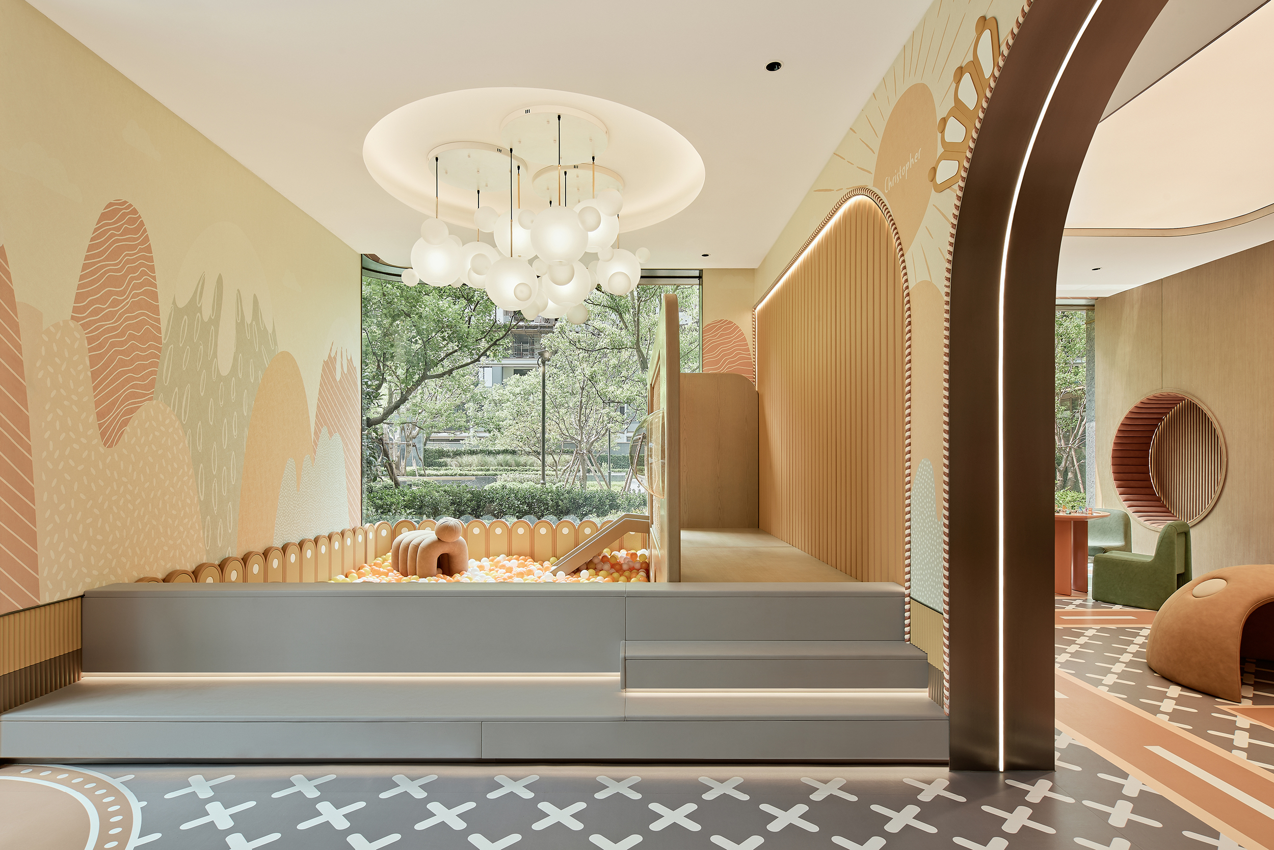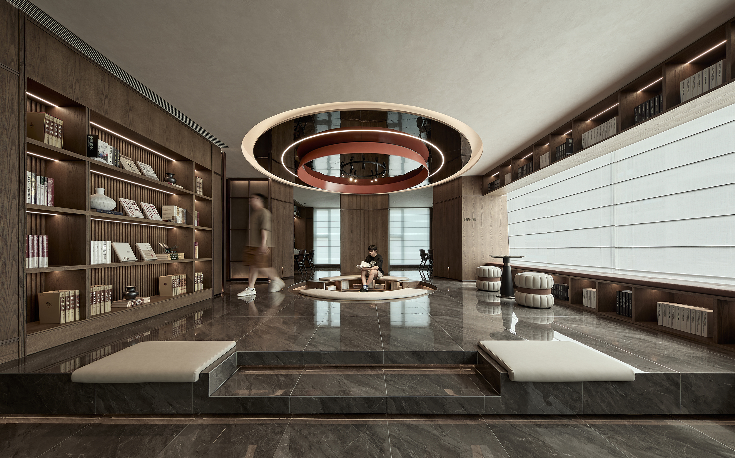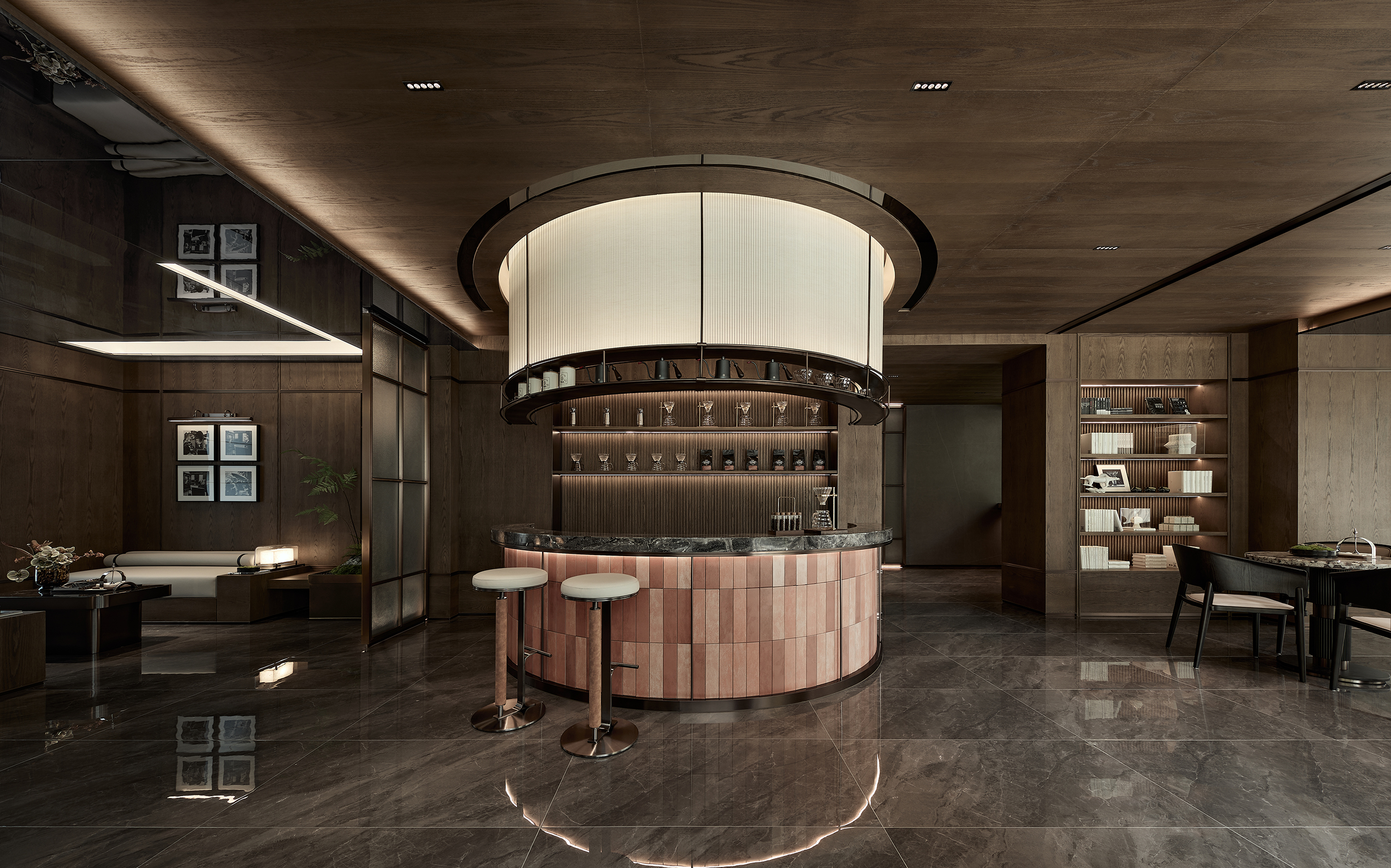 酒店式落客前场,不仅打造社区专属会客厅,更为住户提供精奢的休憩空间,让回家成为一种尊贵体验。启幕社区生活剧场,架空层作为邻里生活的“第三空间”,以社区文化和创新精神为依托,呈现出一个集咖啡吧、书吧、儿童娱乐等多重功能的泛会所式架空层,形成一处随时随地可享受、可走进、可参与、可互动的社交场景。