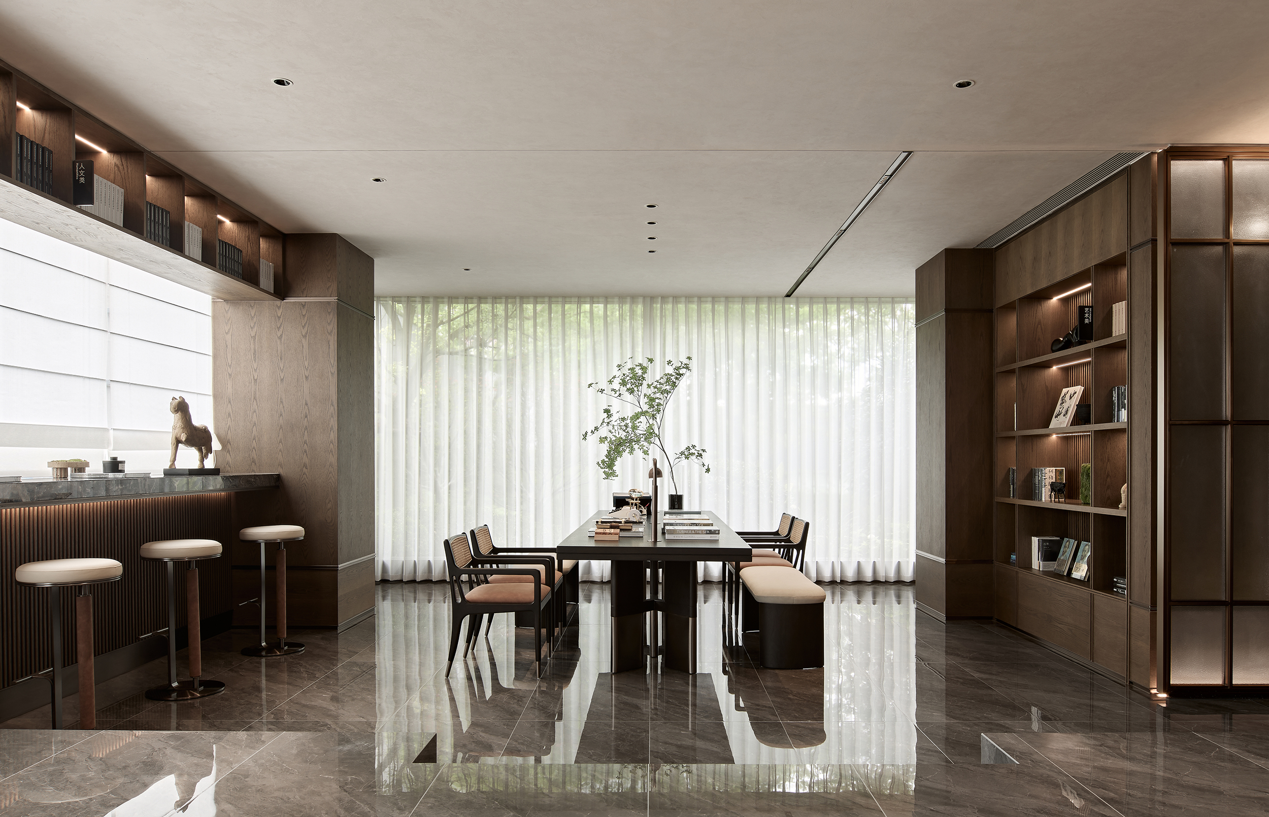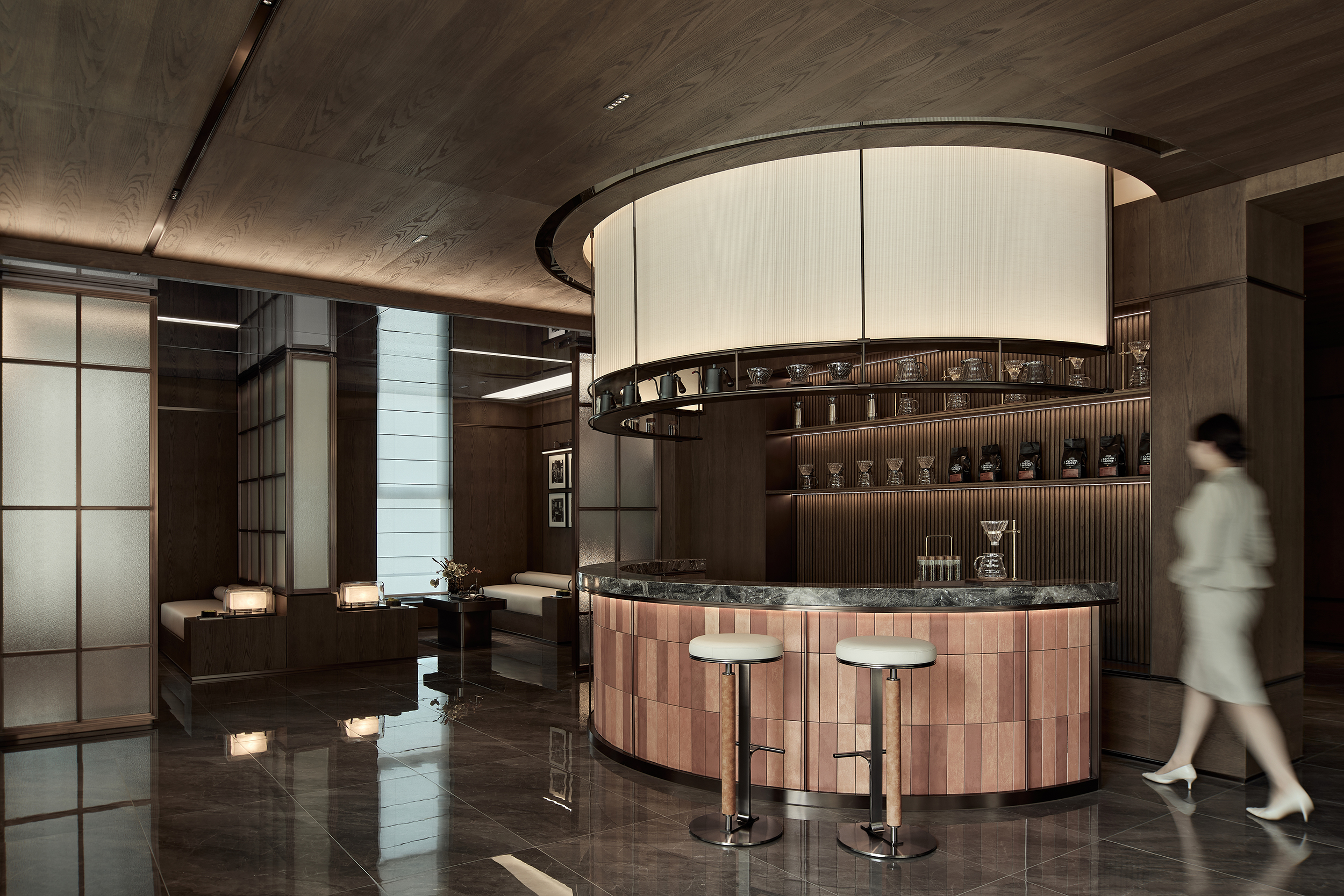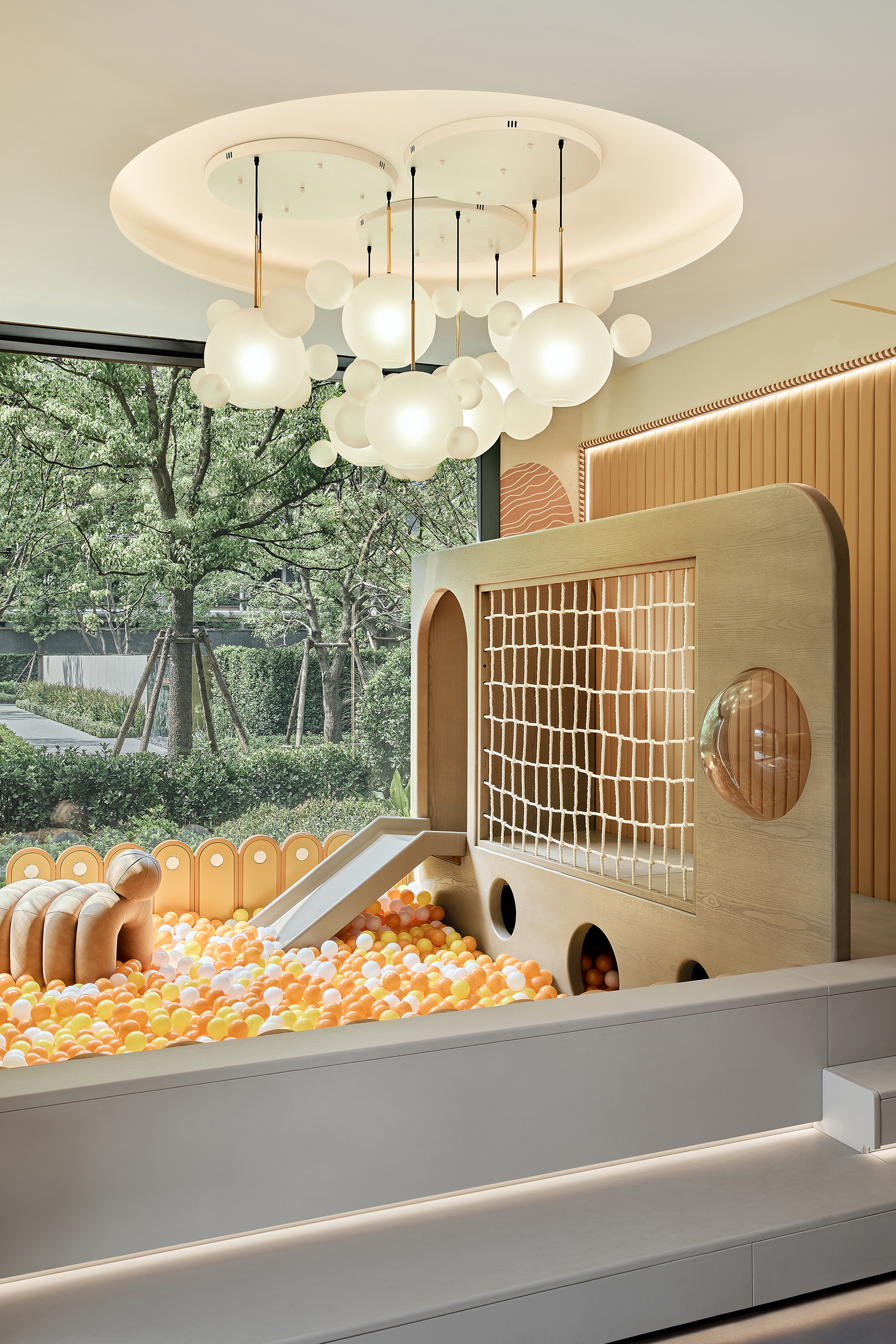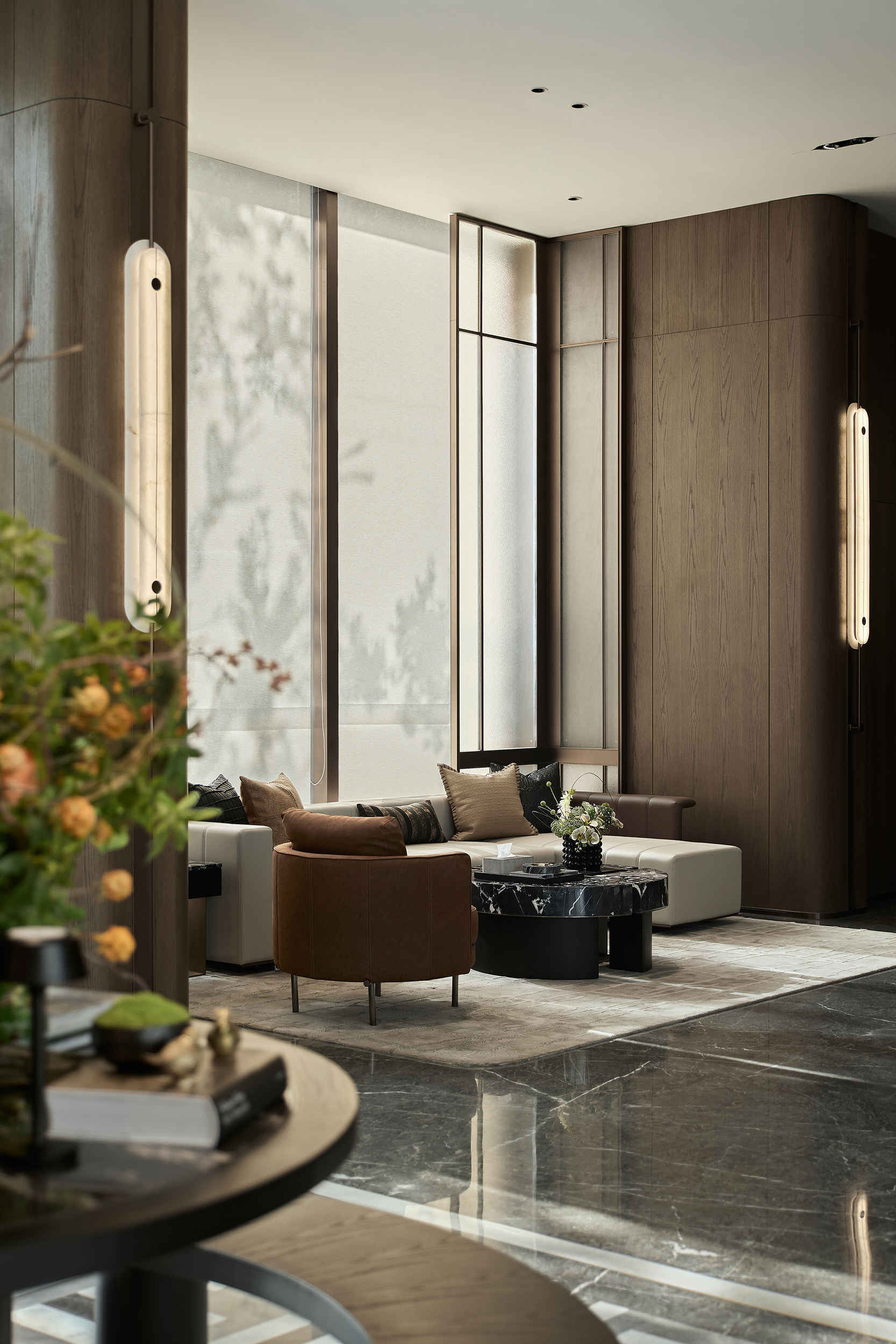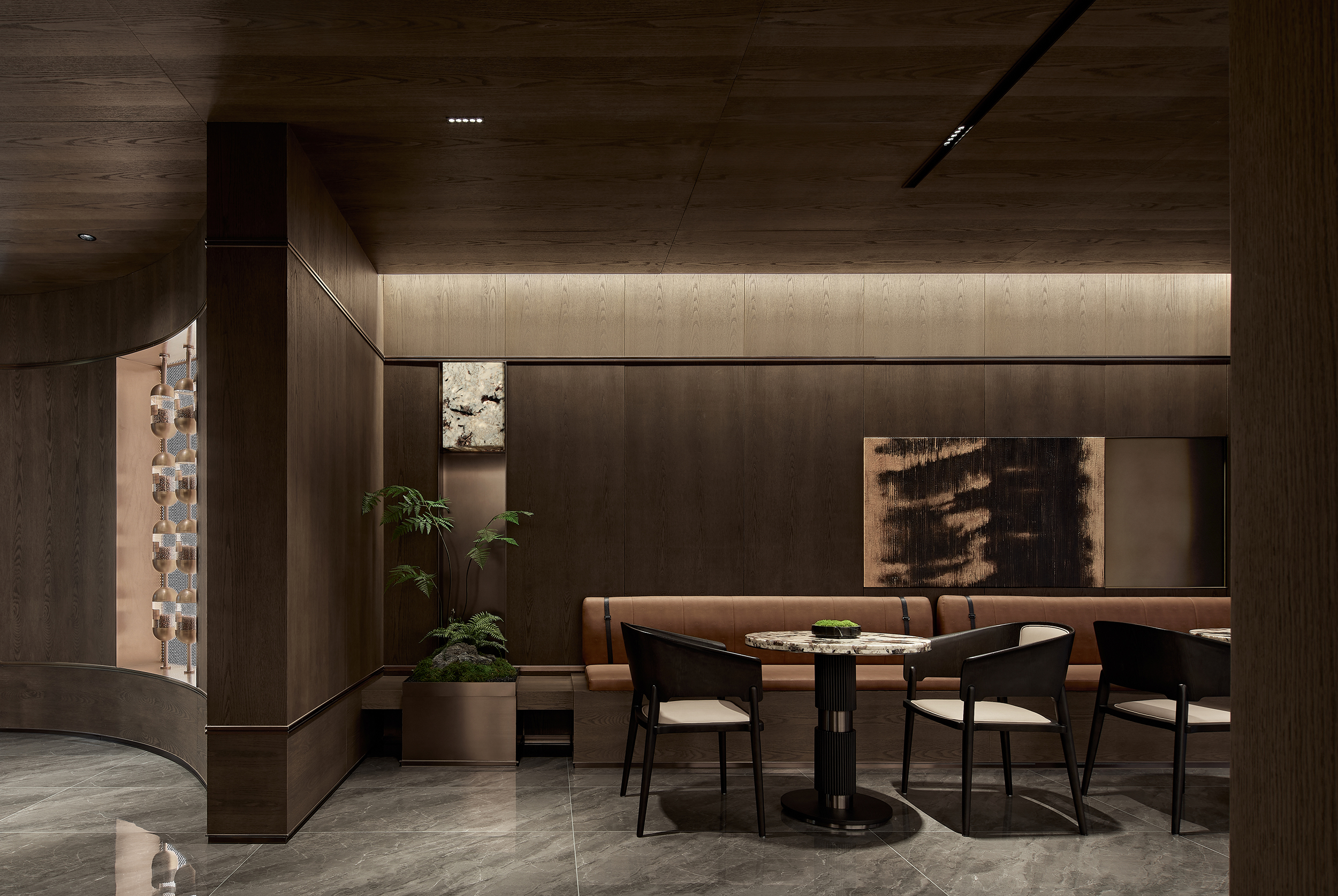 酒店式落客前场,不仅打造社区专属会客厅,更为住户提供精奢的休憩空间,让回家成为一种尊贵体验。启幕社区生活剧场,架空层作为邻里生活的“第三空间”,以社区文化和创新精神为依托,呈现出一个集咖啡吧、书吧、儿童娱乐等多重功能的泛会所式架空层,形成一处随时随地可享受、可走进、可参与、可互动的社交场景。