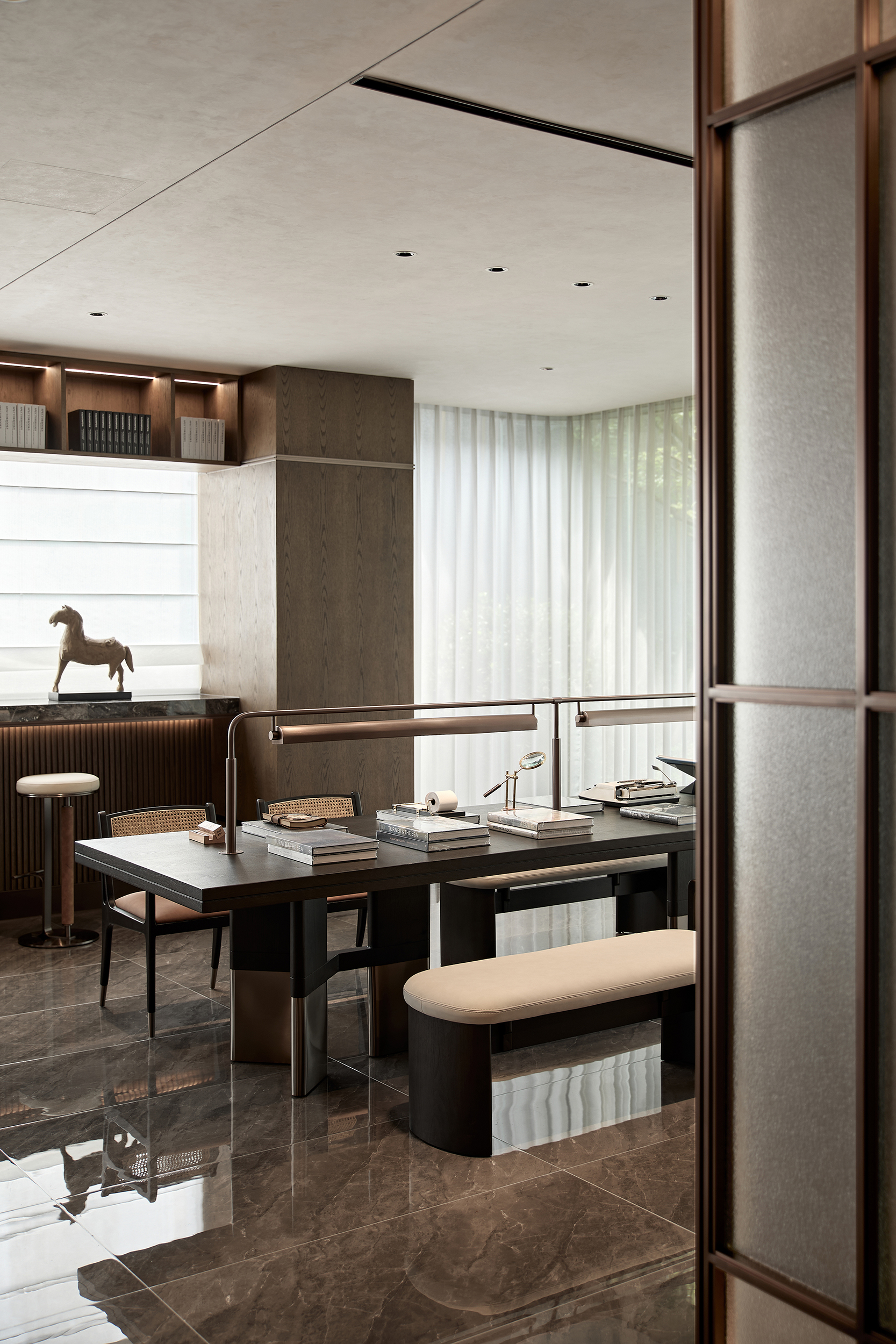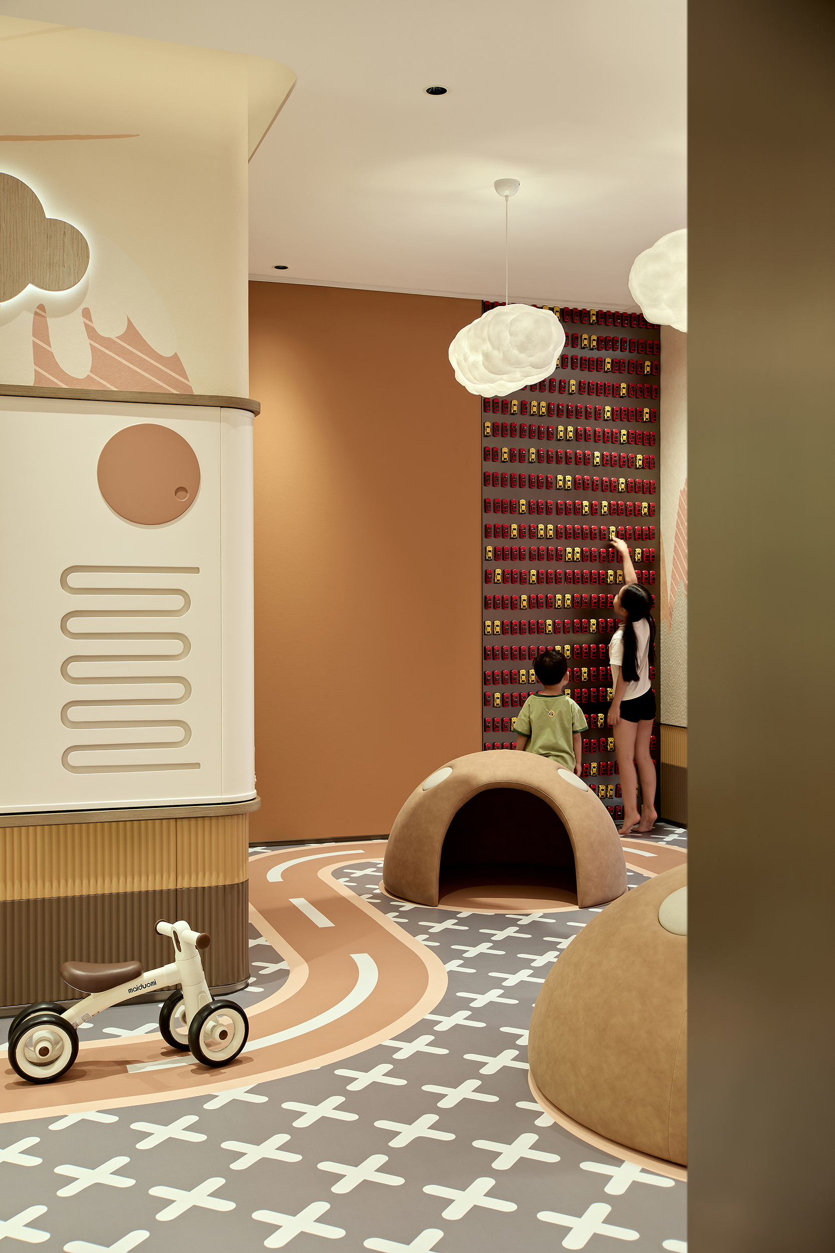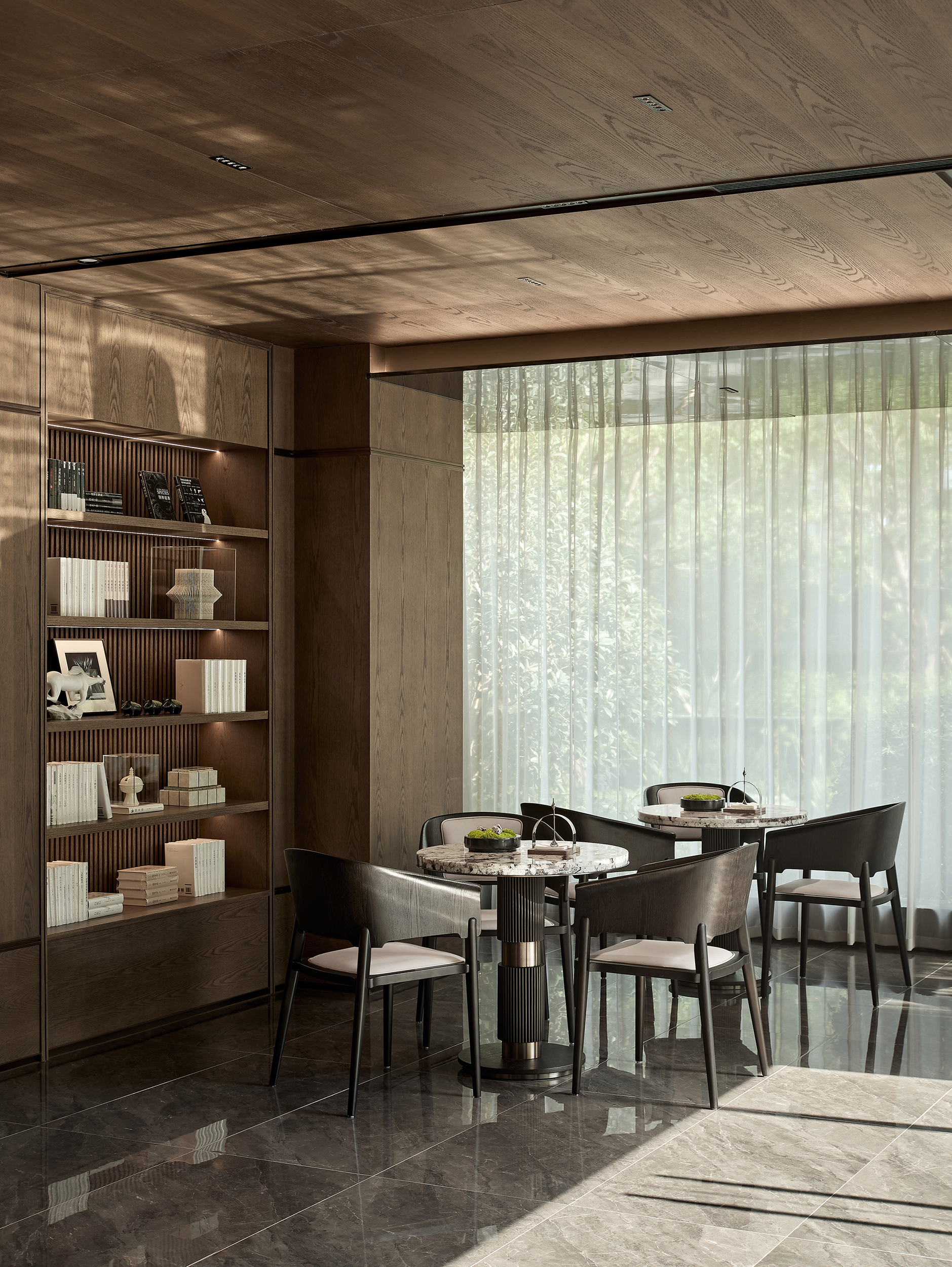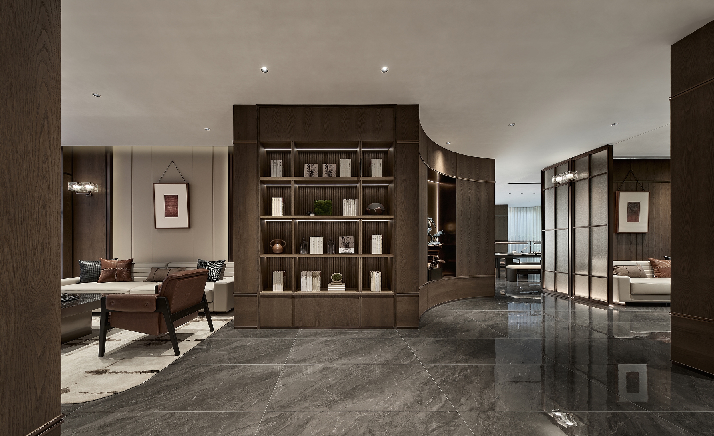 酒店式落客前场,不仅打造社区专属会客厅,更为住户提供精奢的休憩空间,让回家成为一种尊贵体验。启幕社区生活剧场,架空层作为邻里生活的“第三空间”,以社区文化和创新精神为依托,呈现出一个集咖啡吧、书吧、儿童娱乐等多重功能的泛会所式架空层,形成一处随时随地可享受、可走进、可参与、可互动的社交场景。