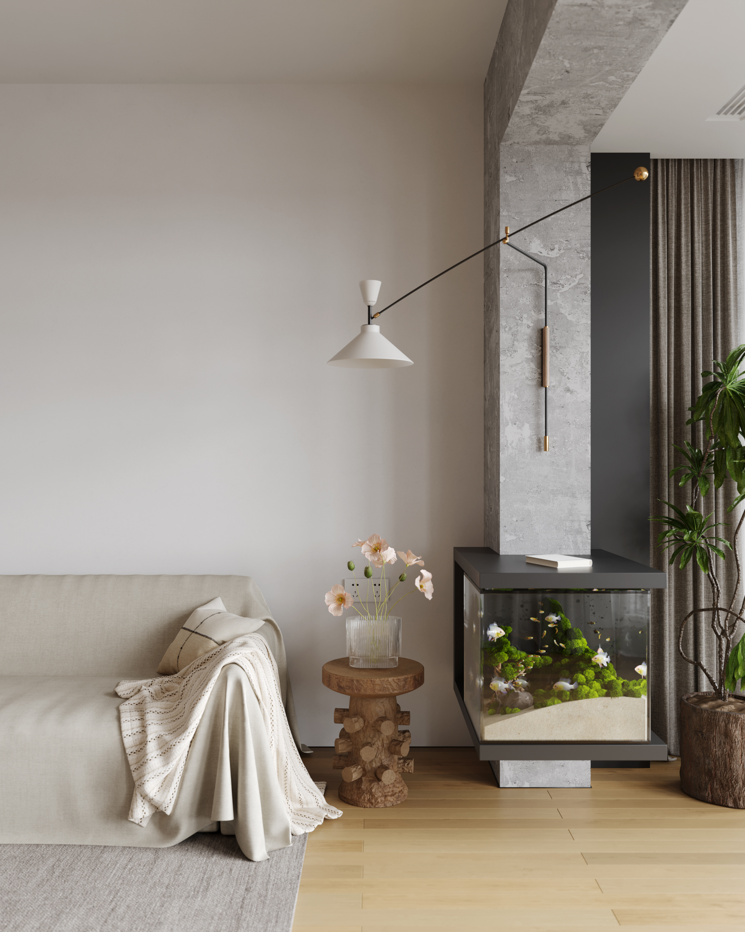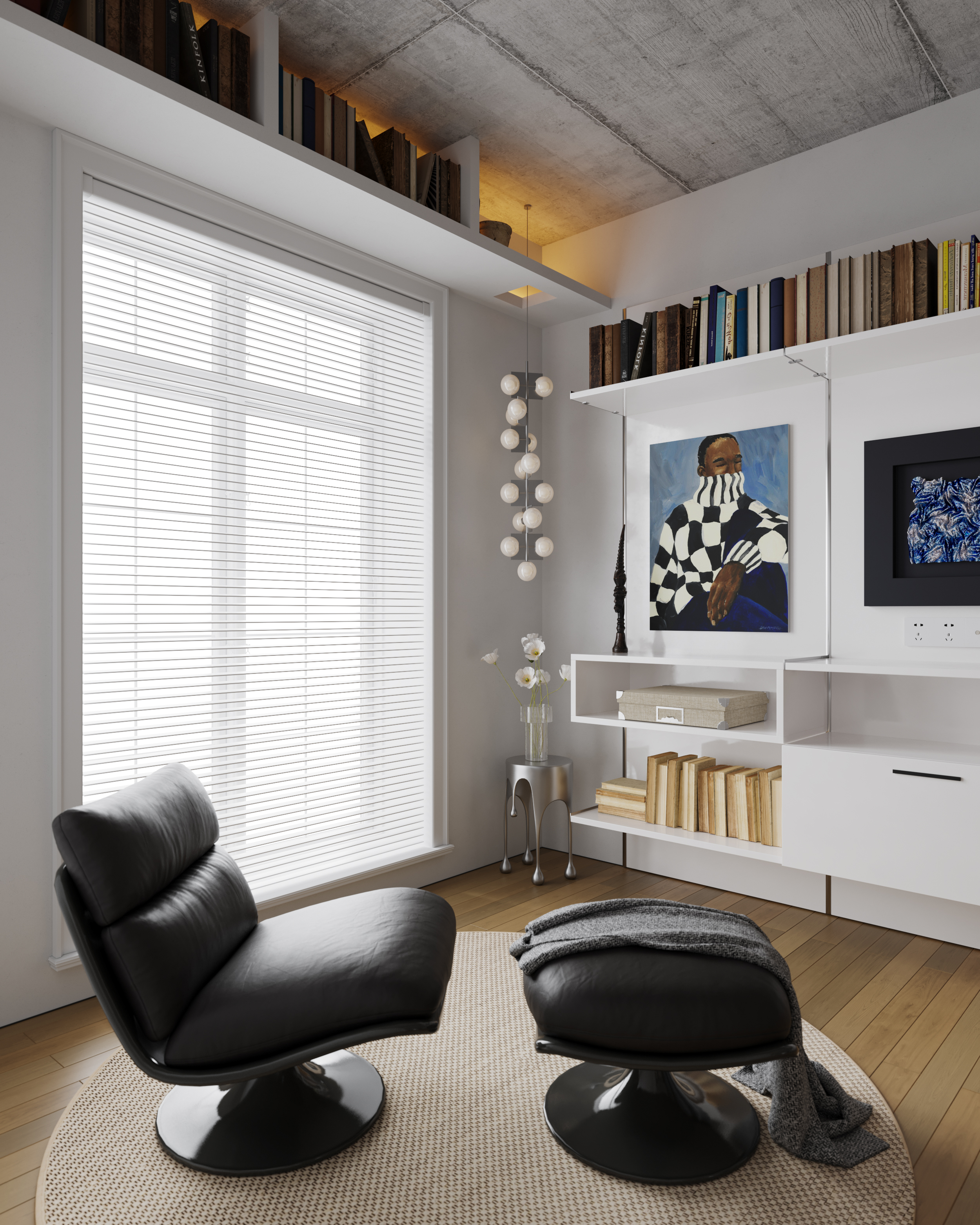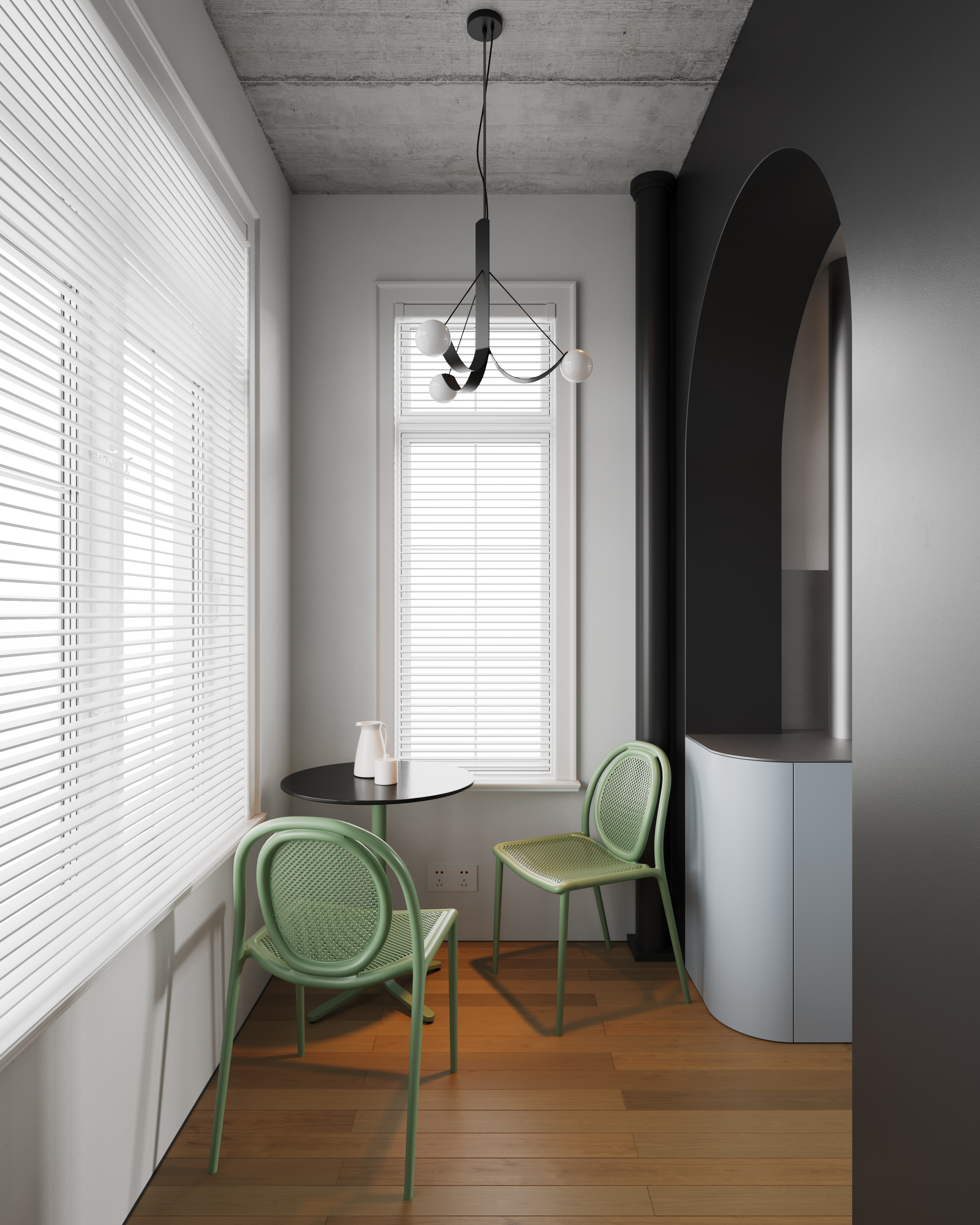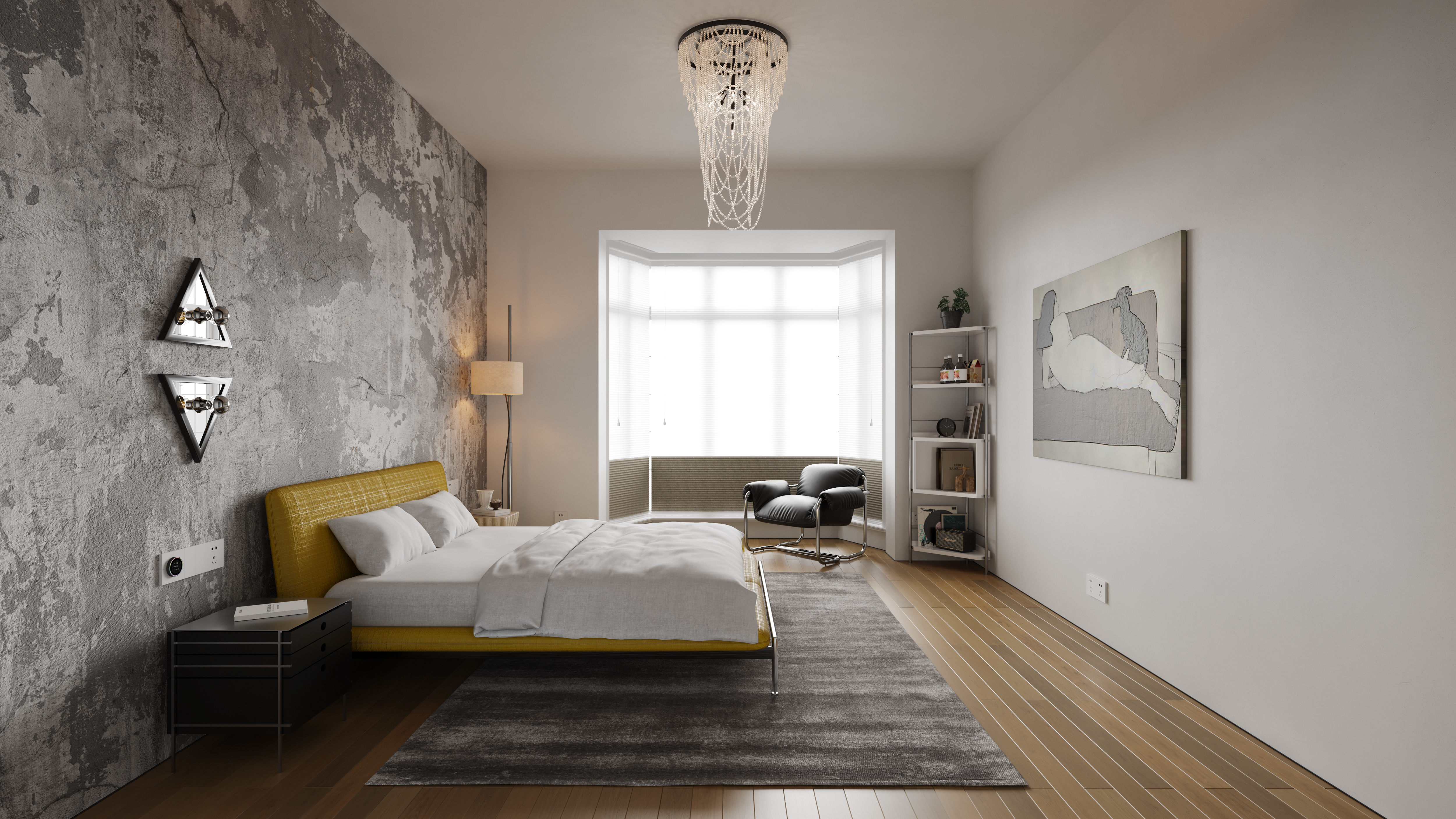设计选材:值得注意的是,立面和家具上的纹理细节也经过了精心地处理,与建筑的几何美学形成和谐呼应,塑造一种现代与怀旧相互交织的艺术情境。设计中的每一个元素都经过巧妙组合,以确保其与整体风格完美契合。