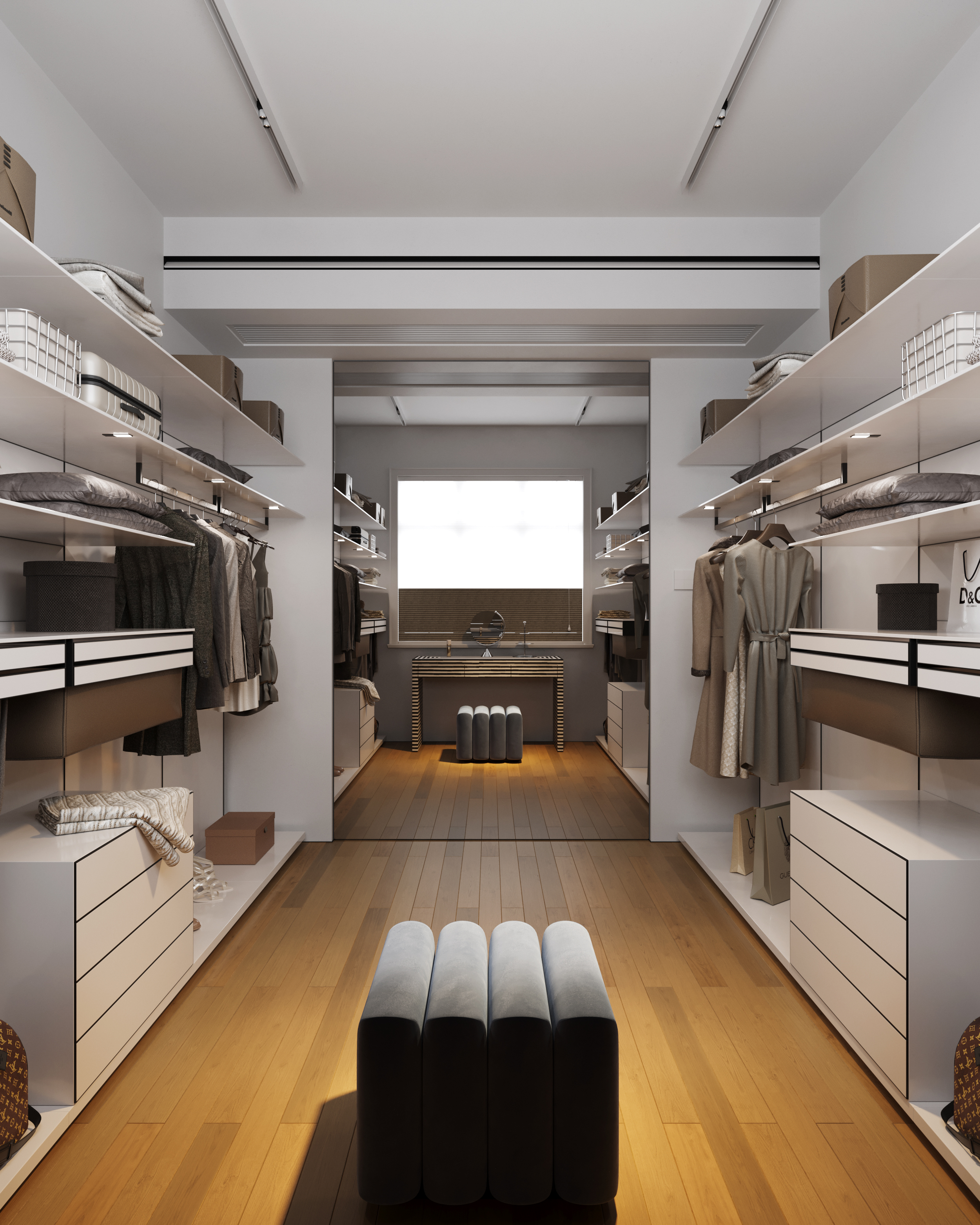 项目定位:接受一位时尚模特的委托打造长沙市中心富兴时代御城的一套高层式公寓住宅。