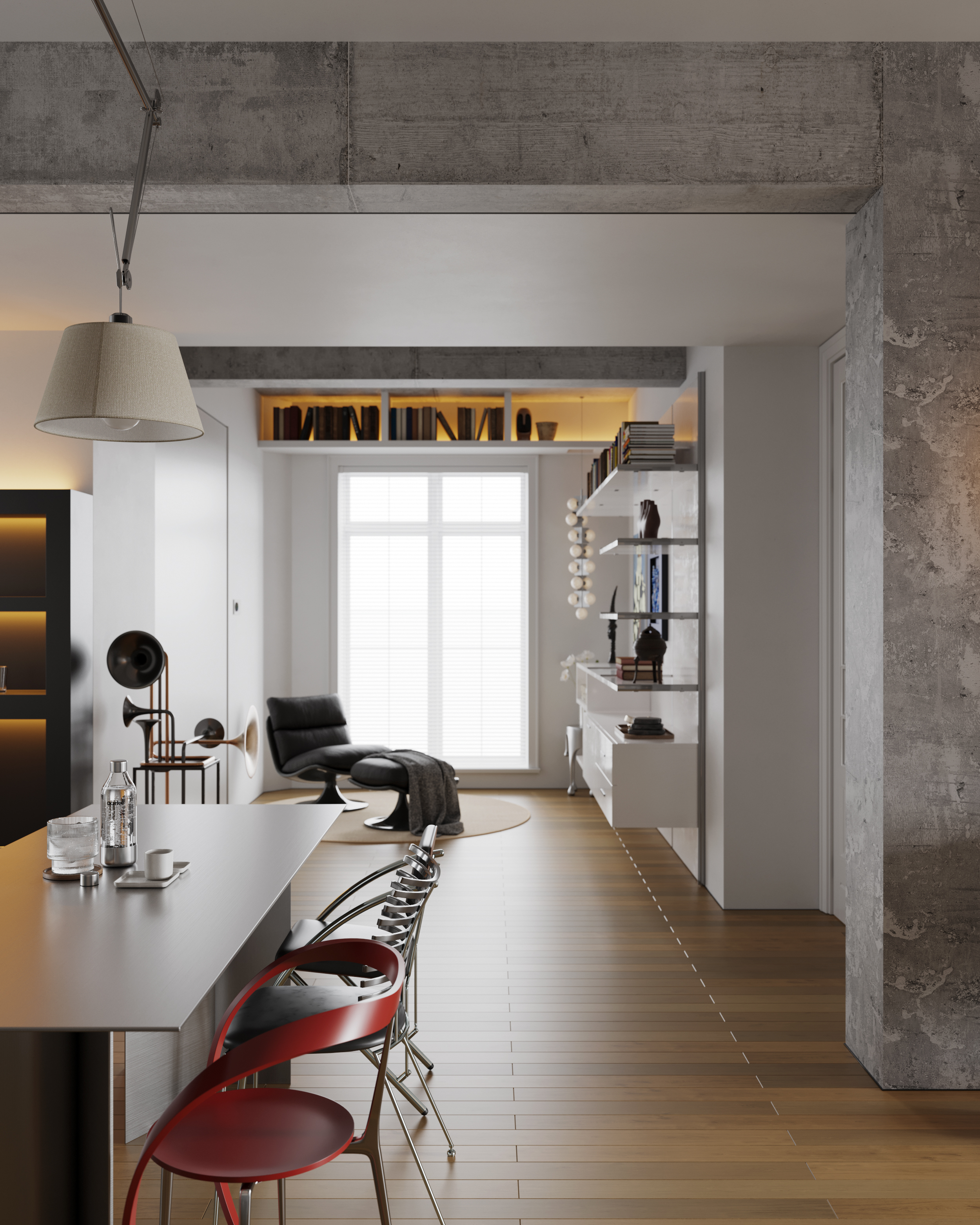 以前,设计师们用大理石和镀金装饰,现在被赋予了恢复公寓原有奥斯曼及后现代清水泥墙风格的全貌,唯一的要求是有足够的空白墙面空间来展示新主人华丽的艺术收藏。虽然大多数设计师会为了创造一个中性的背景而应用一种低调的美学,他们将时代和装饰艺术的细节与折衷的家具系列相结合,这些家具系列由不同时代的非传统作品组成,展示了各种风格。这最终证明了设计师对构图和策展的敏锐眼光,一切都和谐地结合在一起,形成了永恒的艺术和手工魅力。 -